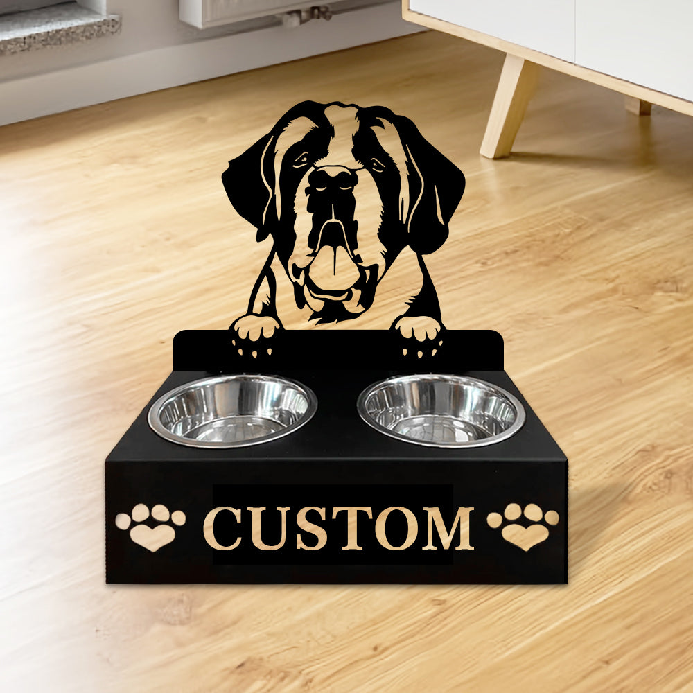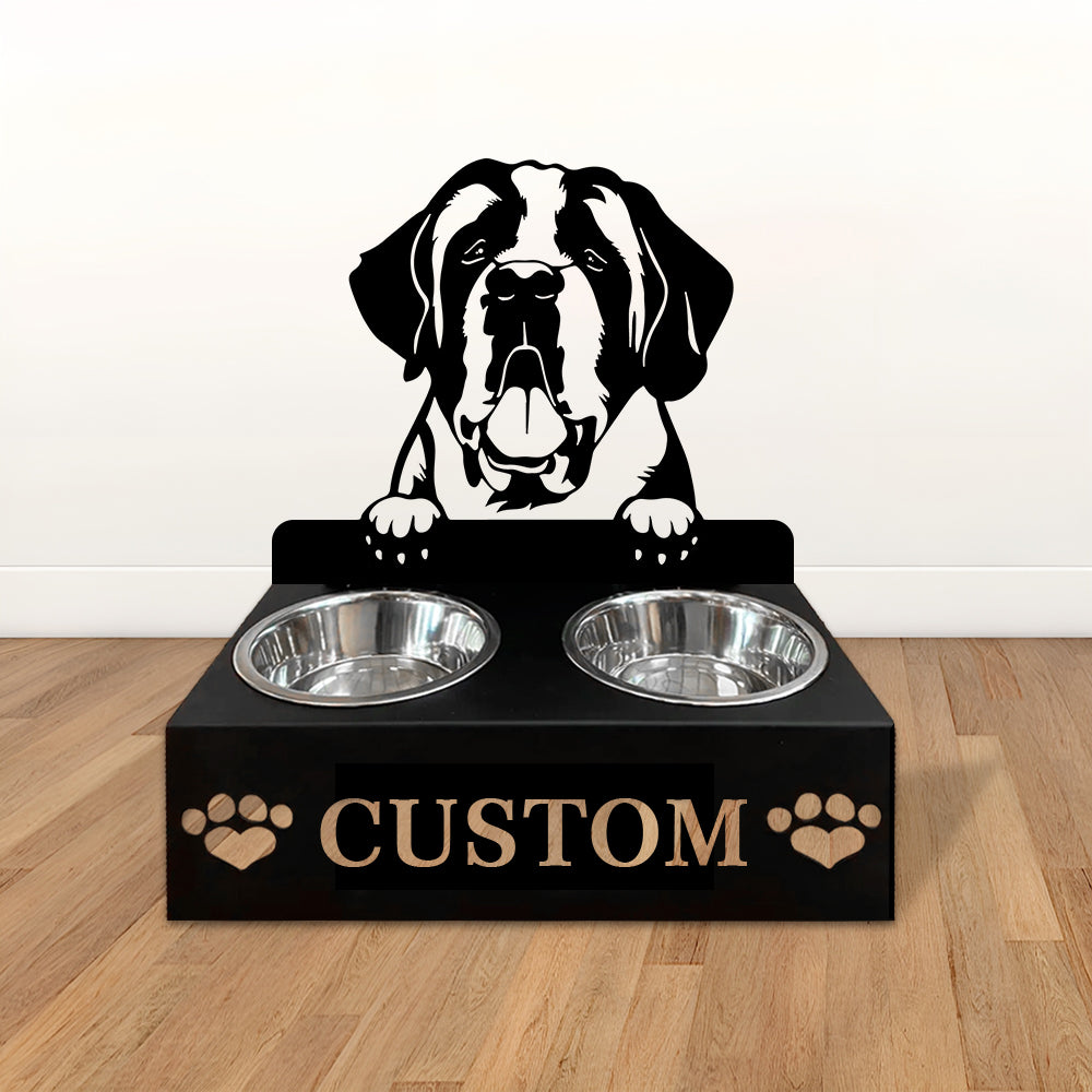 St Bernard Dog Personalized Name Pet Food Bowl Holder