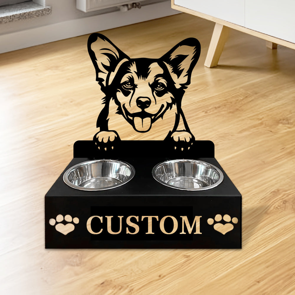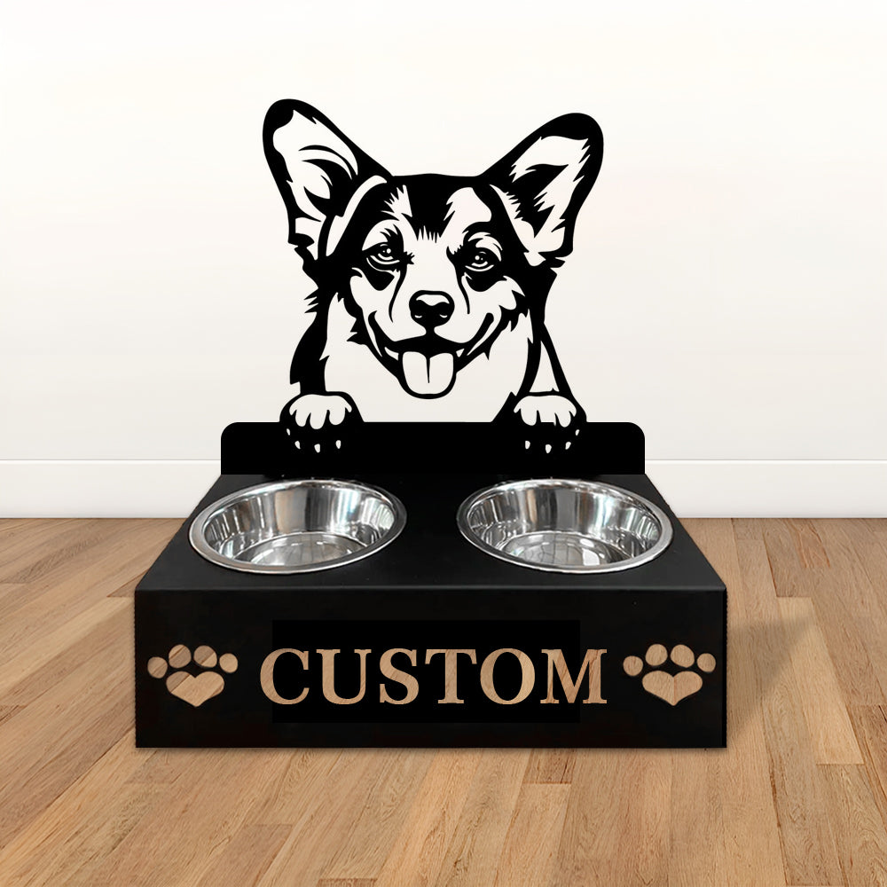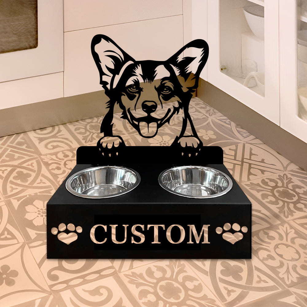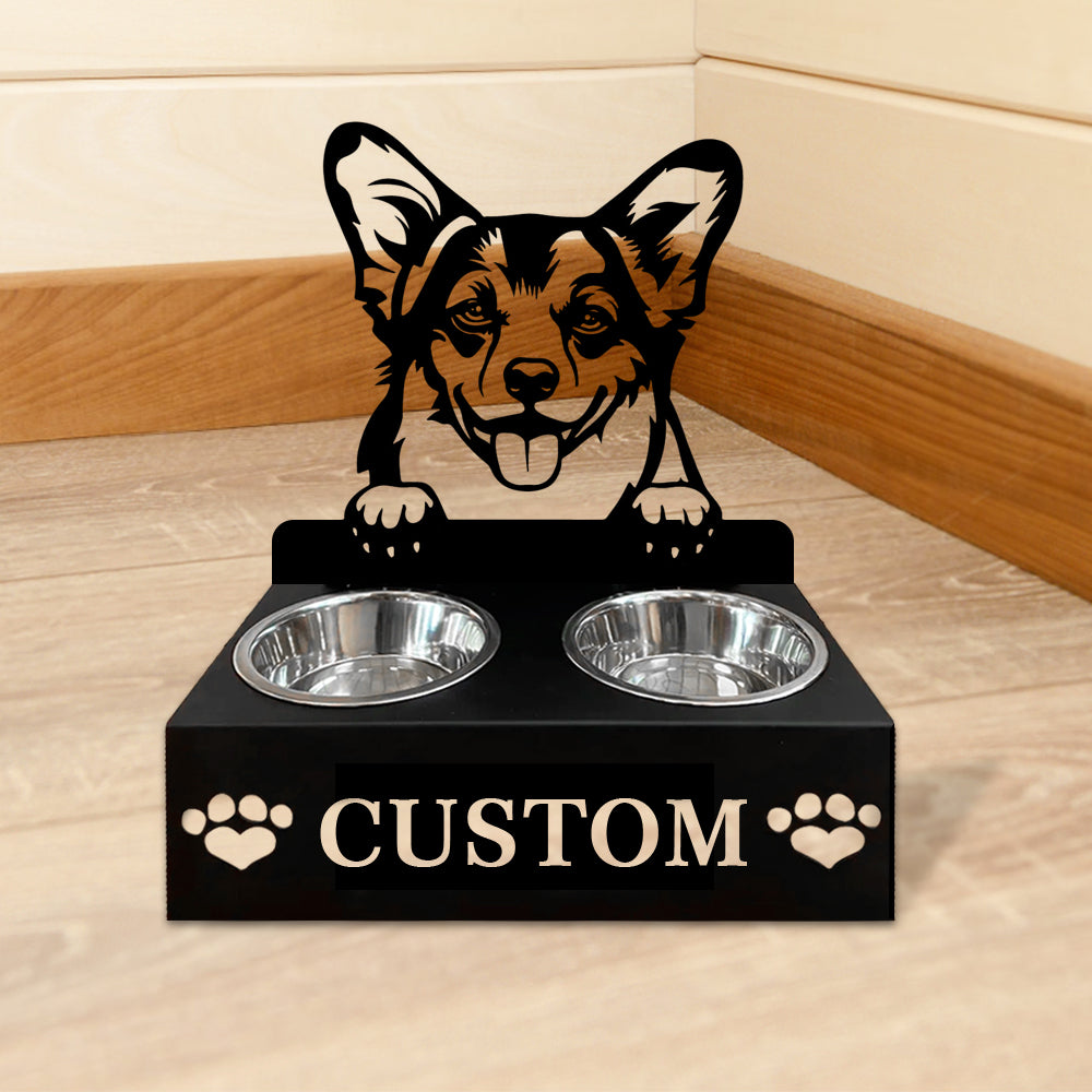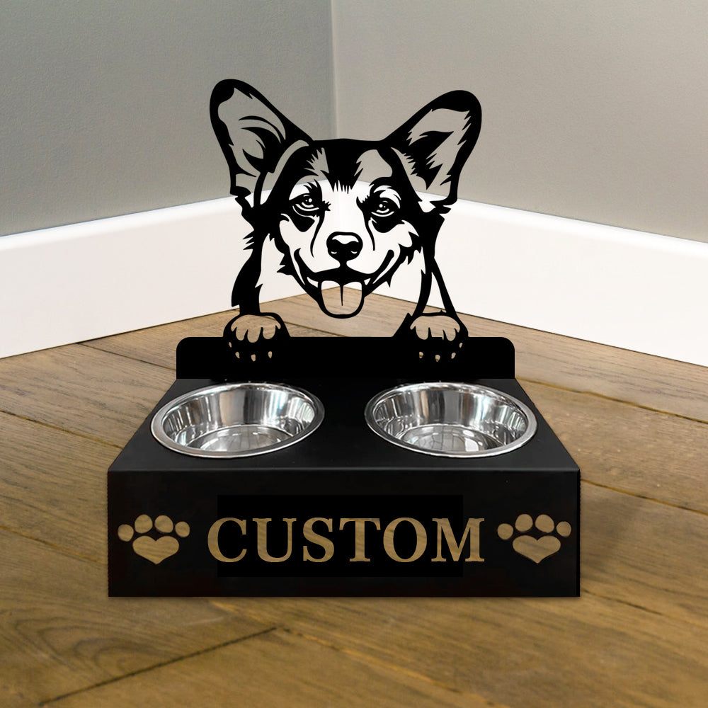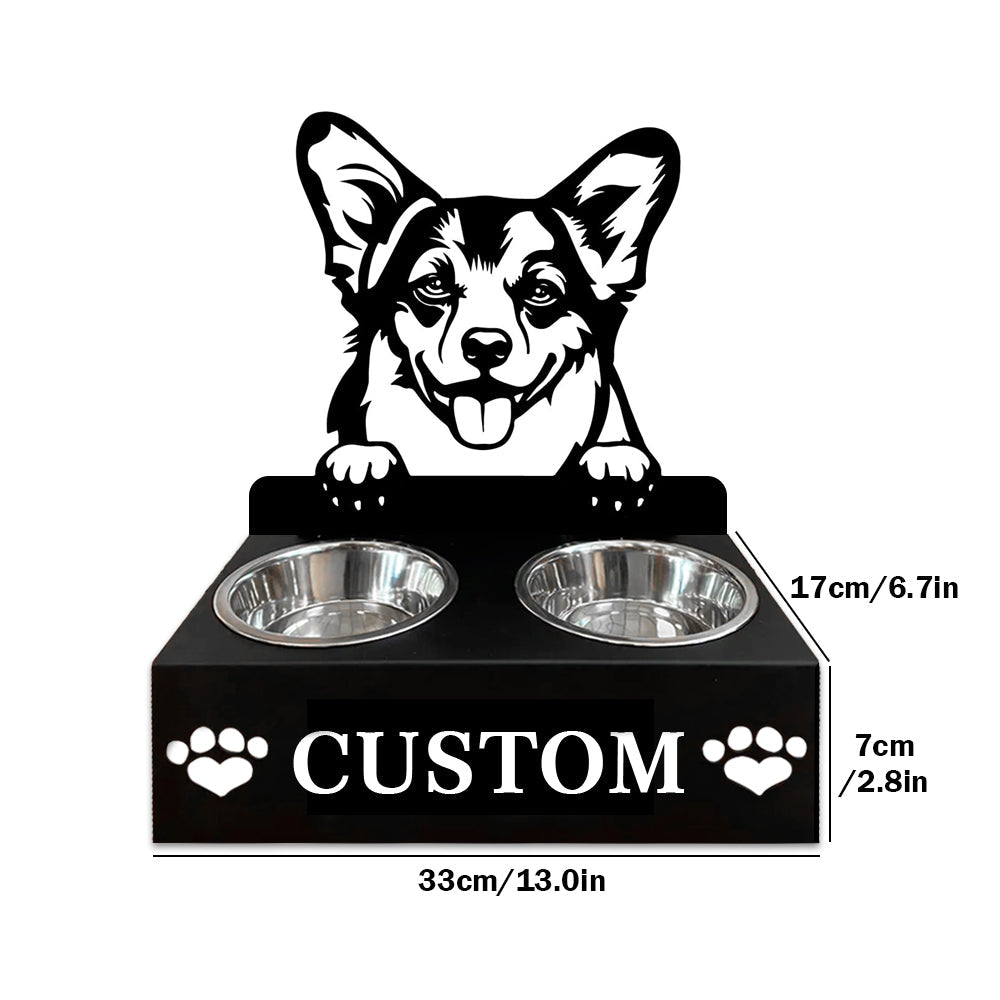 Welsh Corgi Dog Personalized Name Pet Food Bowl Holder