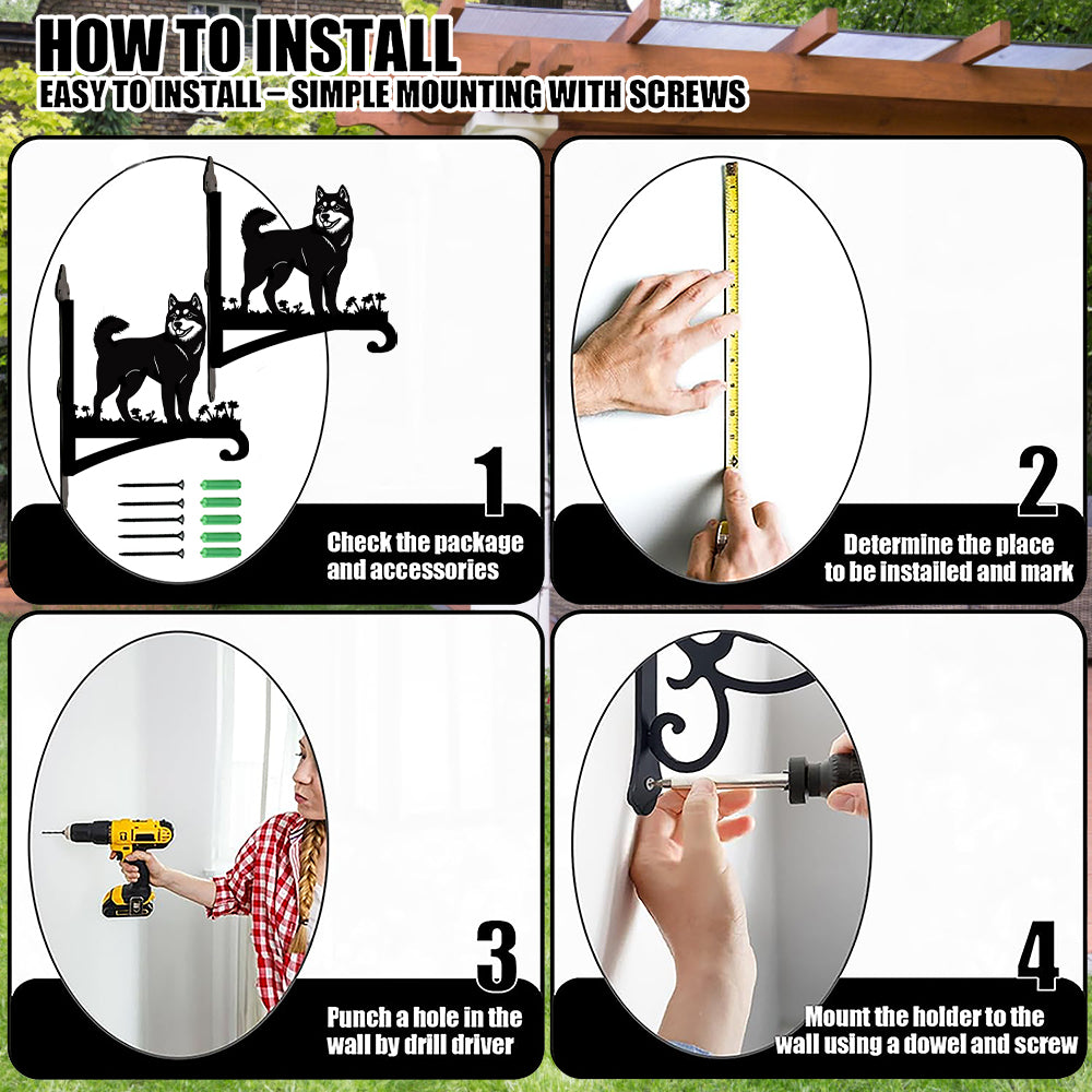 Akita Dog Metal Hanging Bracket Plant Stand