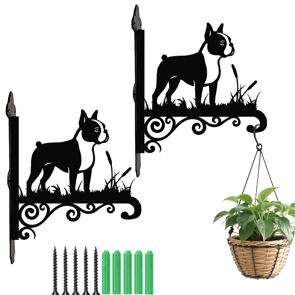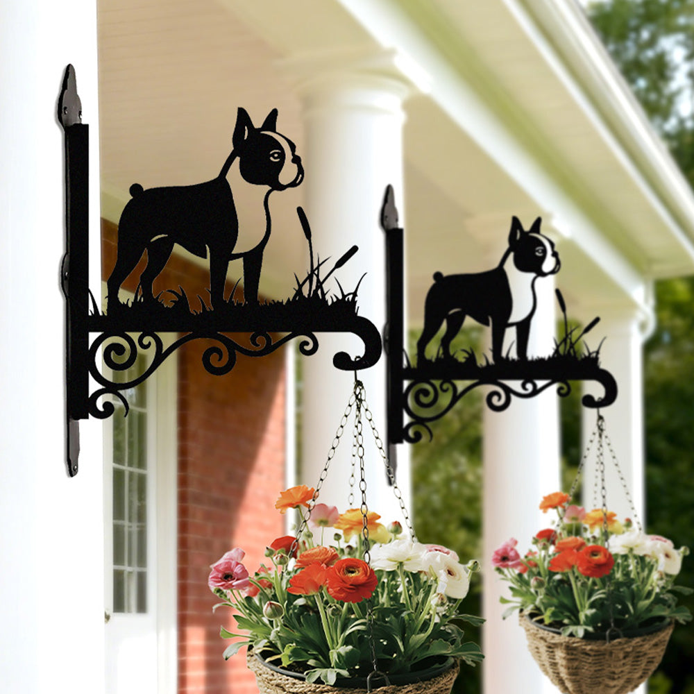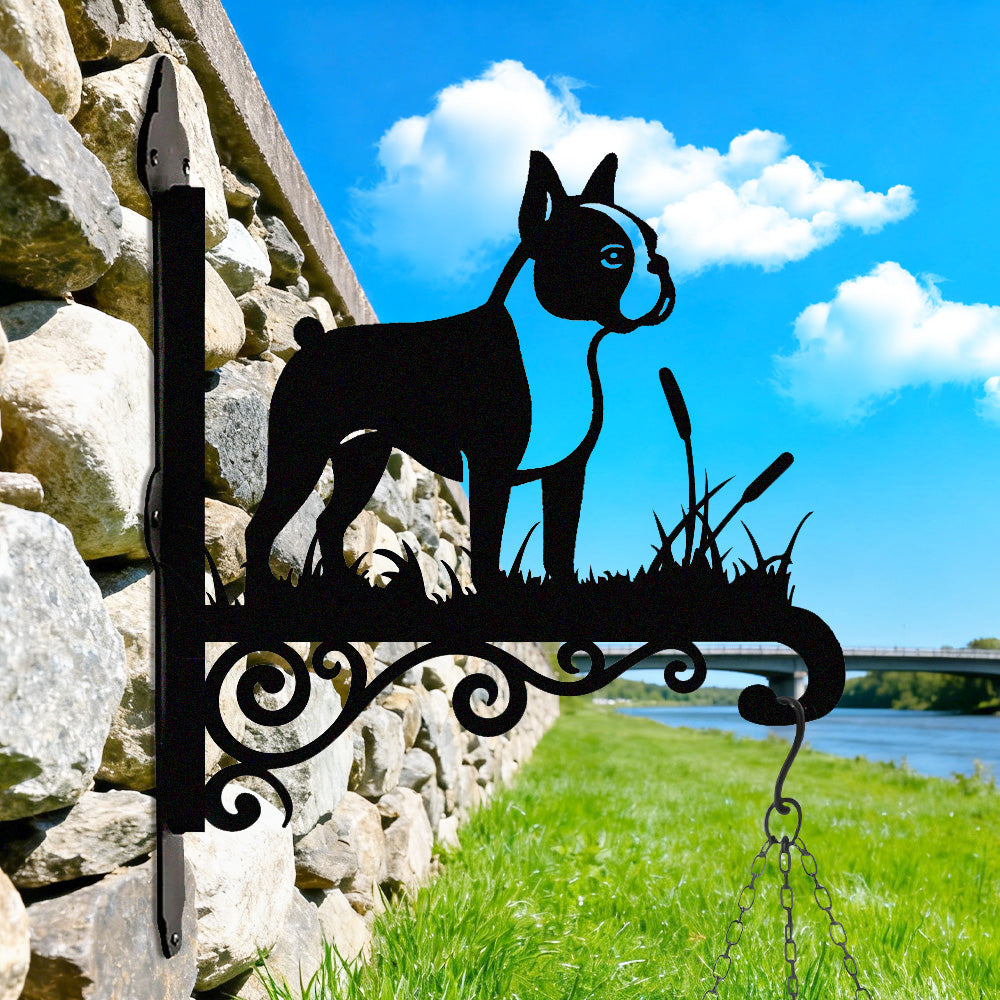 Boston Terrier Metal Hanging Bracket Plant Stand
