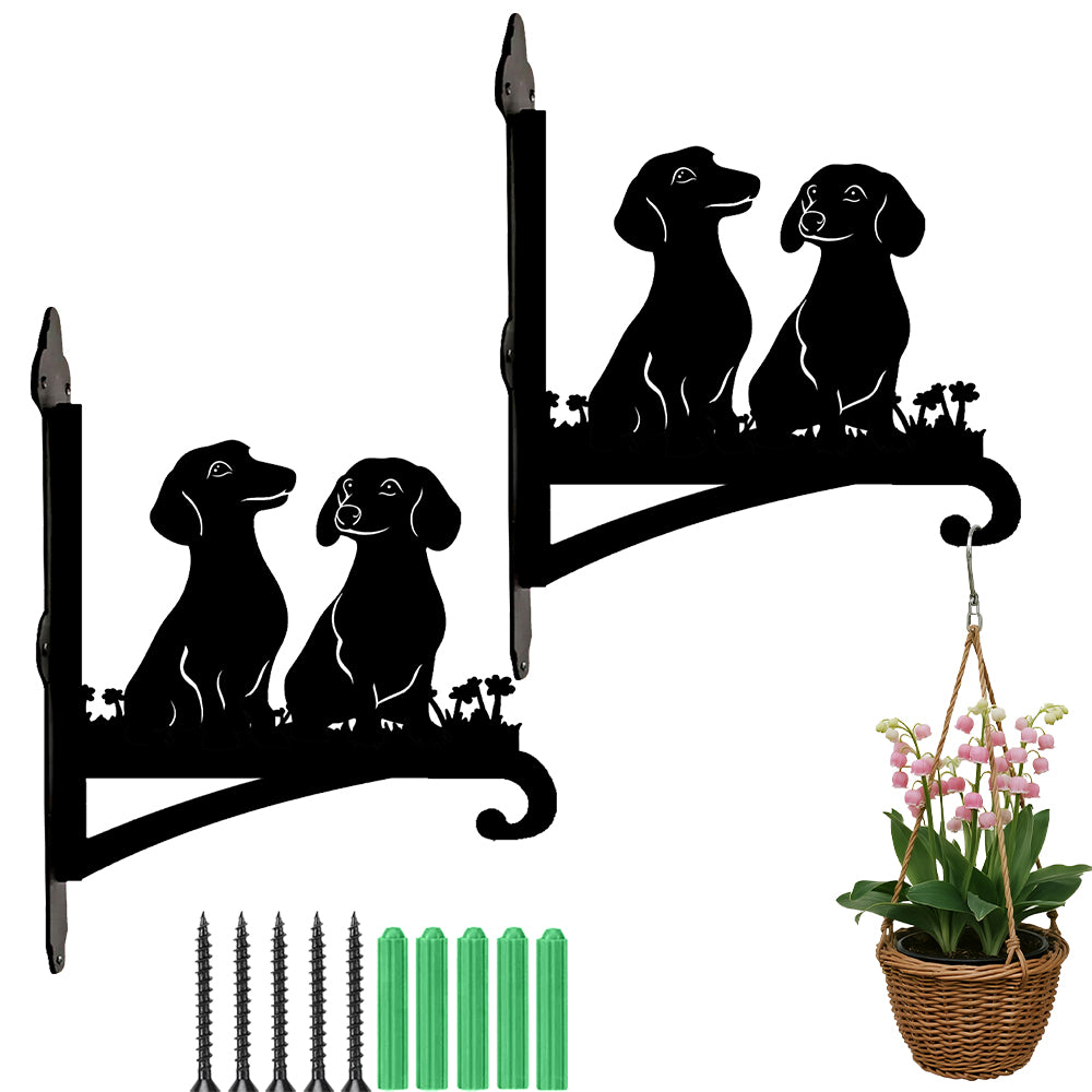 Dachshund Dog & Jack Russell Metal Hanging Bracket Plant Stand