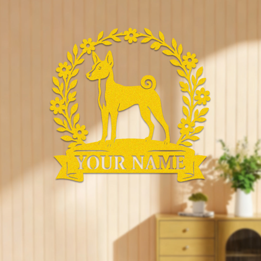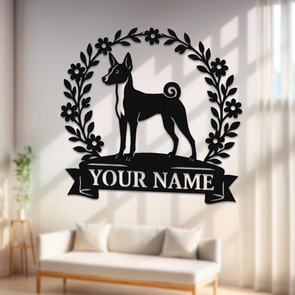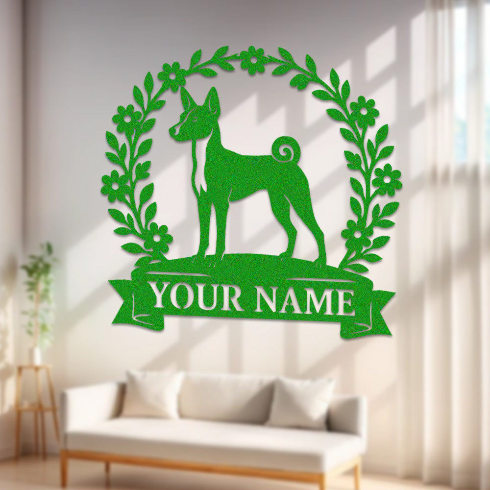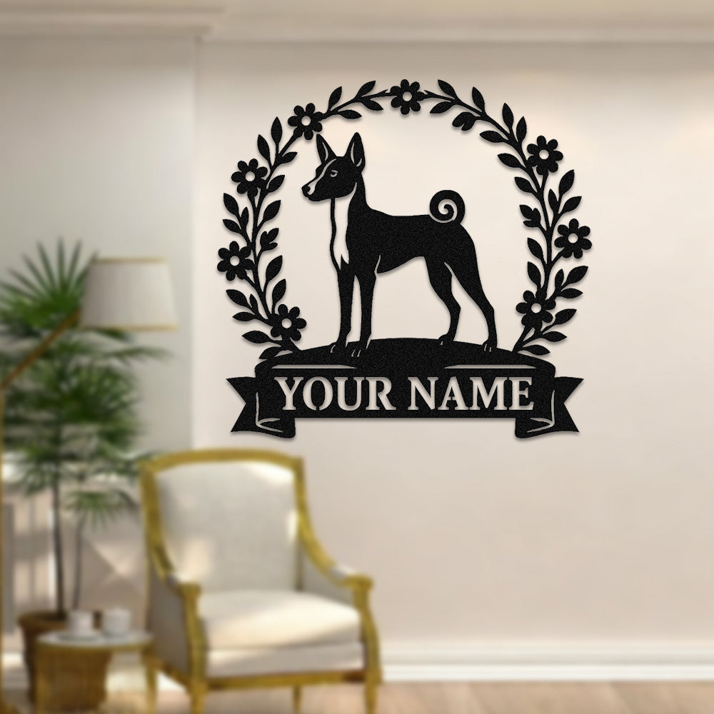 Basenji Wreath Metal Wall Art Dog Lover Personalized Memorial Metal Sign