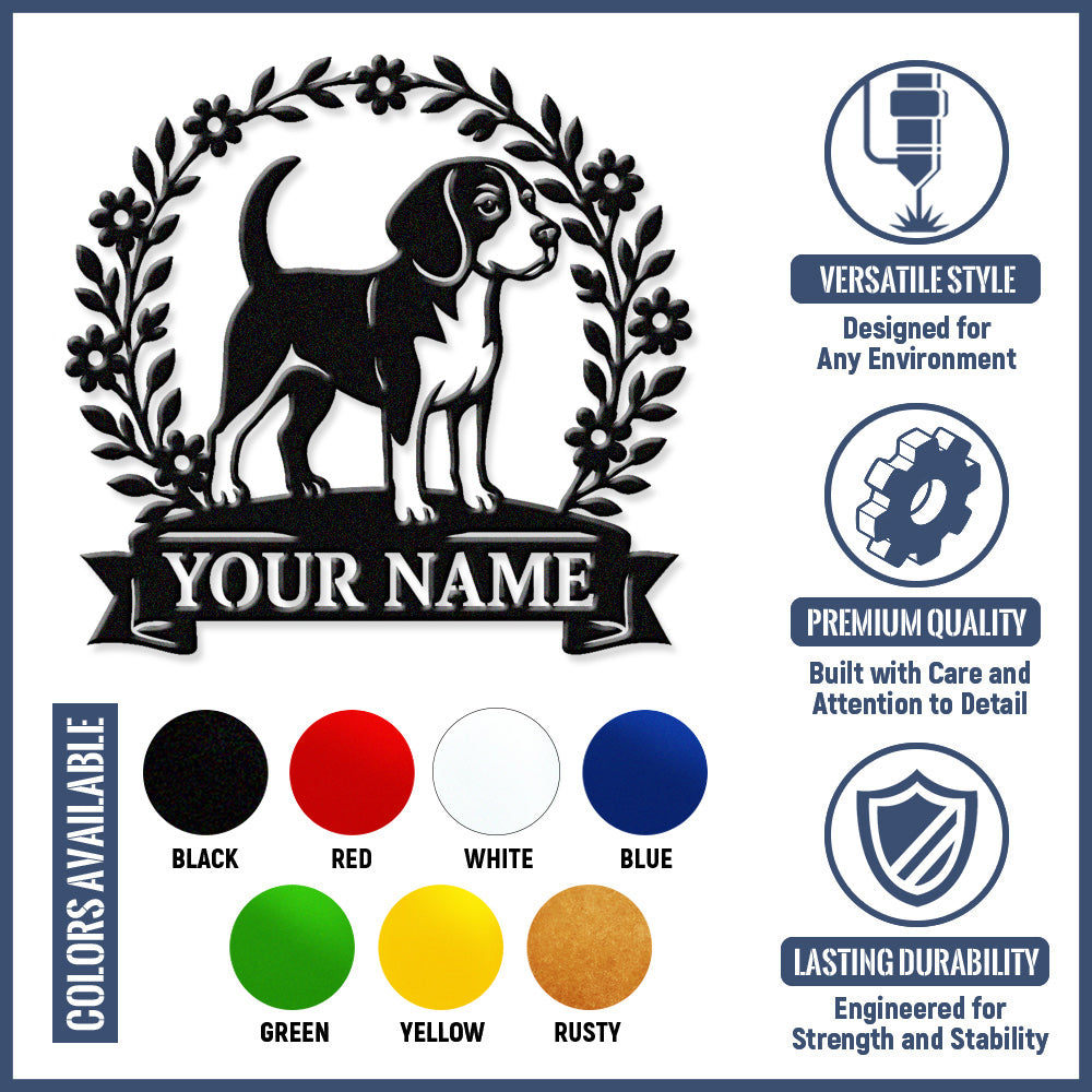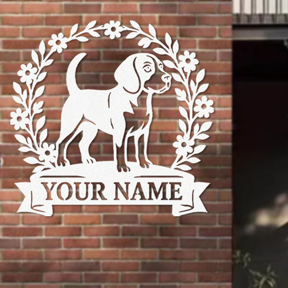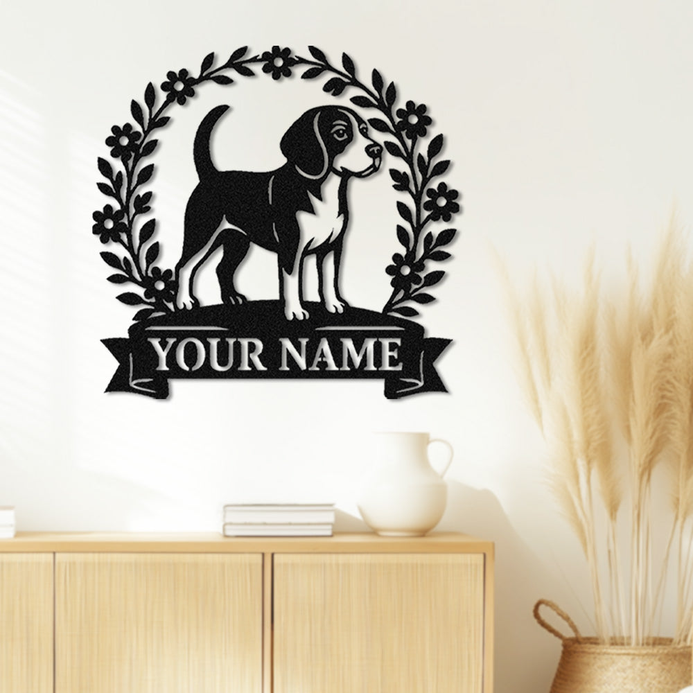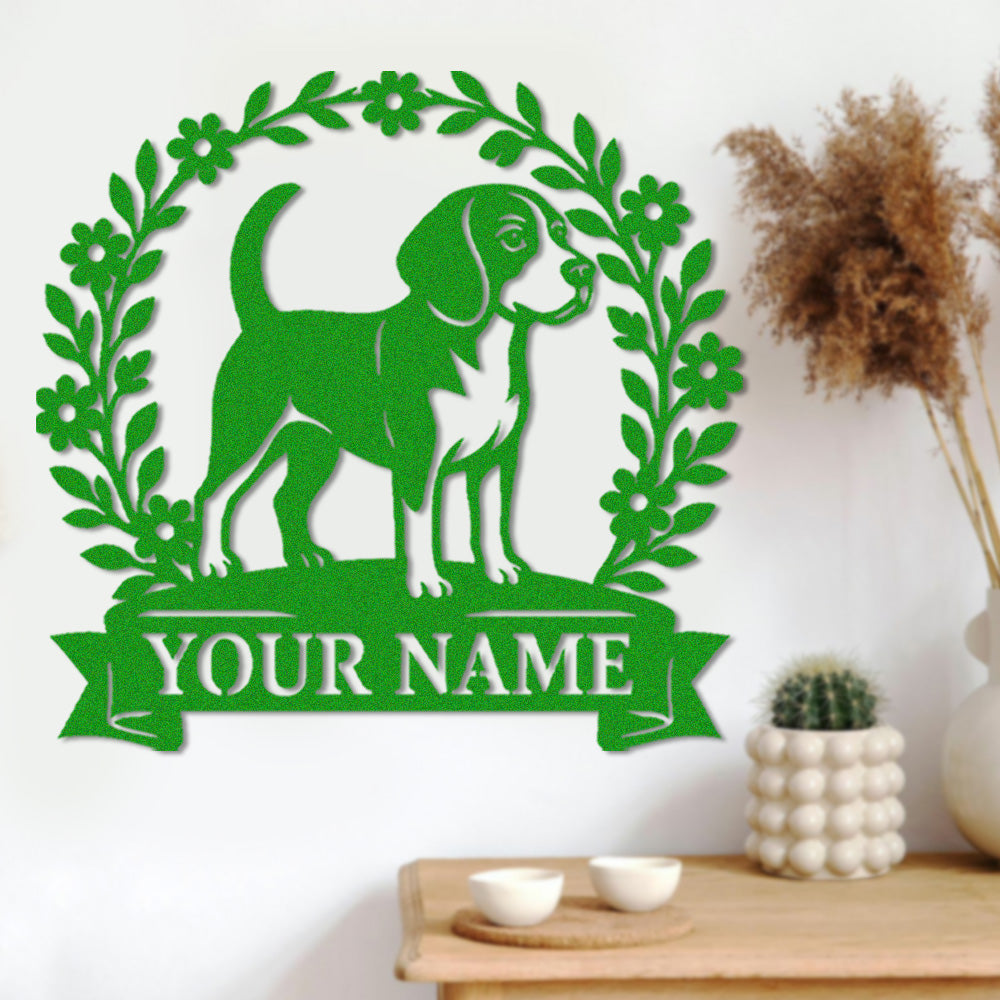 Beagle Wreath Metal Wall Art Dog Lover Personalized Memorial Metal Sign