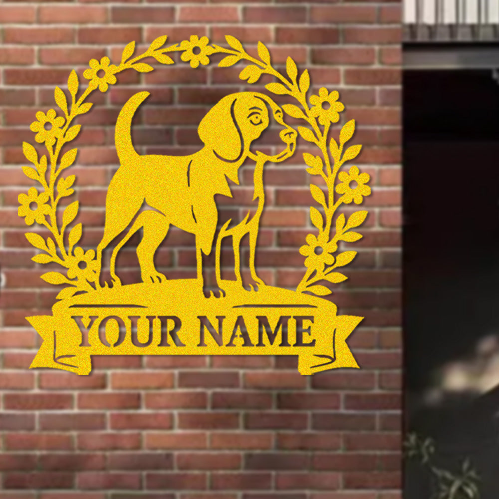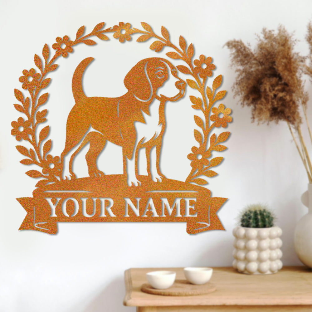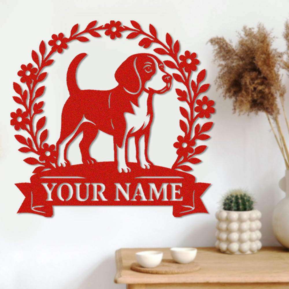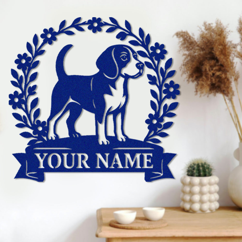 Beagle Wreath Metal Wall Art Dog Lover Personalized Memorial Metal Sign