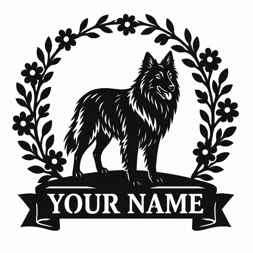 Belgian Sheepdog Wreath Metal Wall Art Dog Lover Personalized Memorial Metal Sign