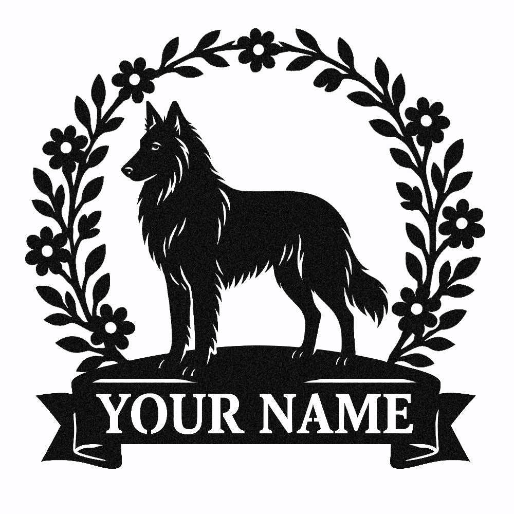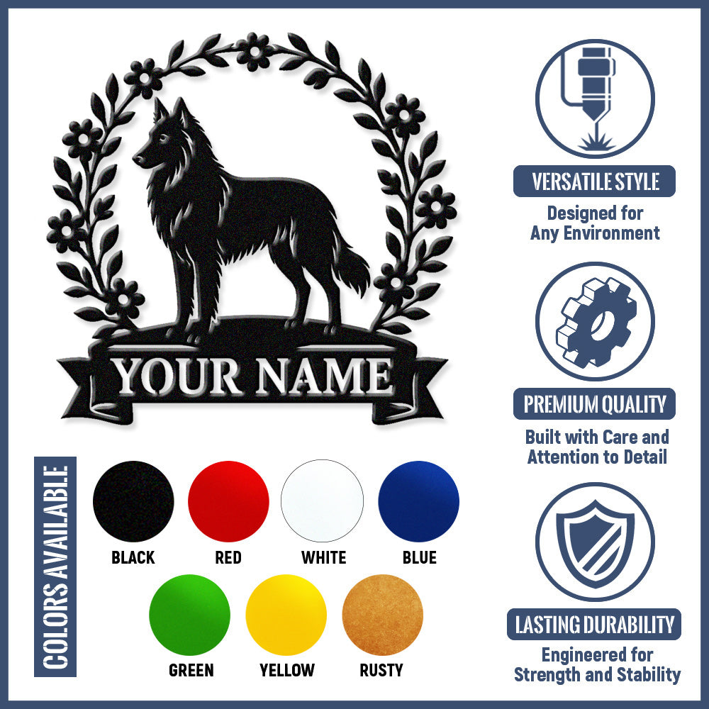 Belgian Tervuren Wreath Metal Wall Art Dog Lover Personalized Memorial Metal Sign