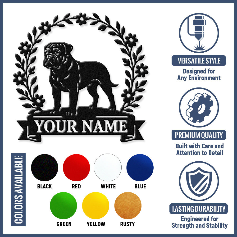 Bullmastiff Wreath Metal Wall Art Dog Lover Personalized Memorial Metal Sign