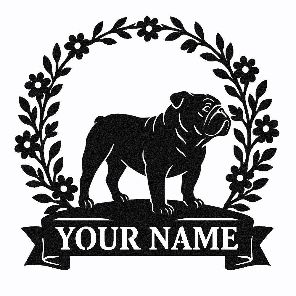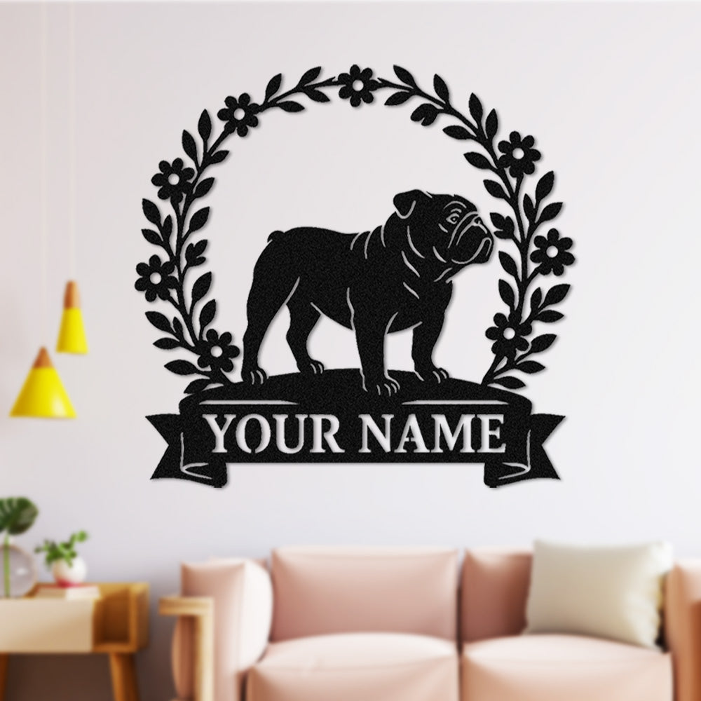 English Bulldog Wreath Metal Wall Art Dog Lover Personalized Memorial Metal Sign