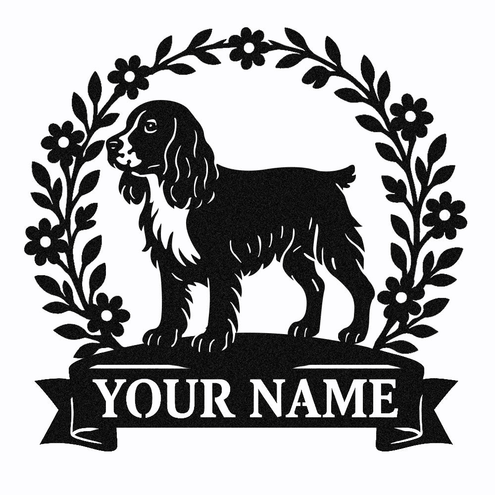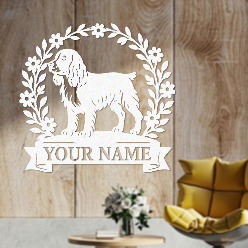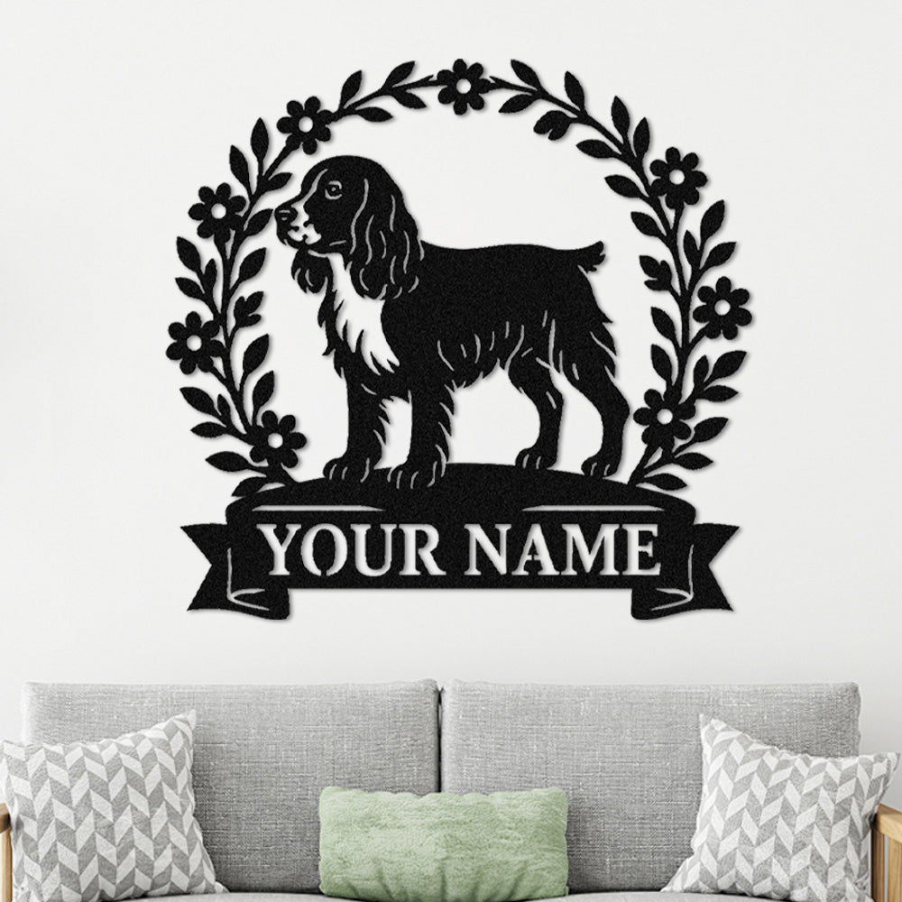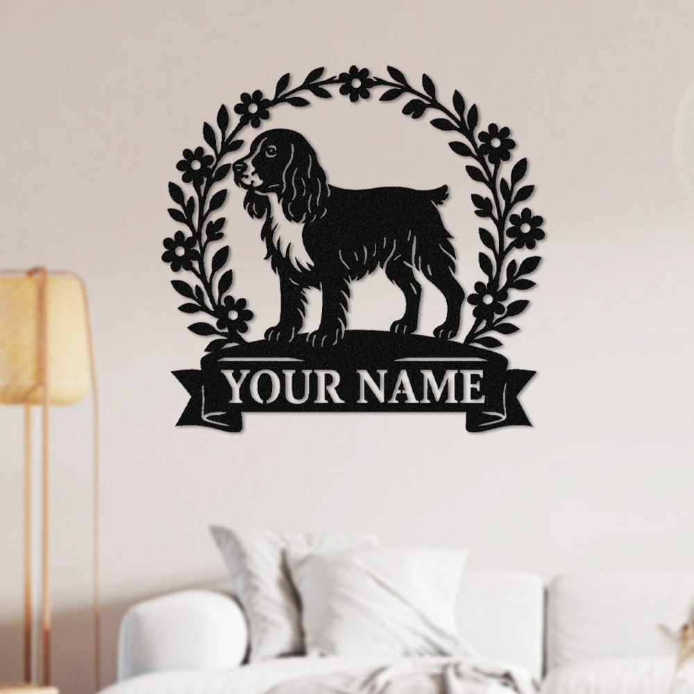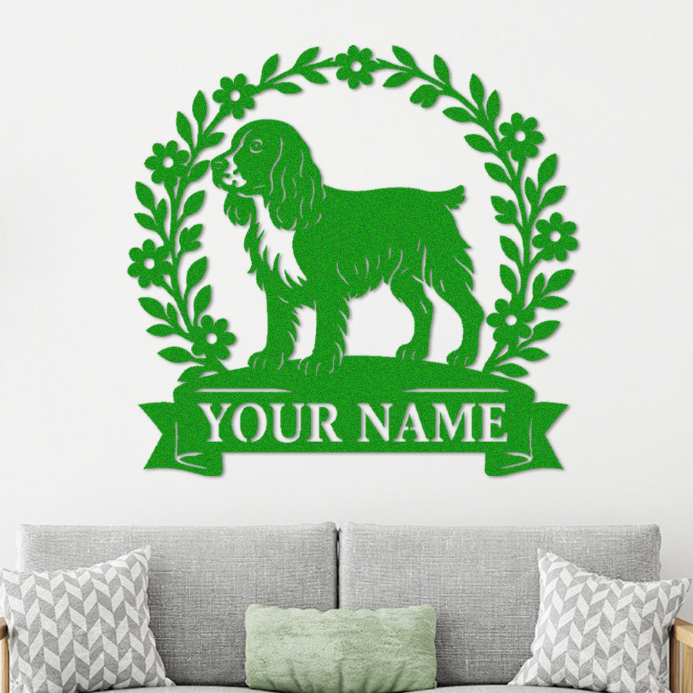 English Springer Spaniel Wreath Metal Wall Art Dog Lover Personalized Memorial Metal Sign
