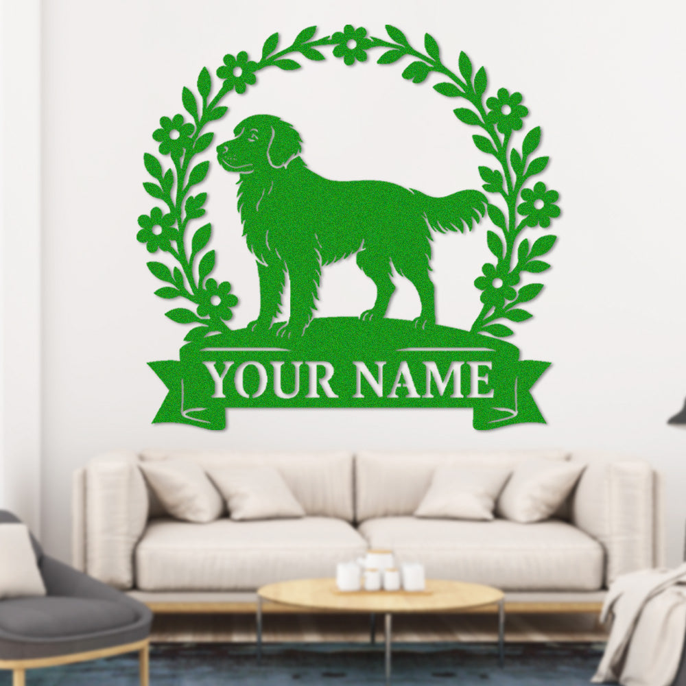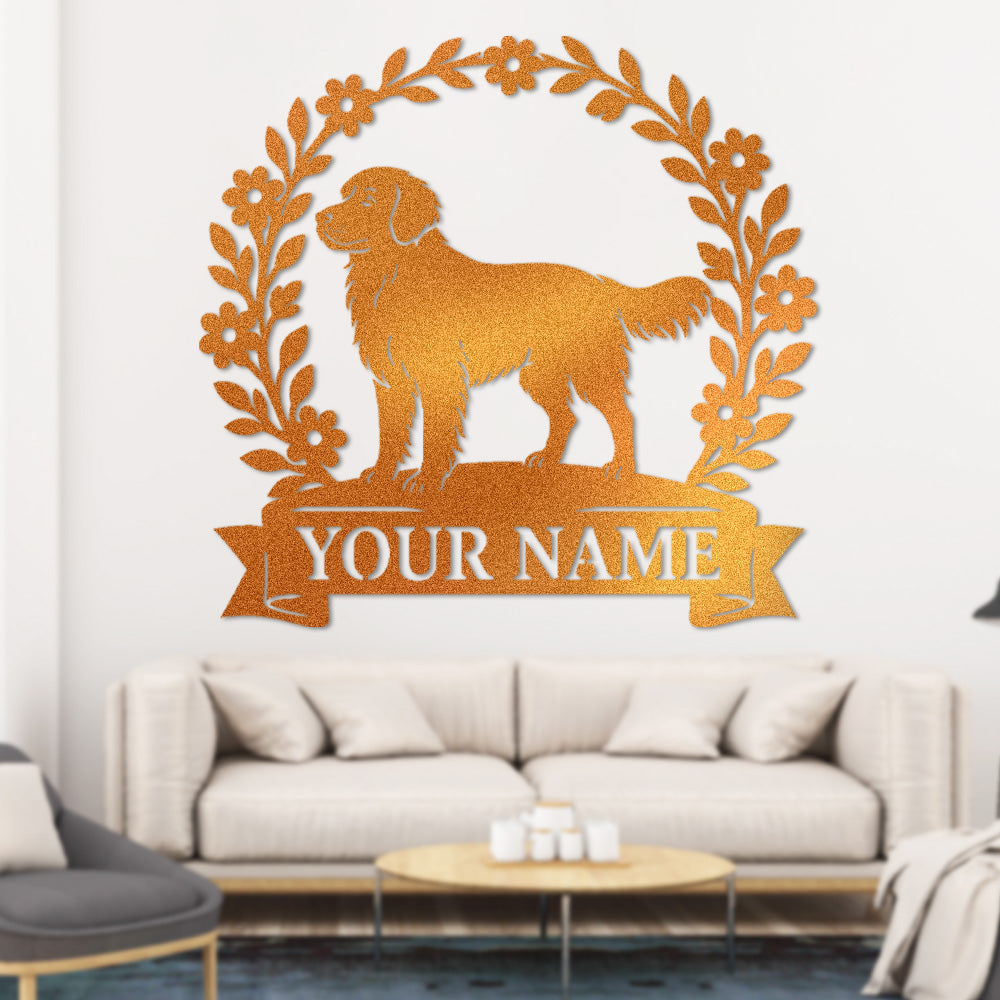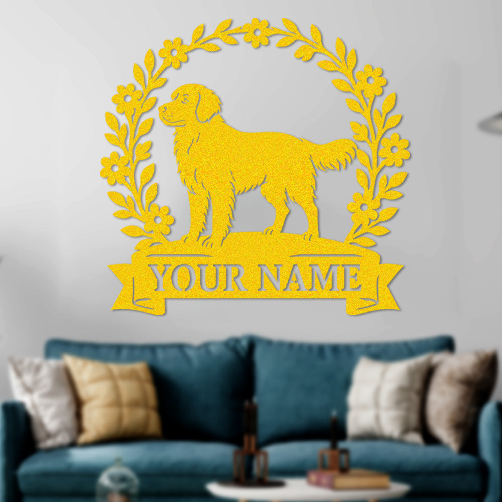 Golden Retriever Wreath Metal Wall Art Dog Lover Personalized Memorial Metal Sign