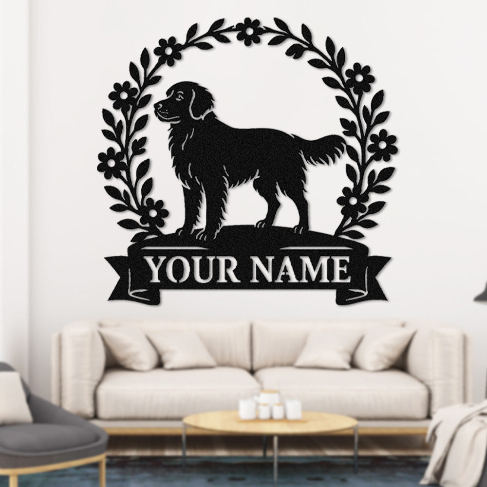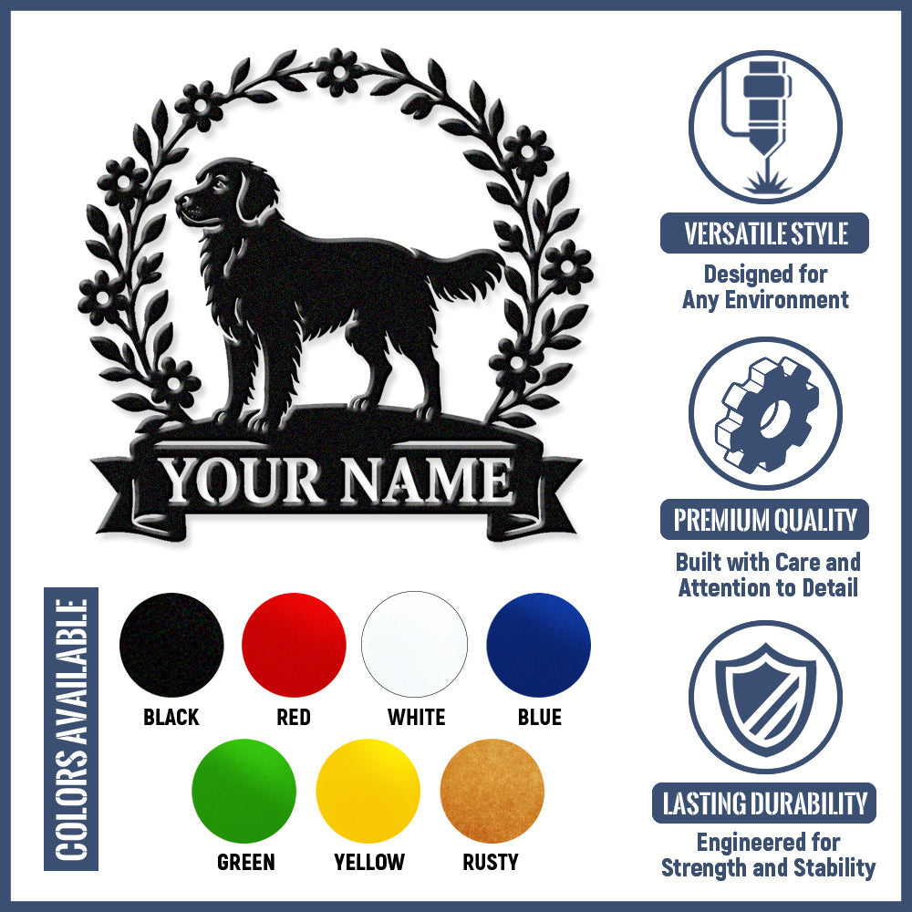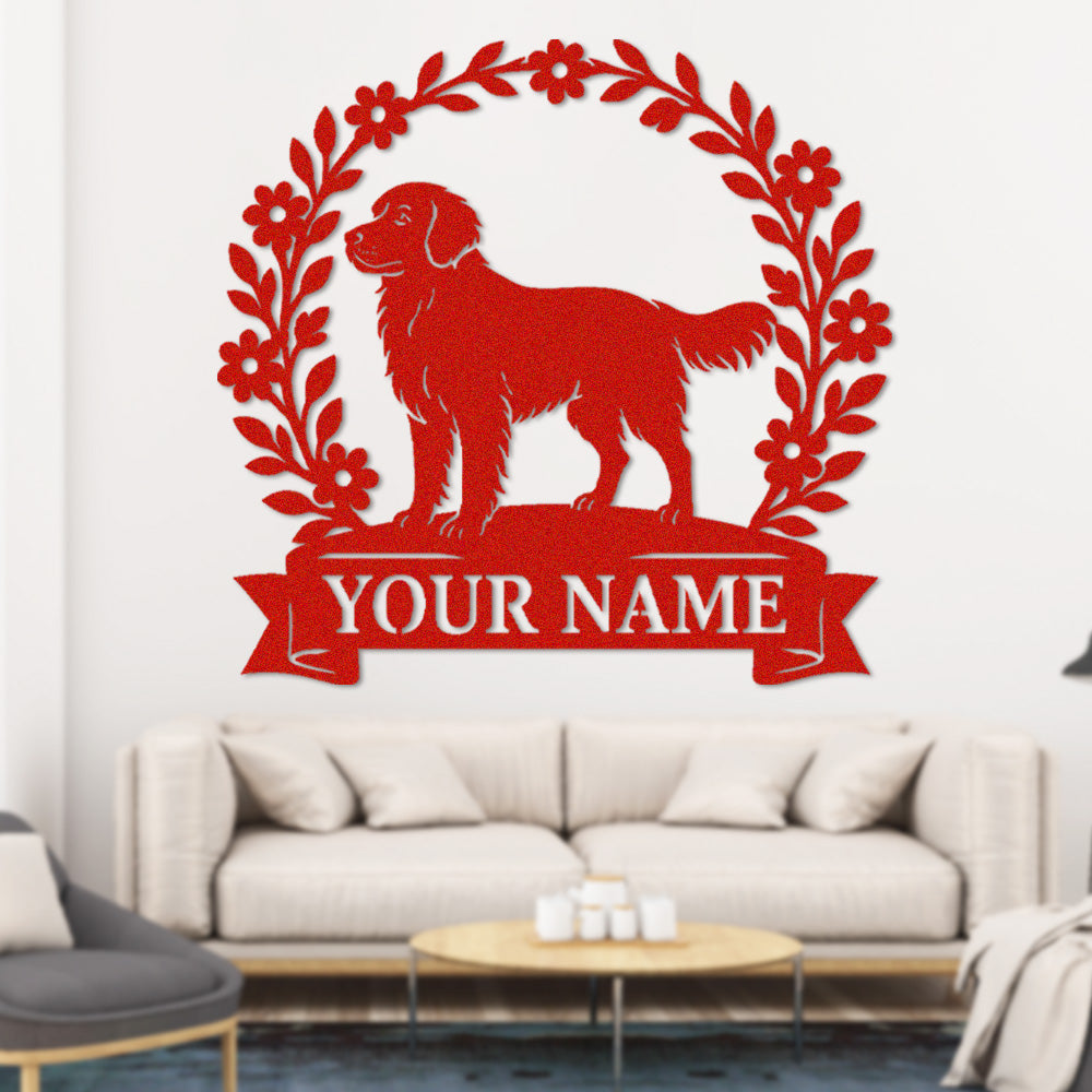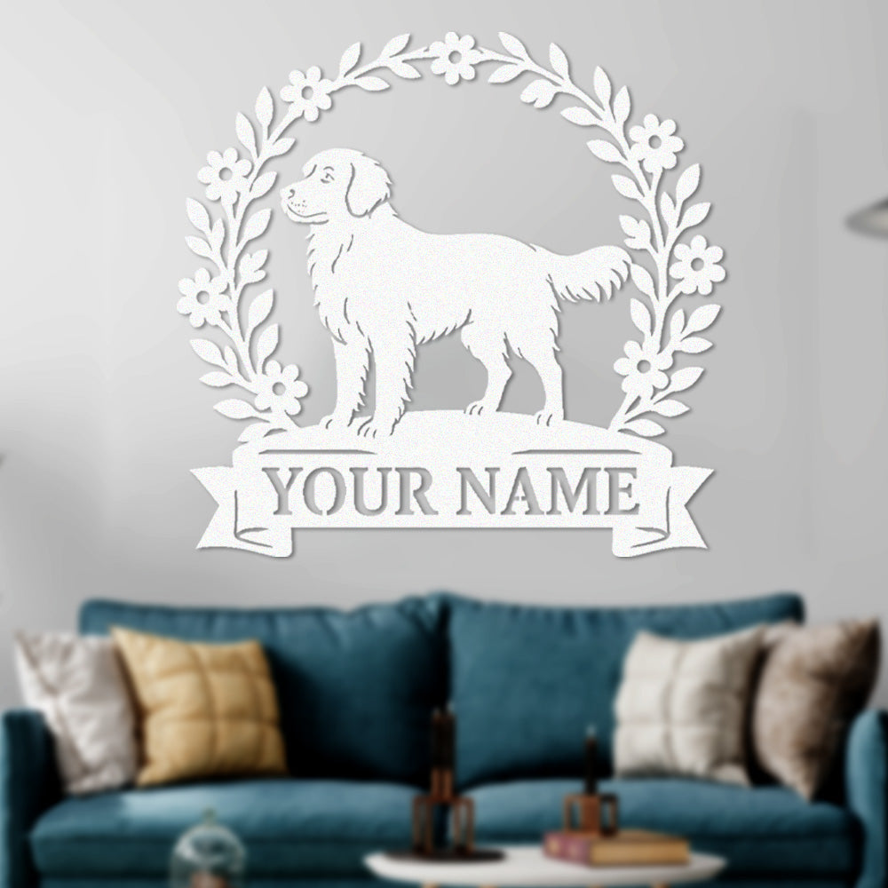 Golden Retriever Wreath Metal Wall Art Dog Lover Personalized Memorial Metal Sign