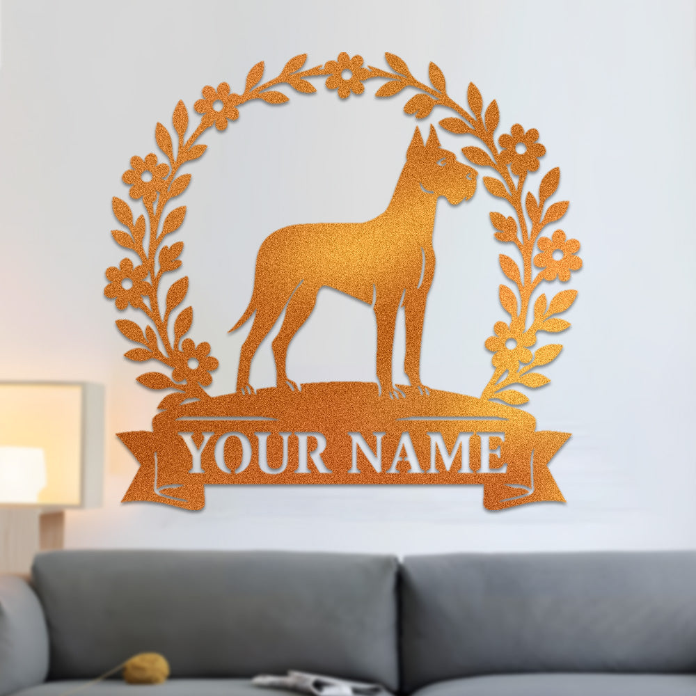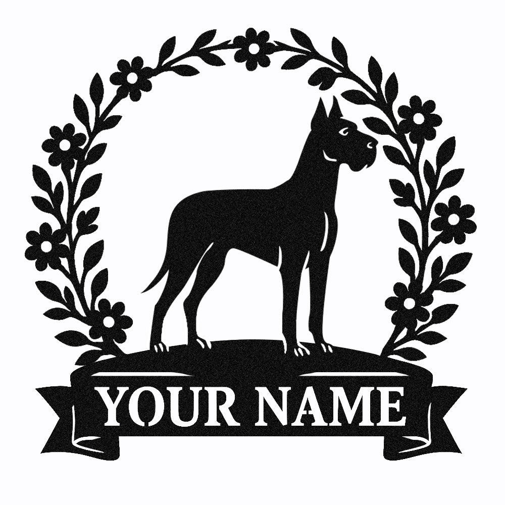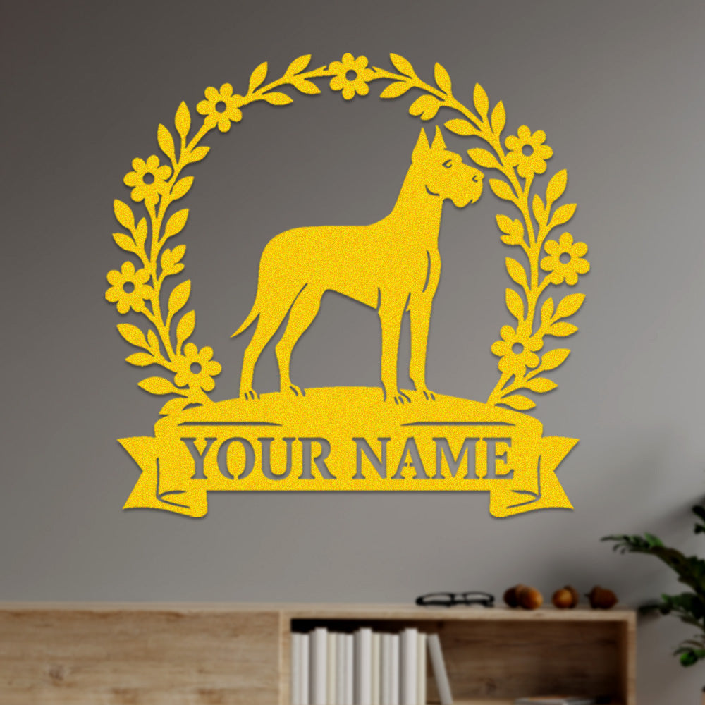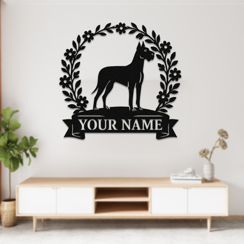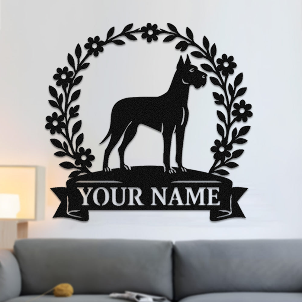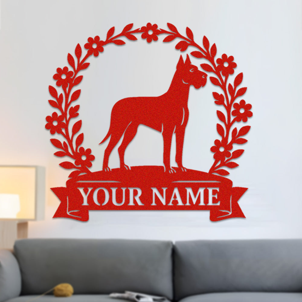 Great Dane Wreath Metal Wall Art Dog Lover Personalized Memorial Metal Sign