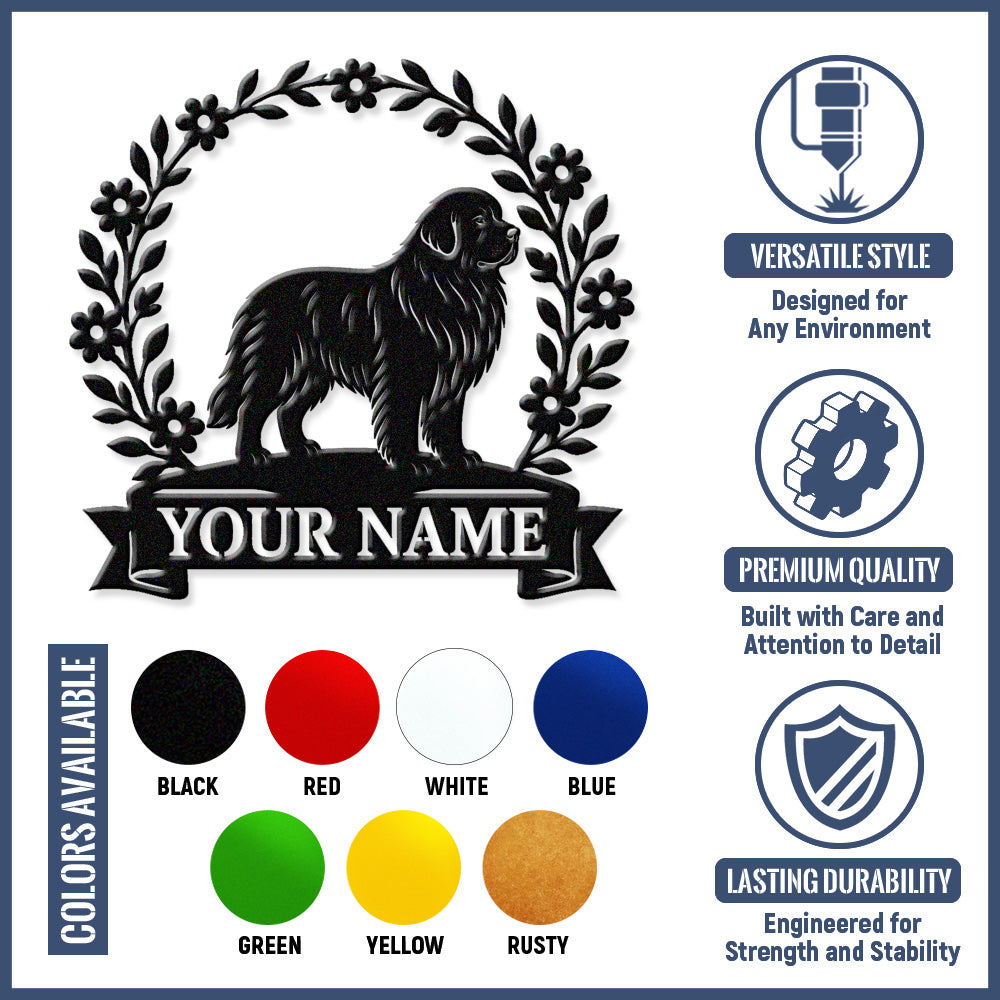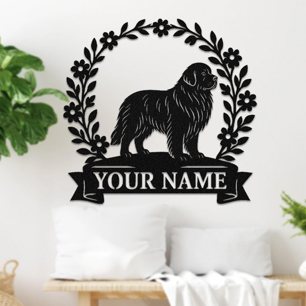 Newfoundland Wreath Metal Wall Art Dog Lover Personalized Memorial Metal Sign