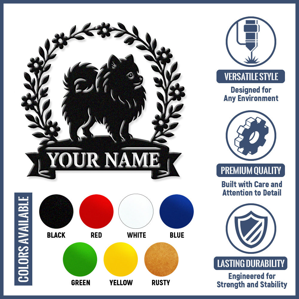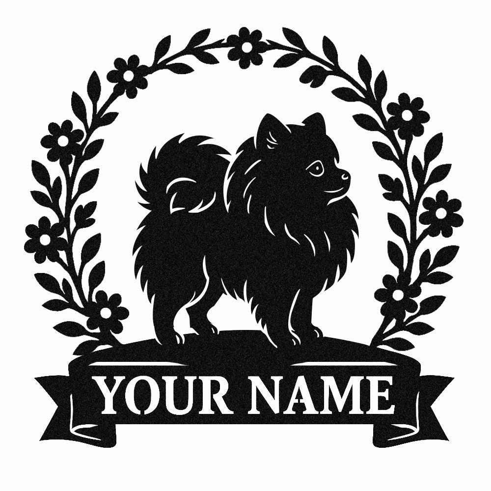 Pomeranian Wreath Metal Wall Art Dog Lover Personalized Memorial Metal Sign