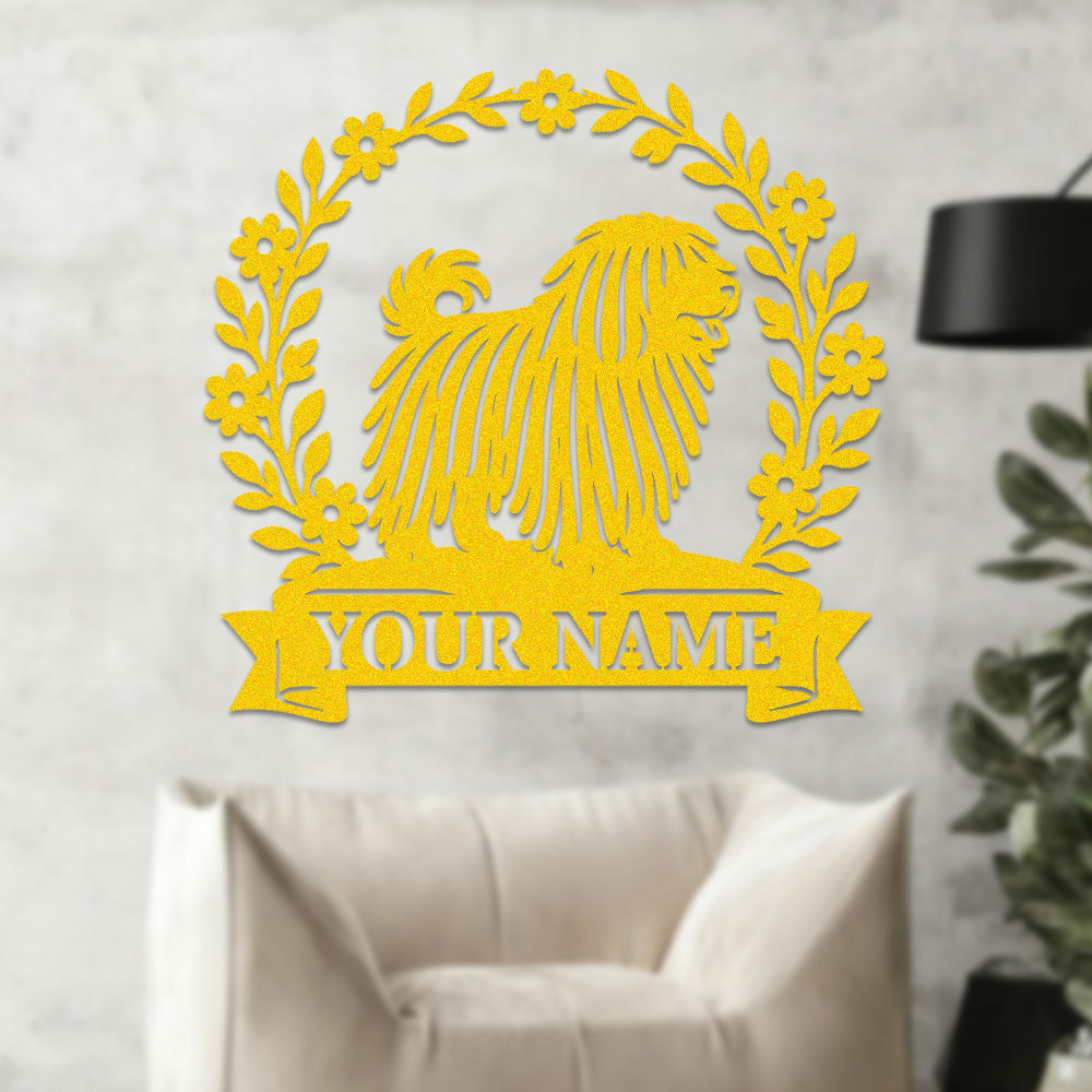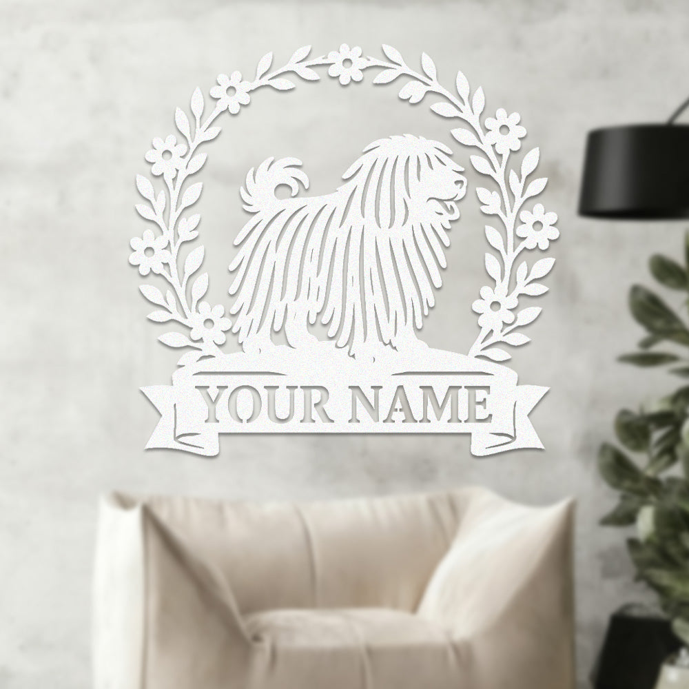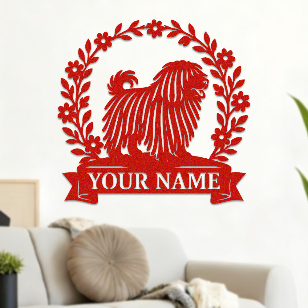 Puli Wreath Metal Wall Art Dog Lover Personalized Memorial Metal Sign