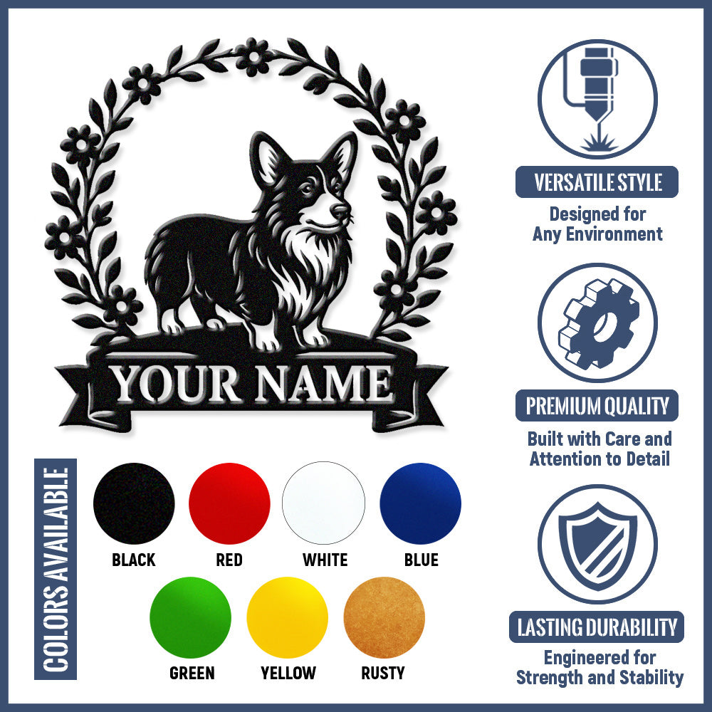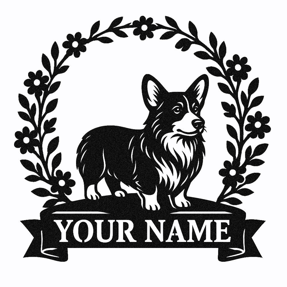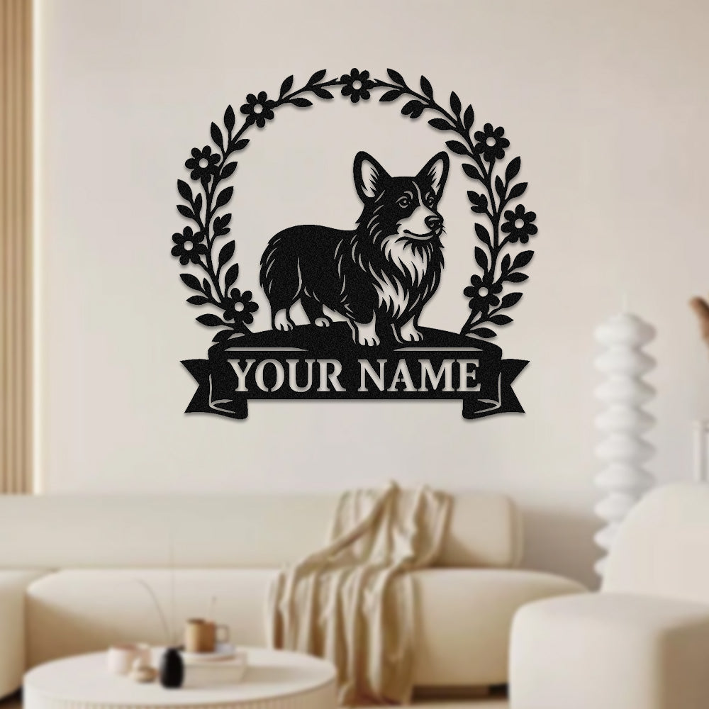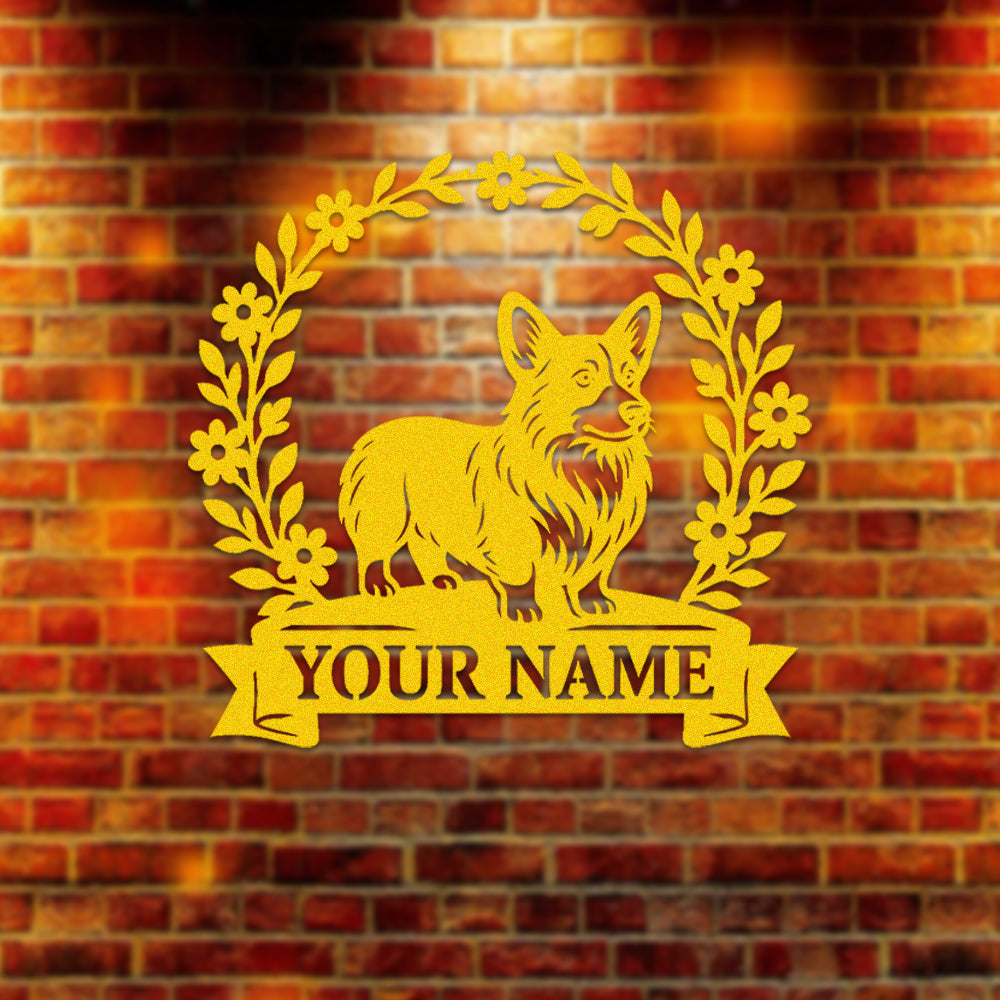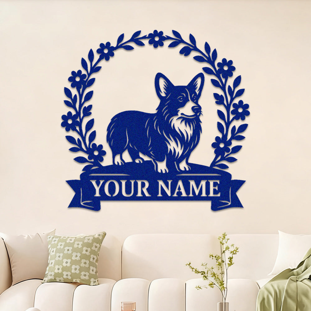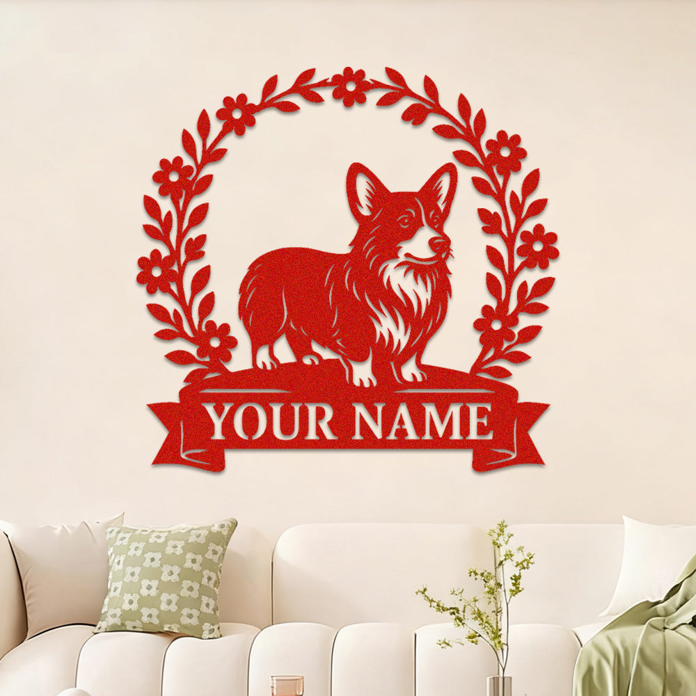 Welsh Corgi Wreath Metal Wall Art Dog Lover Personalized Memorial Metal Sign