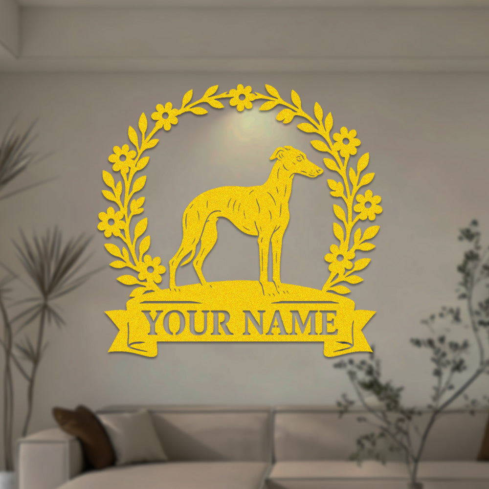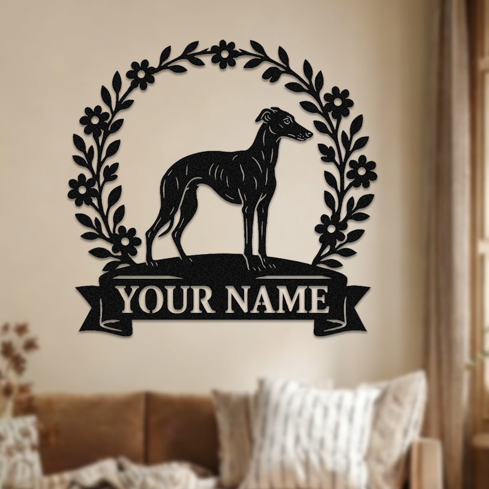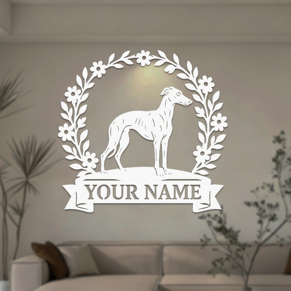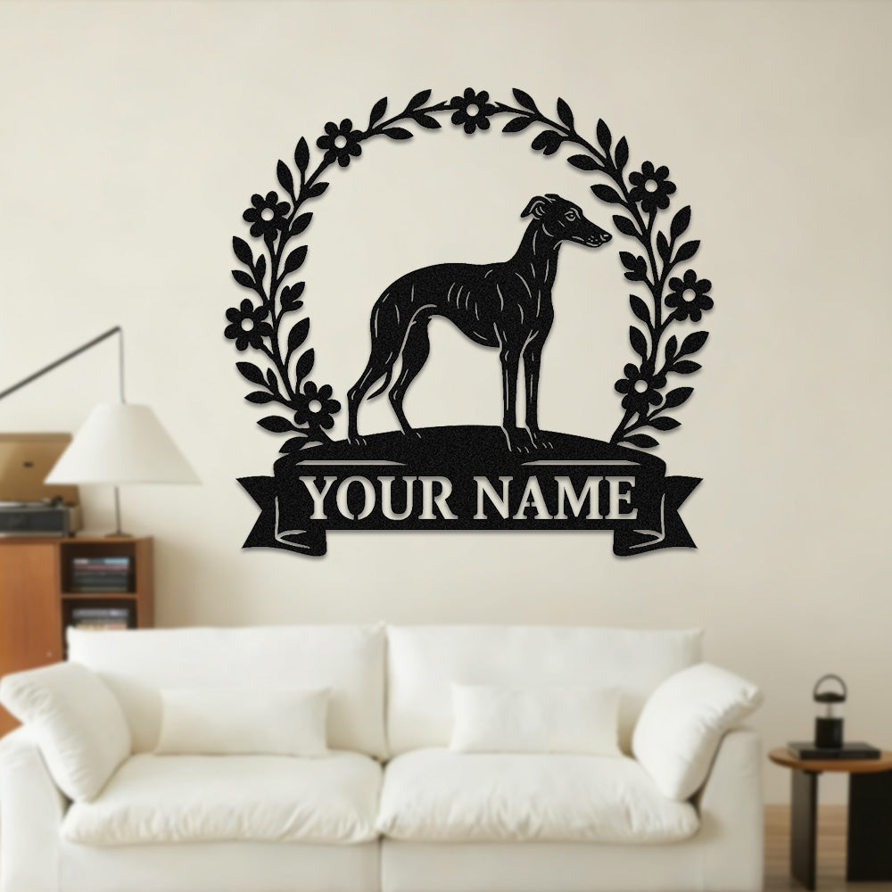 Whippet Wreath Metal Wall Art Dog Lover Personalized Memorial Metal Sign