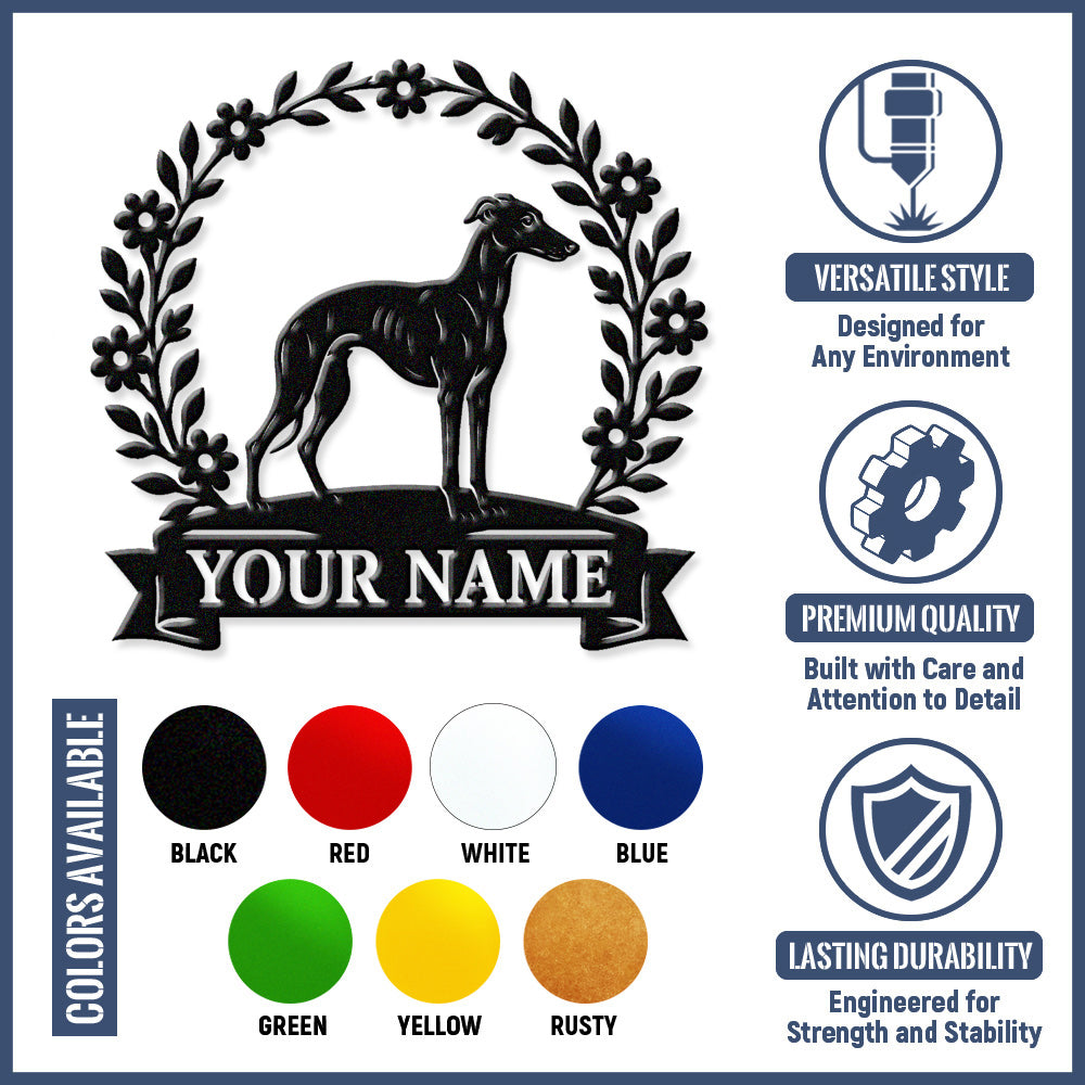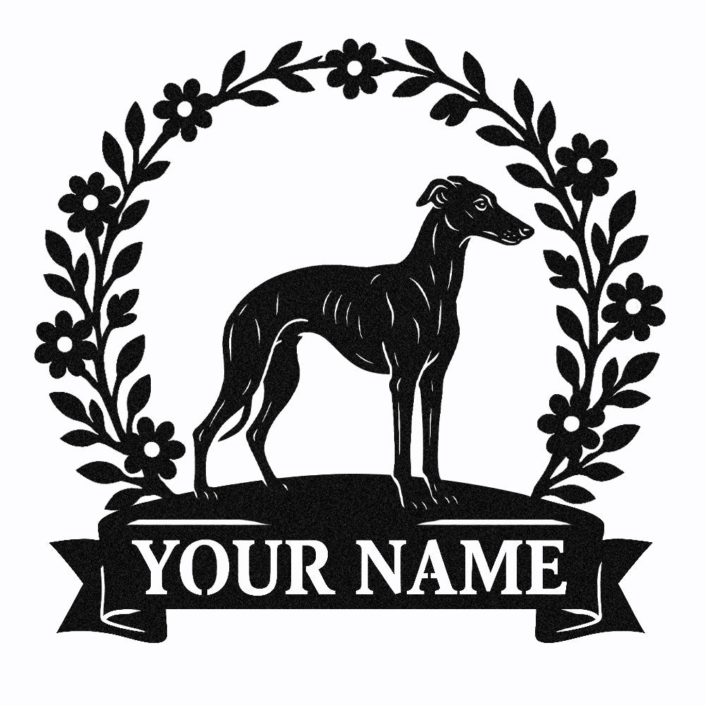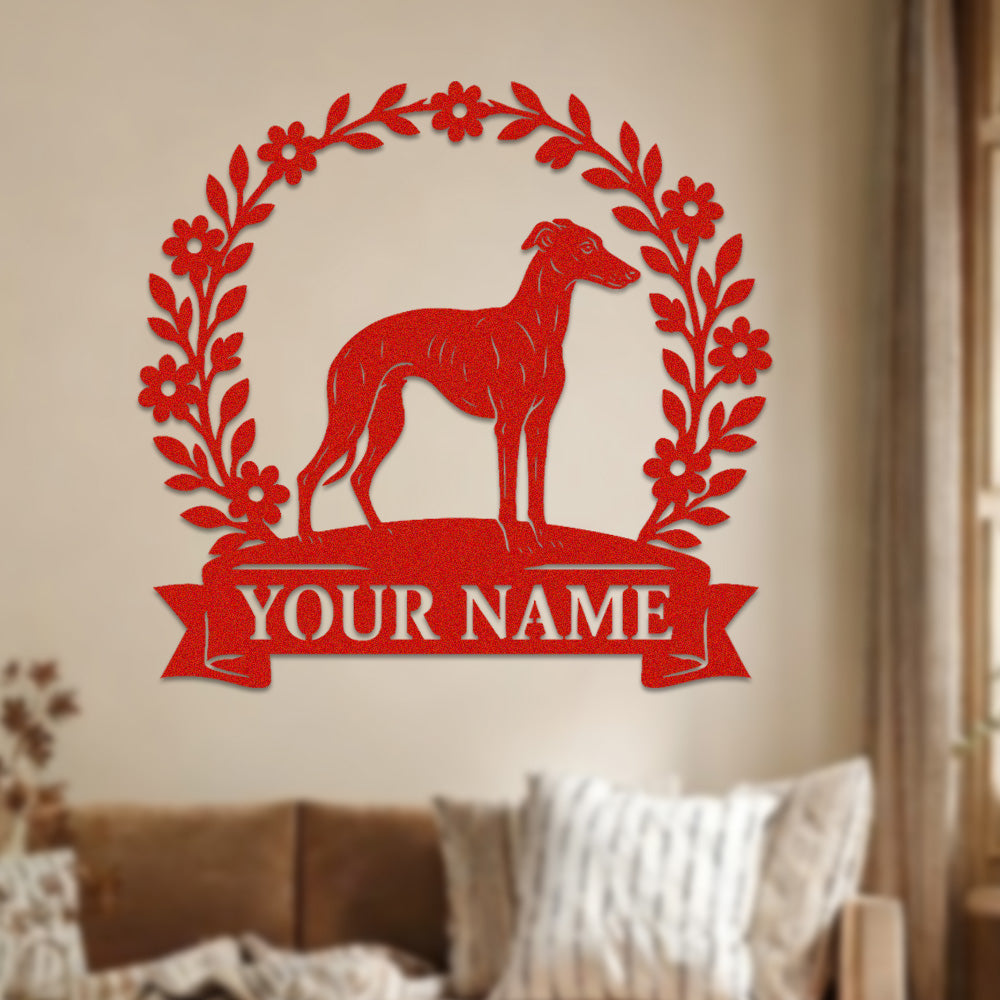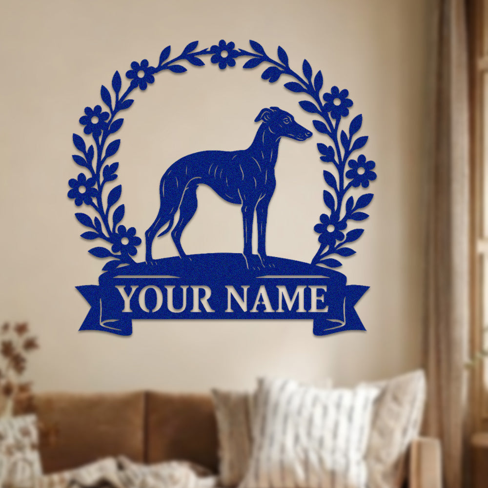 Whippet Wreath Metal Wall Art Dog Lover Personalized Memorial Metal Sign