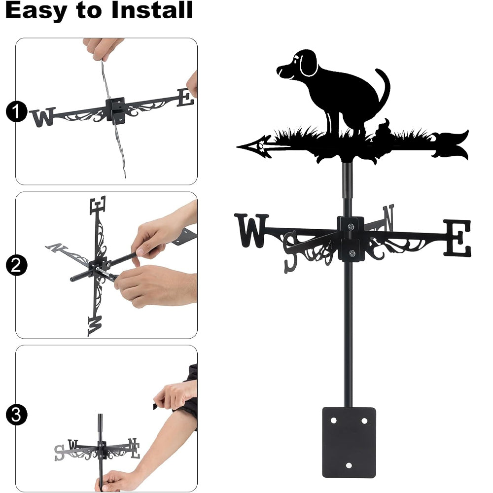 💕Creative design: This Weathervane is made of high-quality Stainless Steel. With stylish straight lines and satin black finishes. This anti-rust iron weather vane is decorated with exquisite patterns.