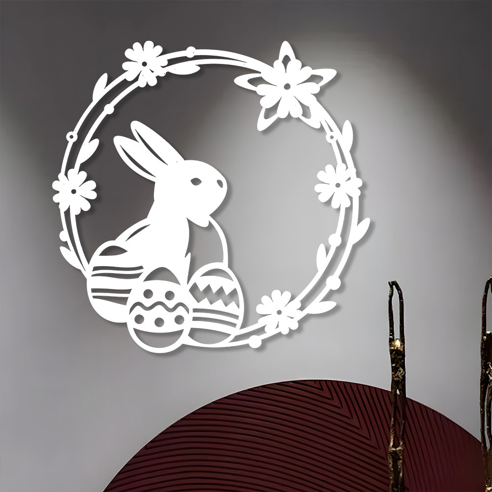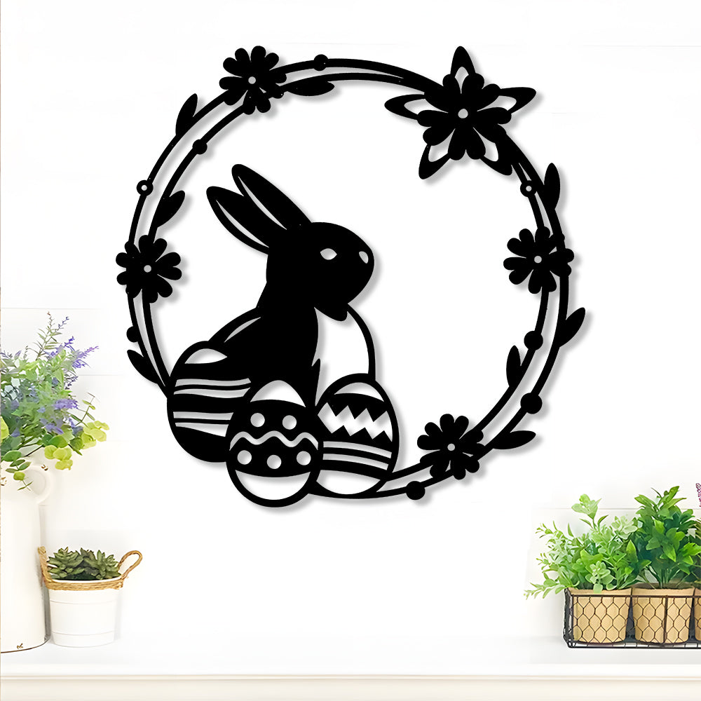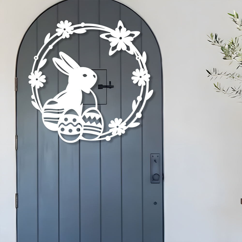 Easter Bunny Wreath Sign Metal Wall Art Decoration