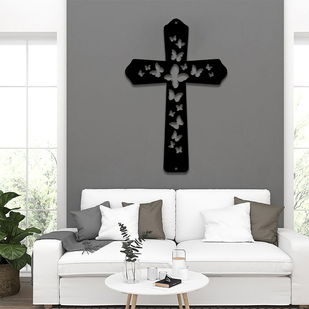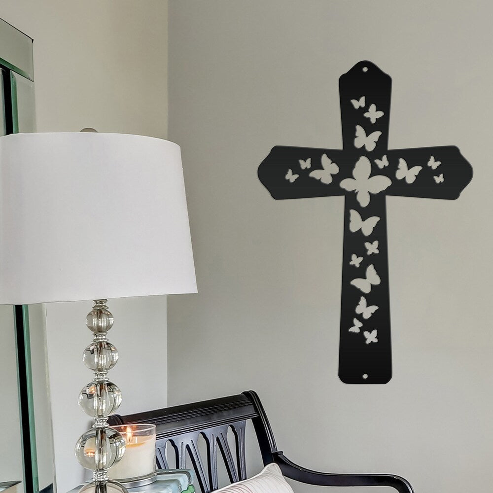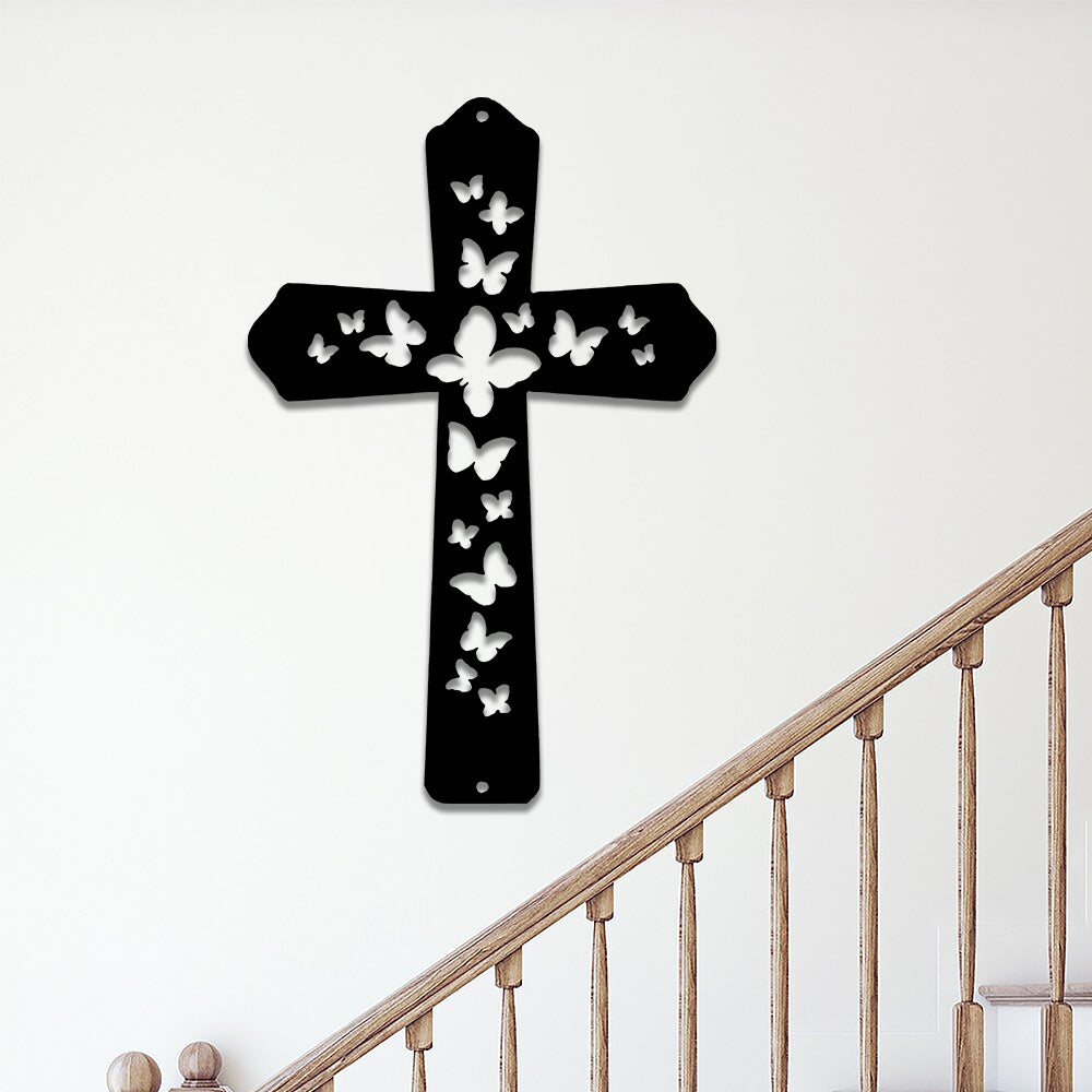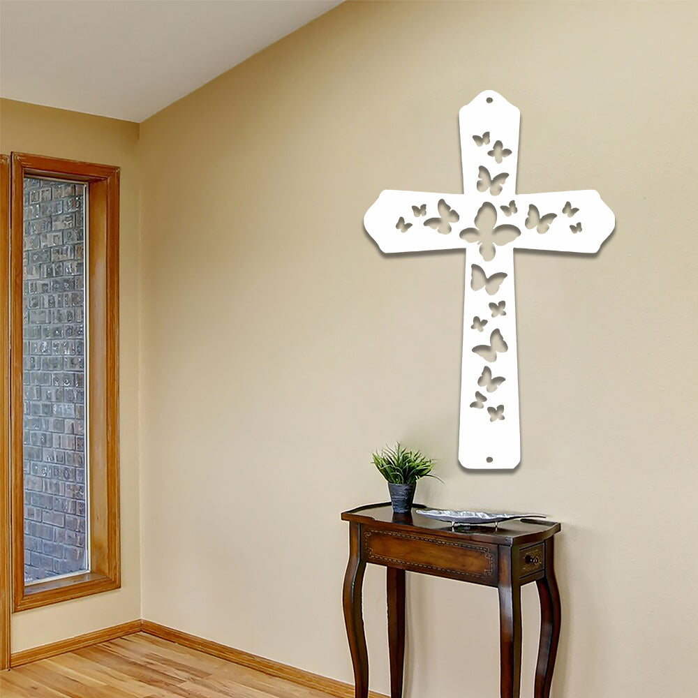 Easter Butterfly Cross Sign Metal Wall Art Decoration