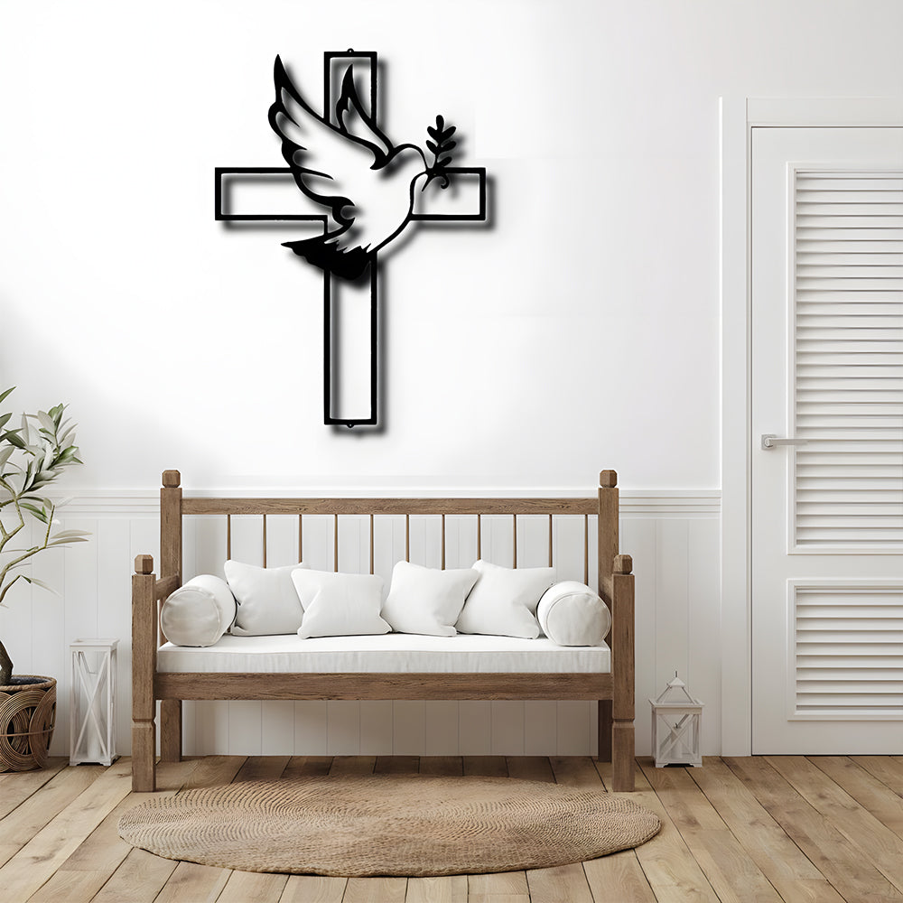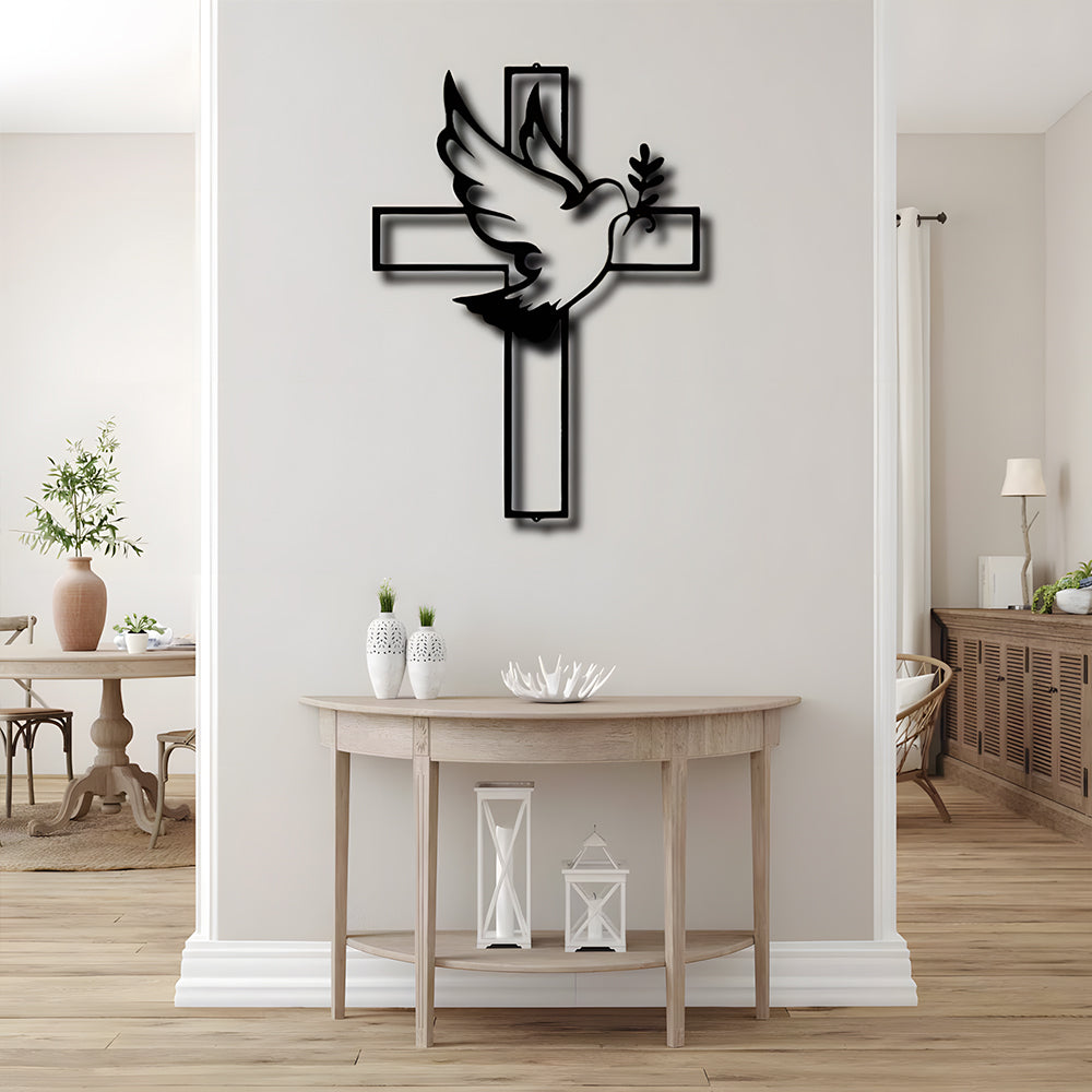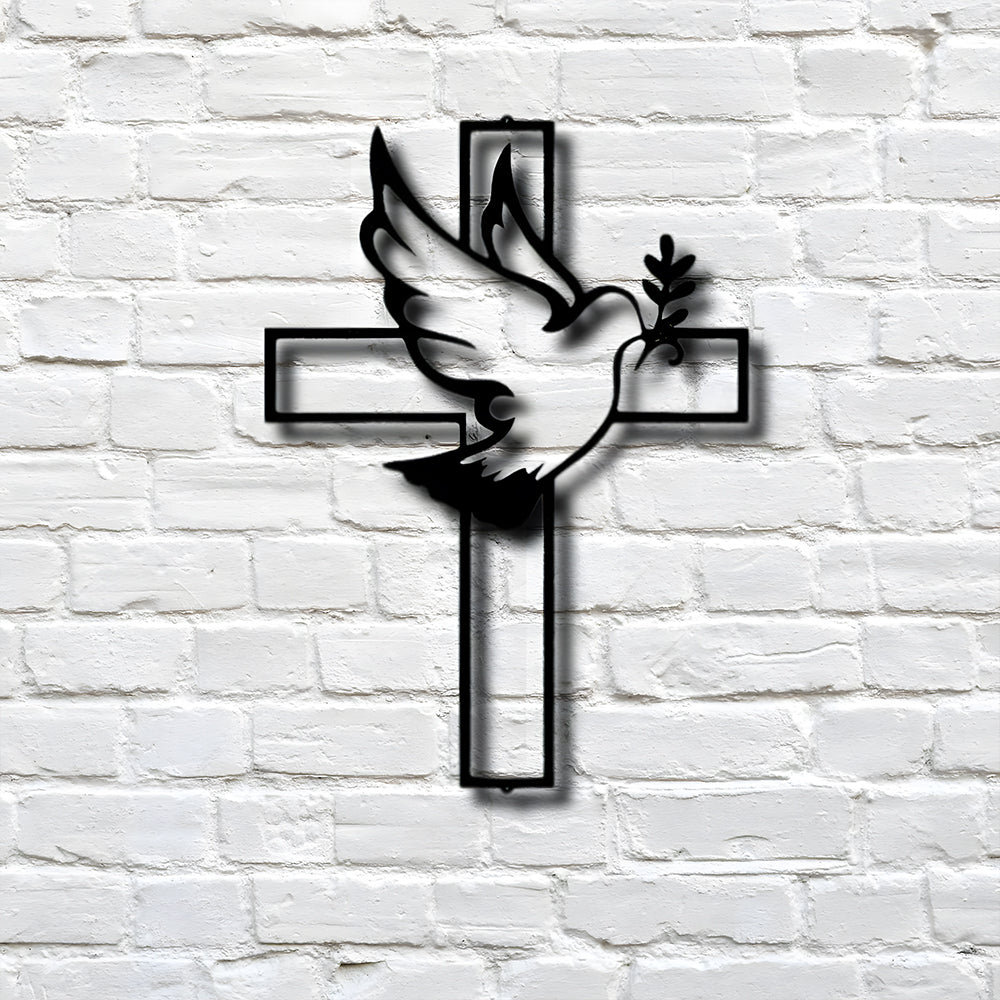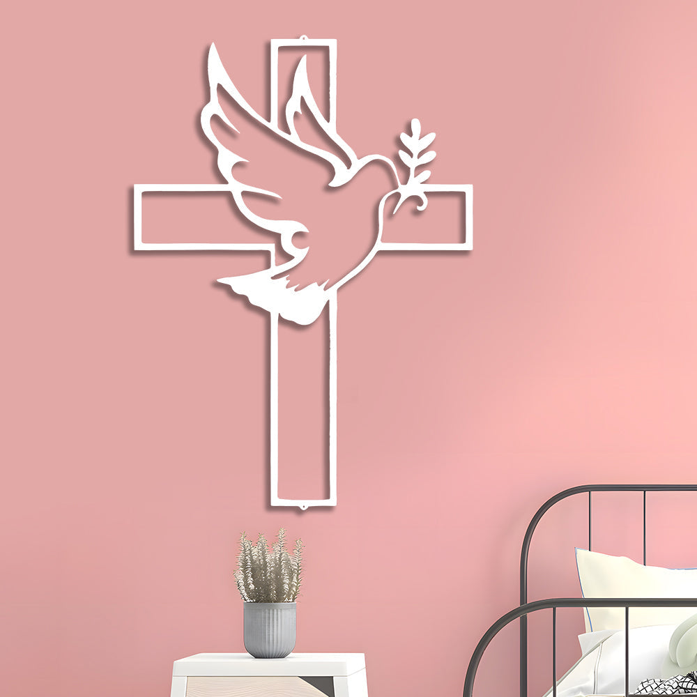Easter Cross Dove Sign Metal Wall Art Decoration