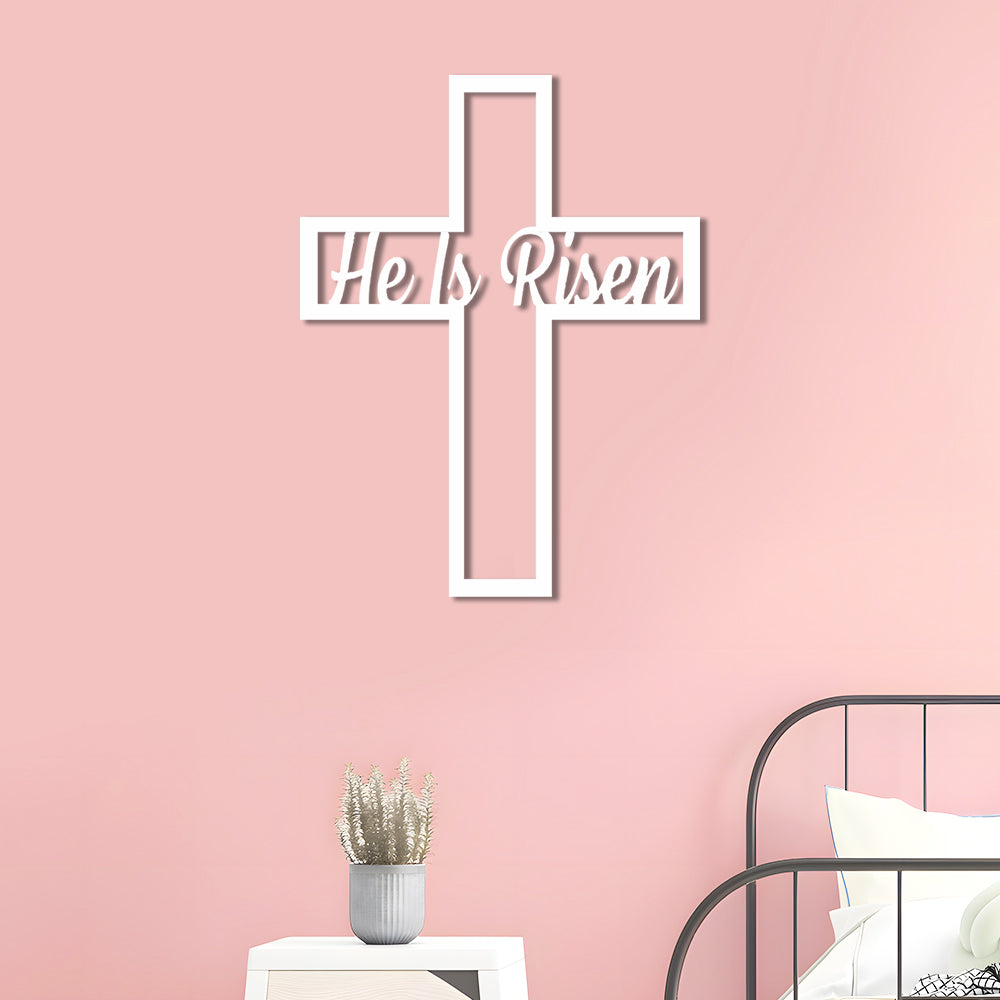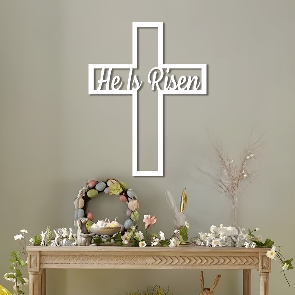Easter He Is Risen Cross Stake Sign Metal Wall Art Decoration