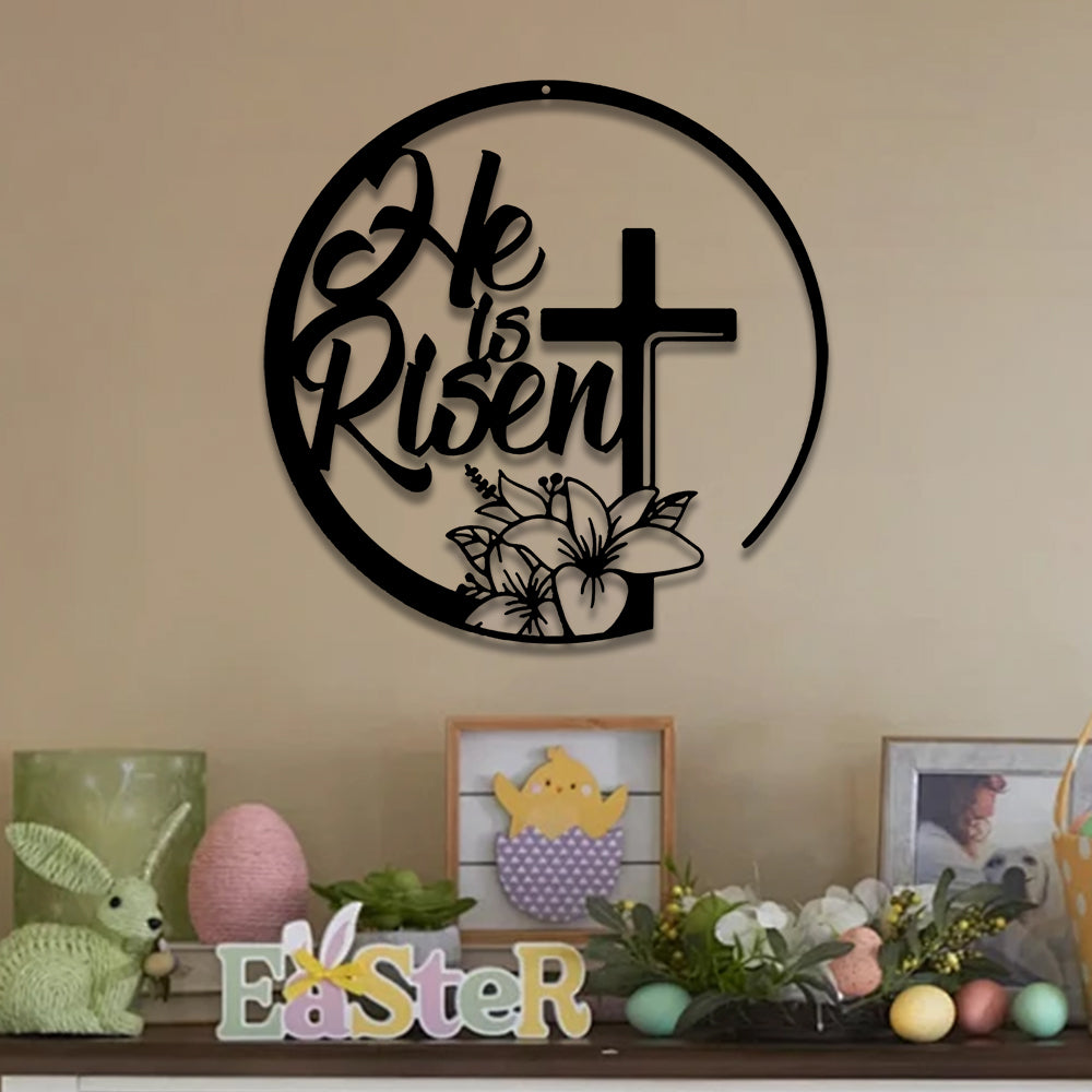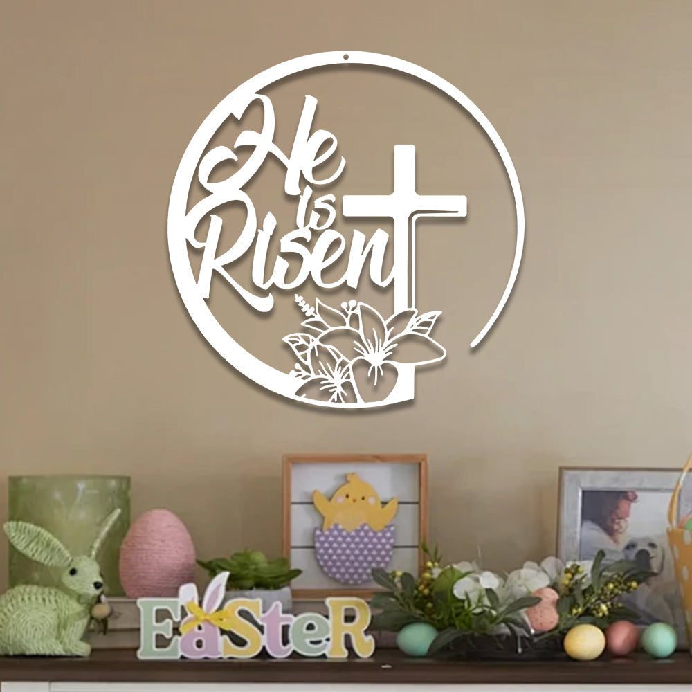 Easter He is Risen Indeed Sign Metal Wall Art Decoration