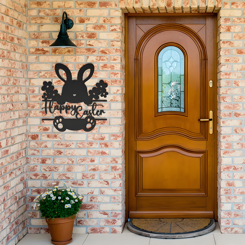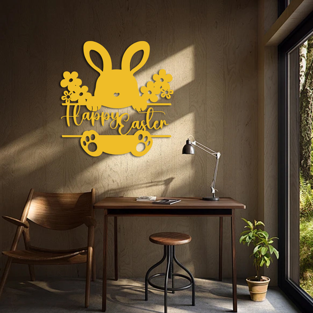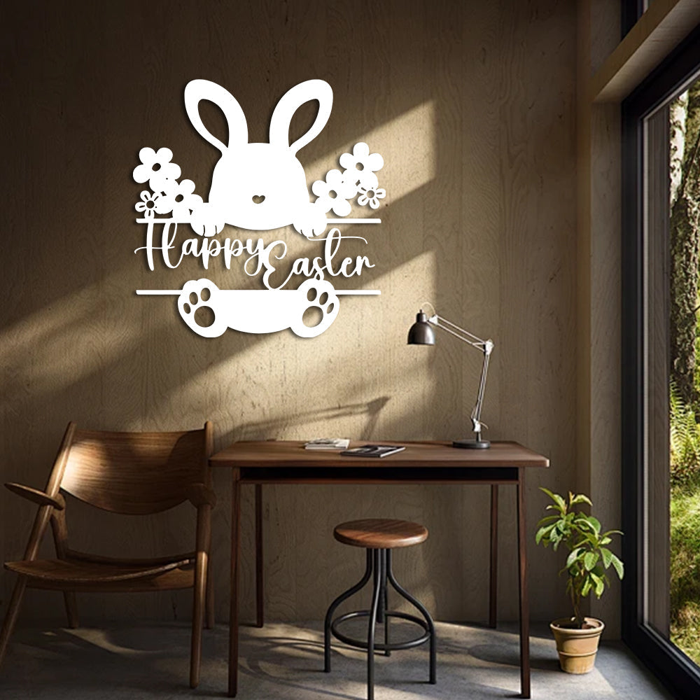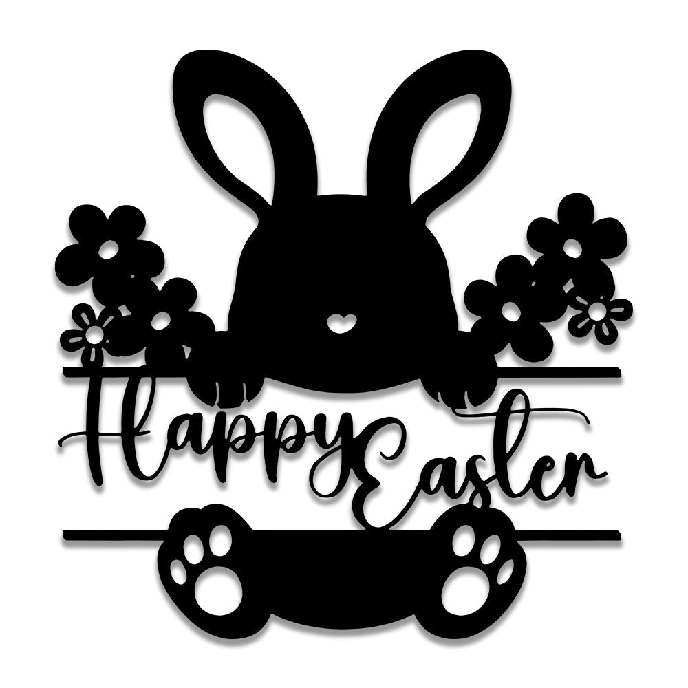Happy Easter Rabbit Sign Metal Wall Art Decoration