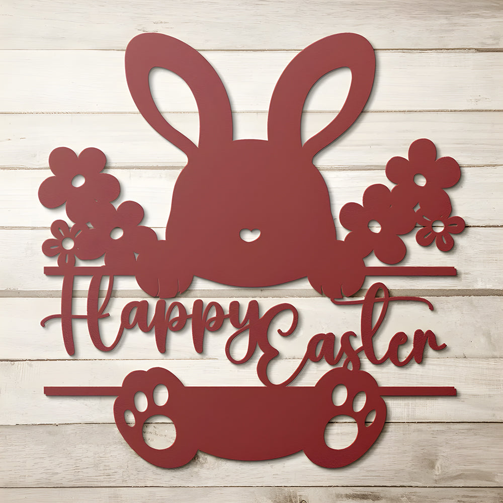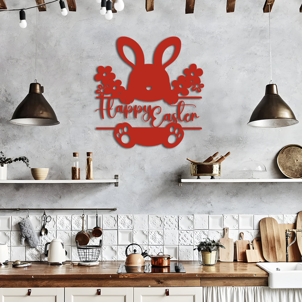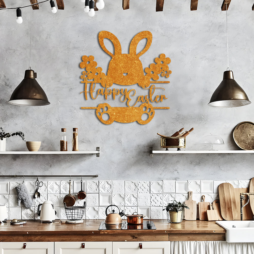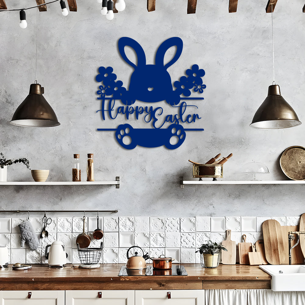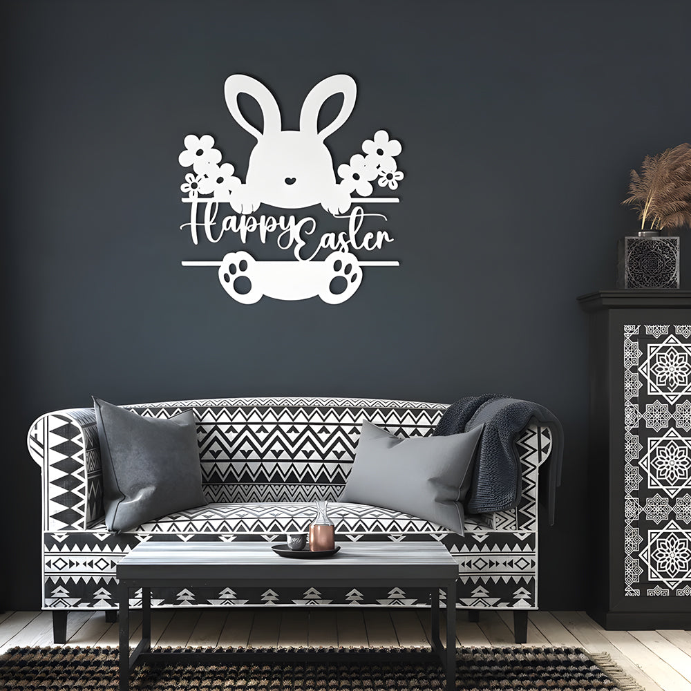 Happy Easter Rabbit Sign Metal Wall Art Decoration