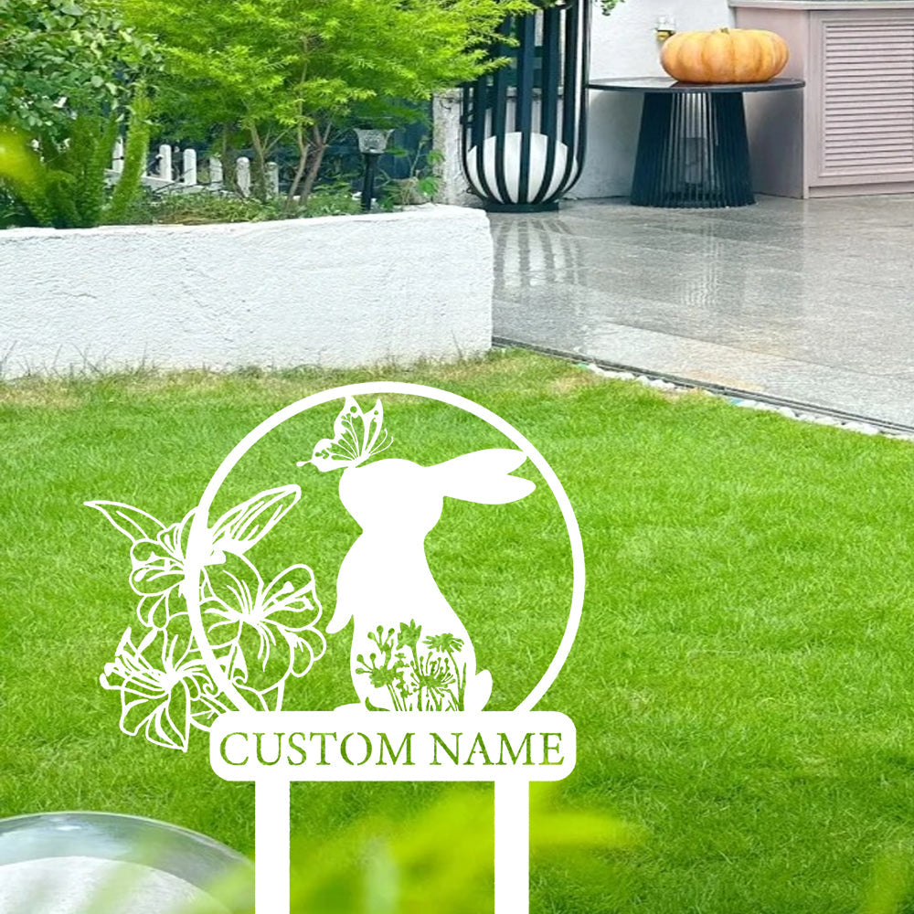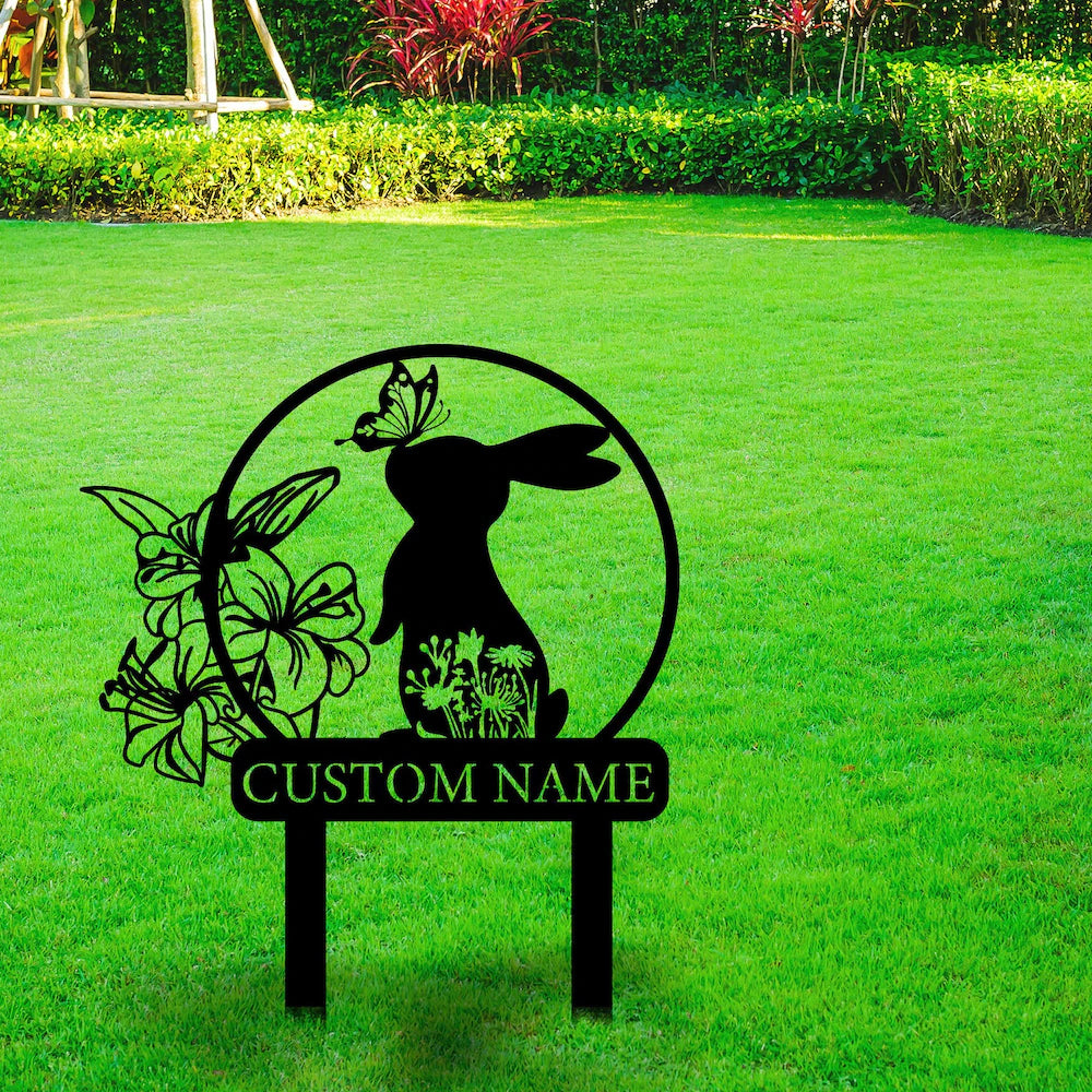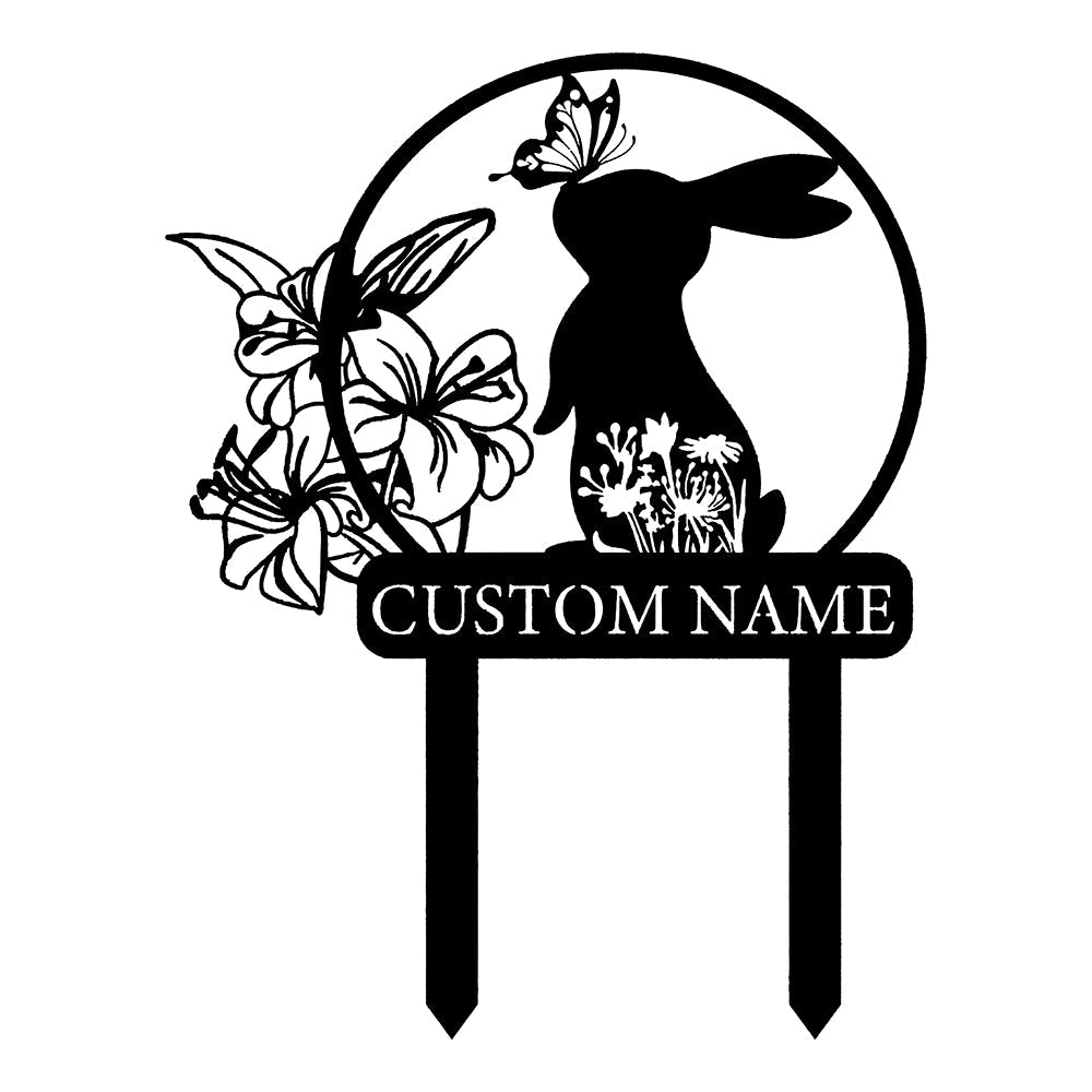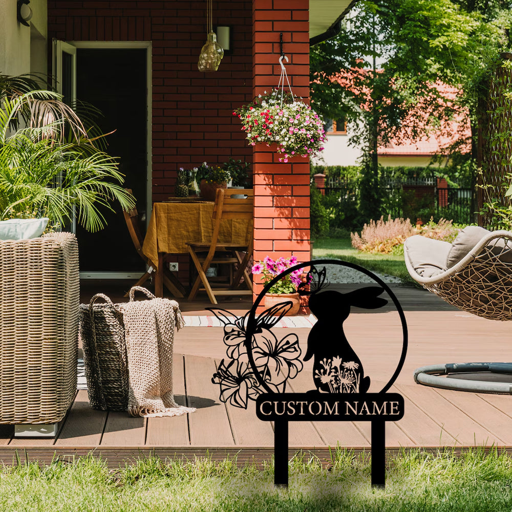 Custom Name Easter Rabbit and Flower Metal Sign Outdoor Yard Decoration