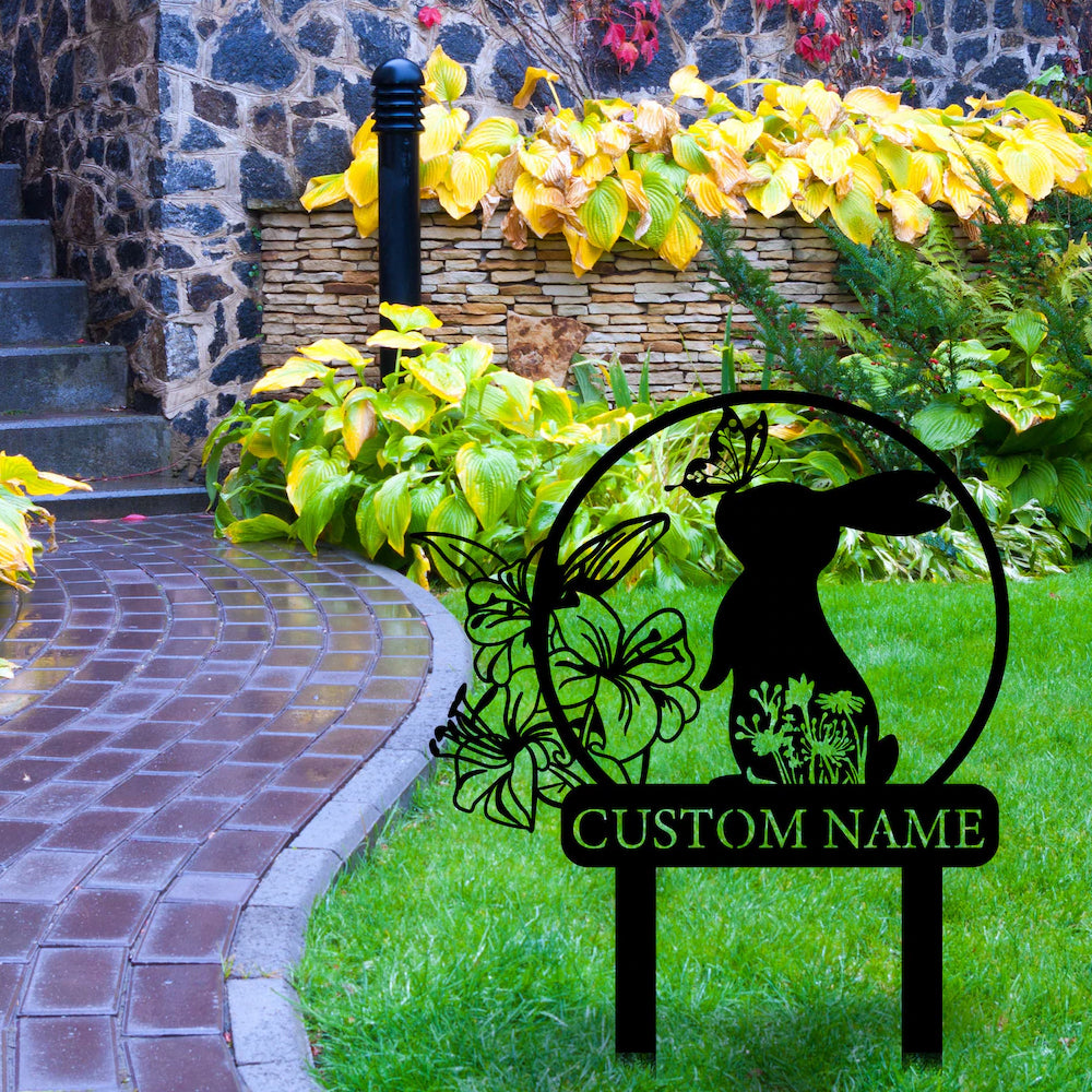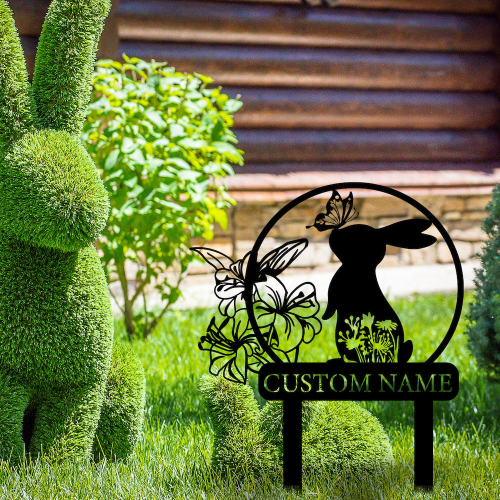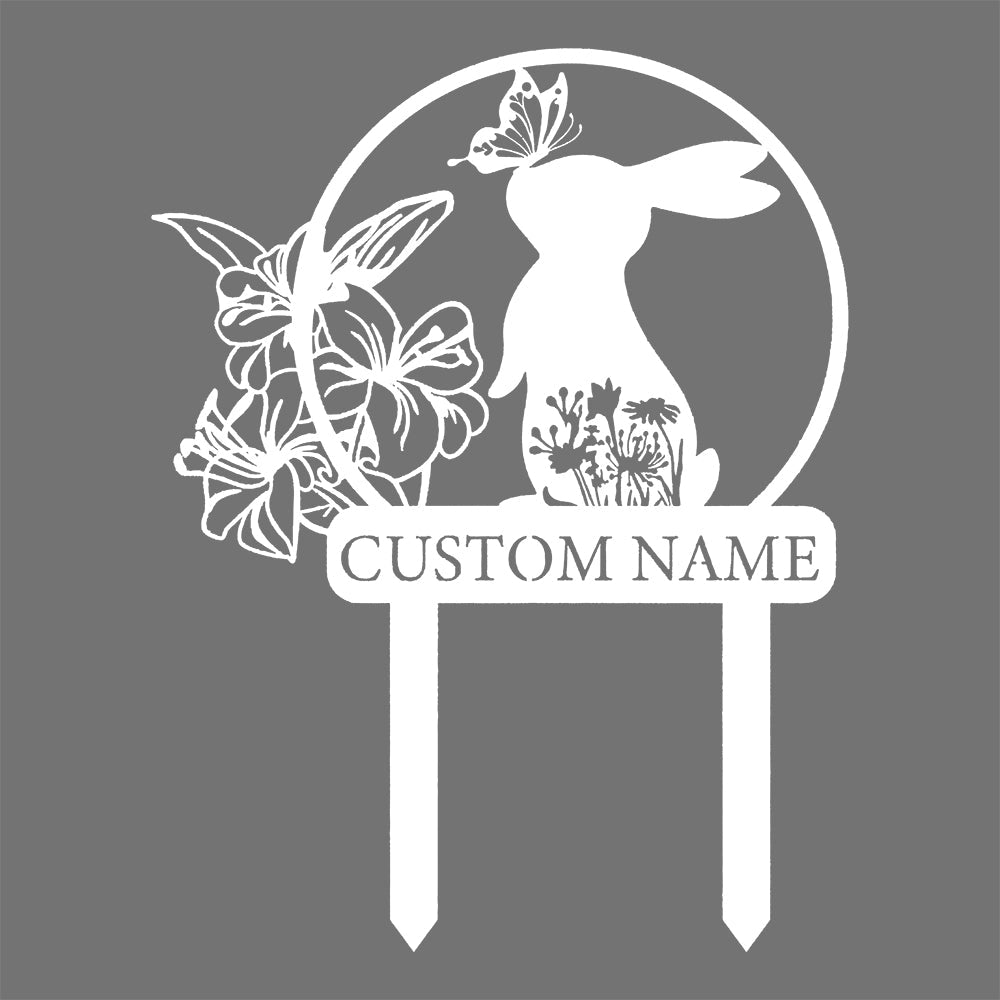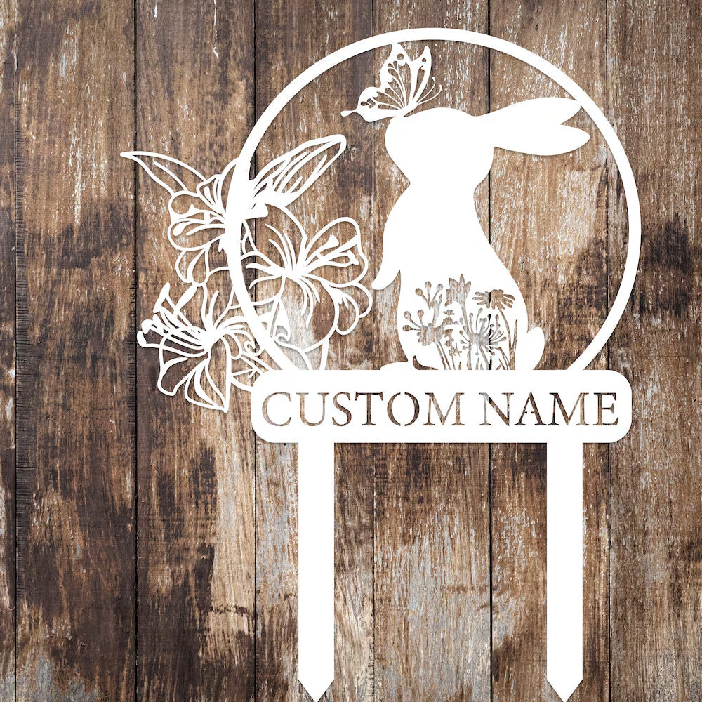 Custom Name Easter Rabbit and Flower Metal Sign Outdoor Yard Decoration