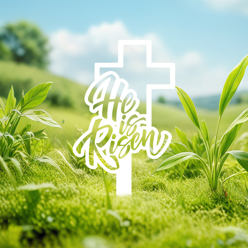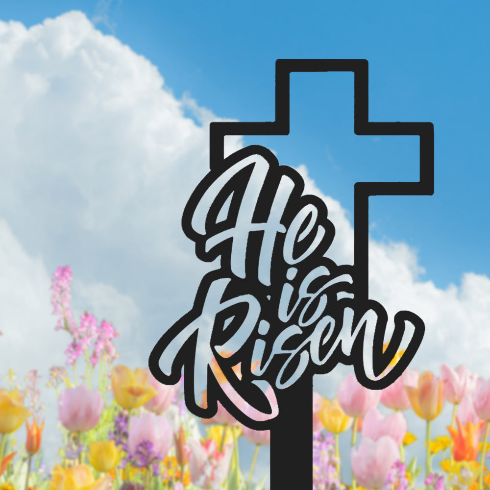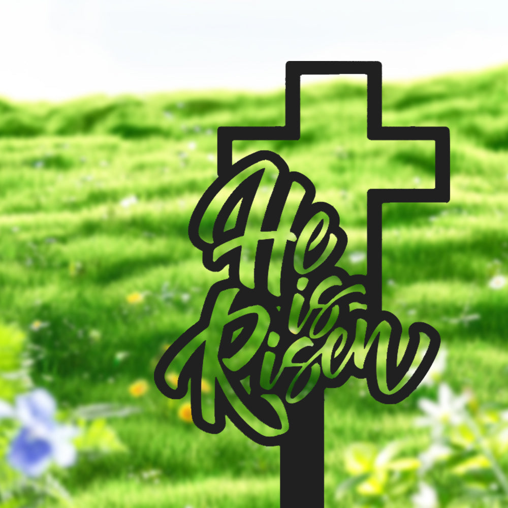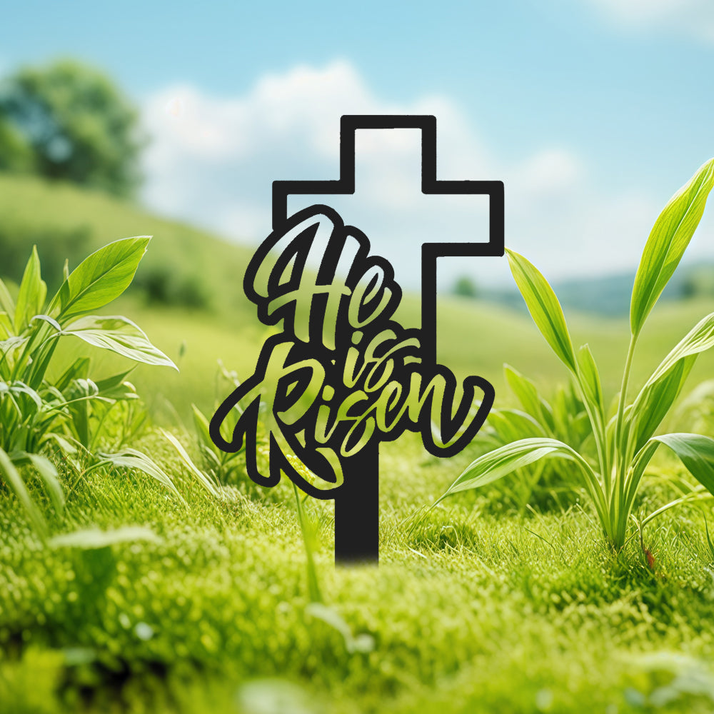 Easter He is Risen Cross Metal Sign Outdoor Yard Decoration