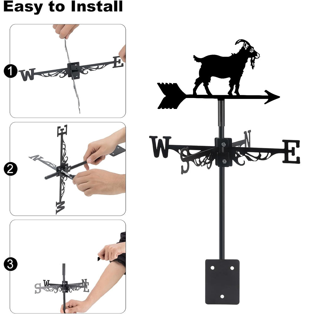 💕Creative design: This Weathervane is made of high-quality Stainless Steel. With stylish straight lines and satin black finishes. This anti-rust iron weather vane is decorated with exquisite patterns.