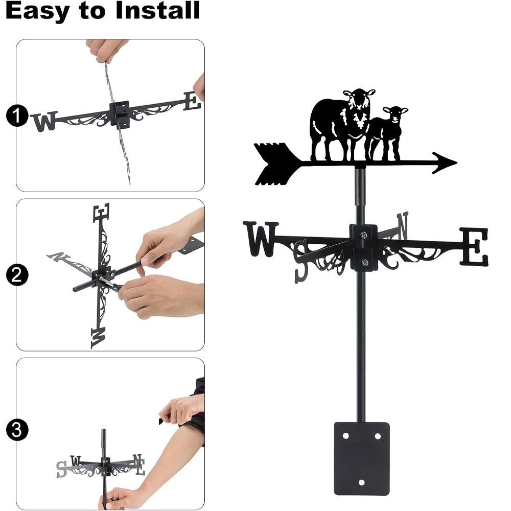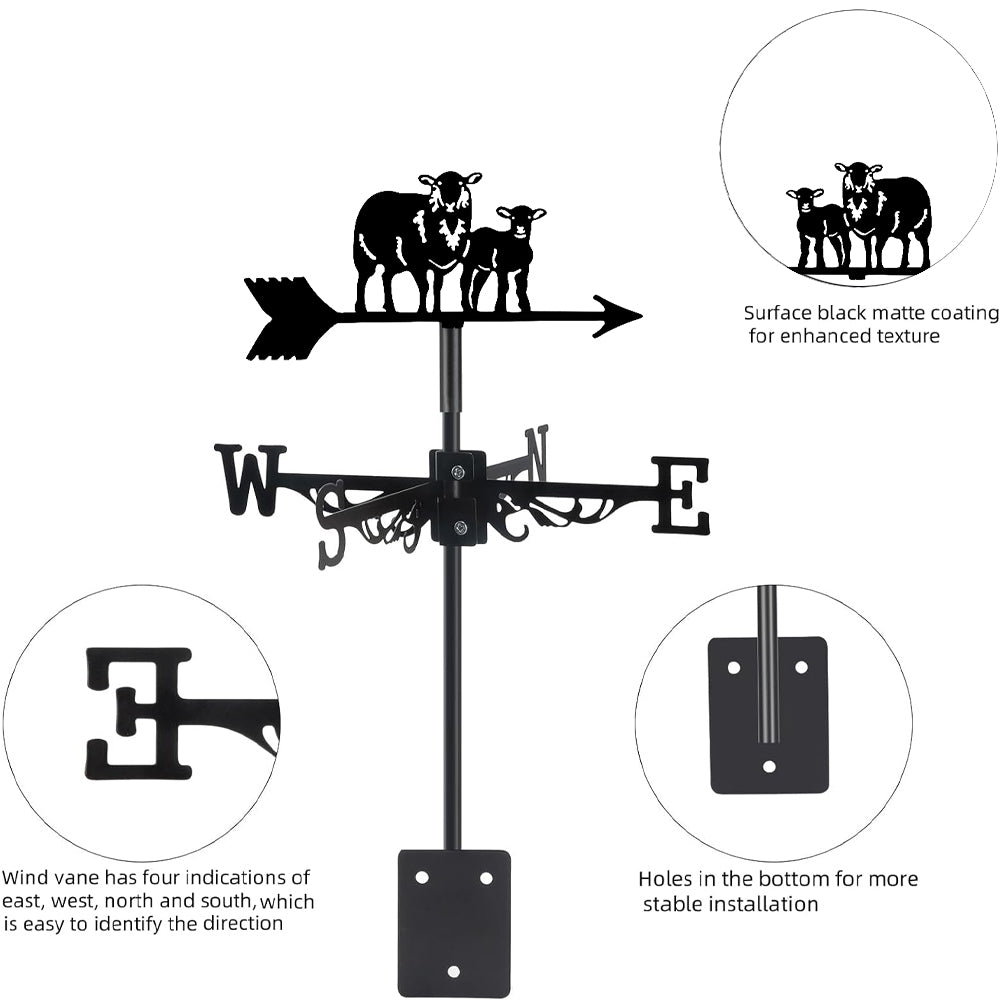 💕Creative design: This Weathervane is made of high-quality Stainless Steel. With stylish straight lines and satin black finishes. This anti-rust iron weather vane is decorated with exquisite patterns.