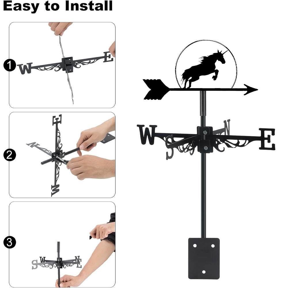 💕Creative design: This Weathervane is made of high-quality Stainless Steel. With stylish straight lines and satin black finishes. This anti-rust iron weather vane is decorated with exquisite patterns.