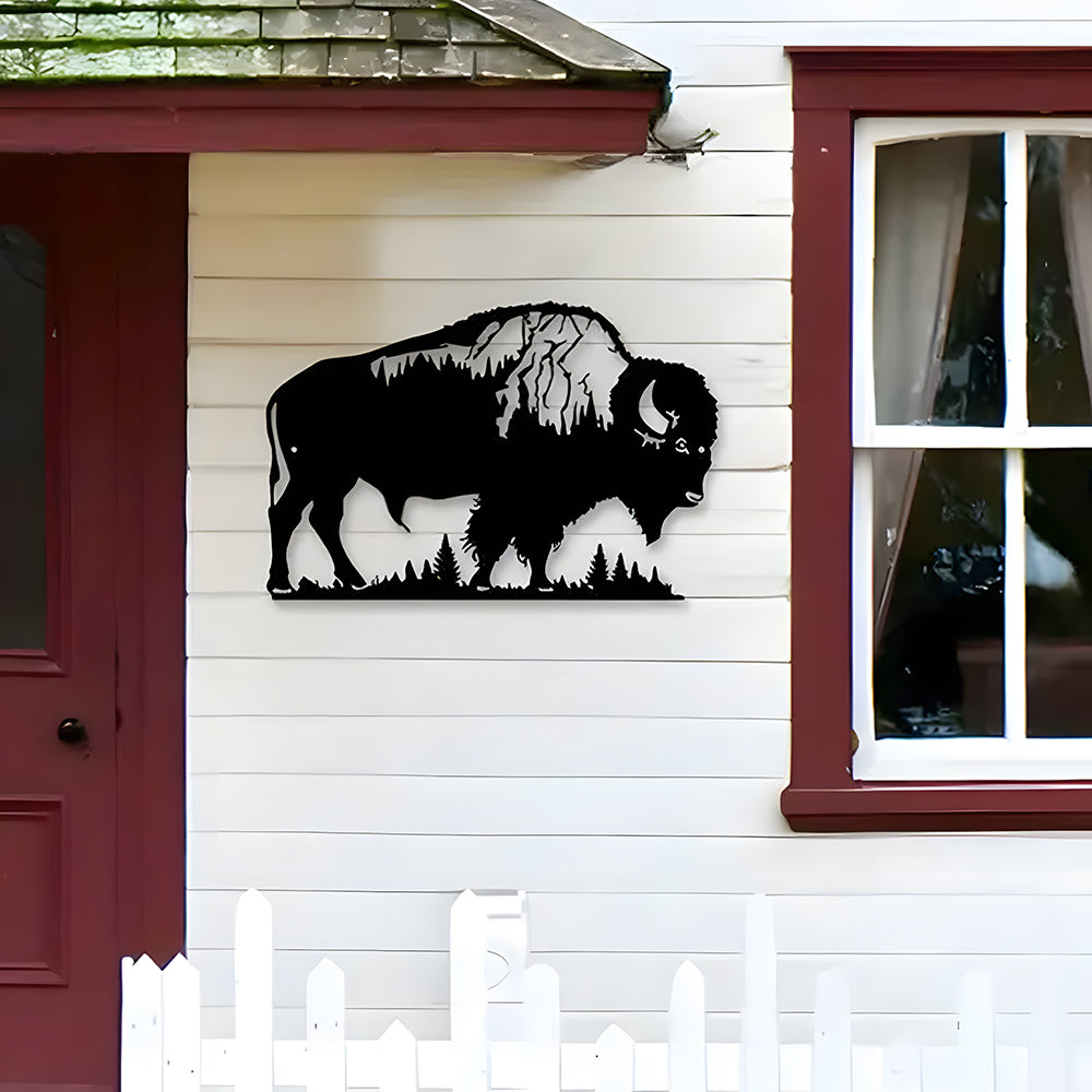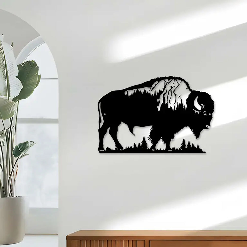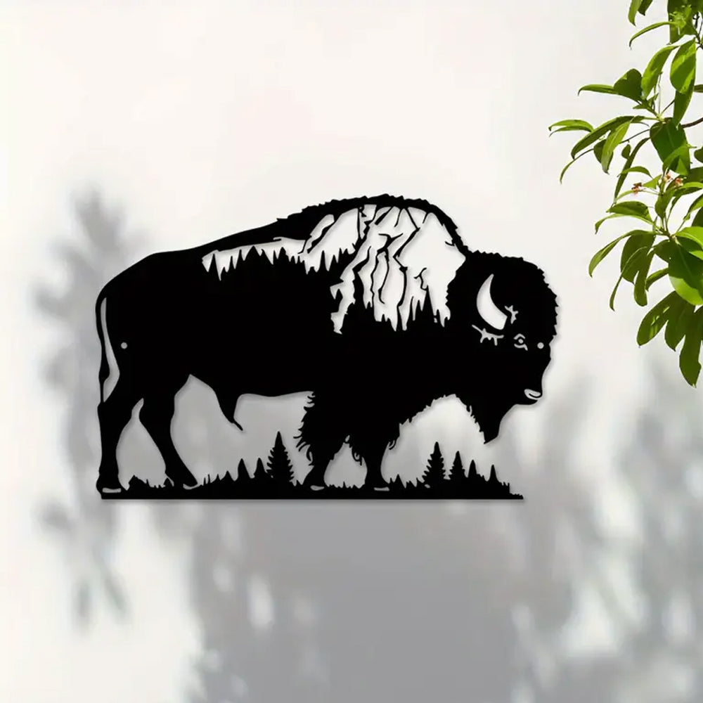Buffalo & Trees Sign Metal Wall Art Decoration