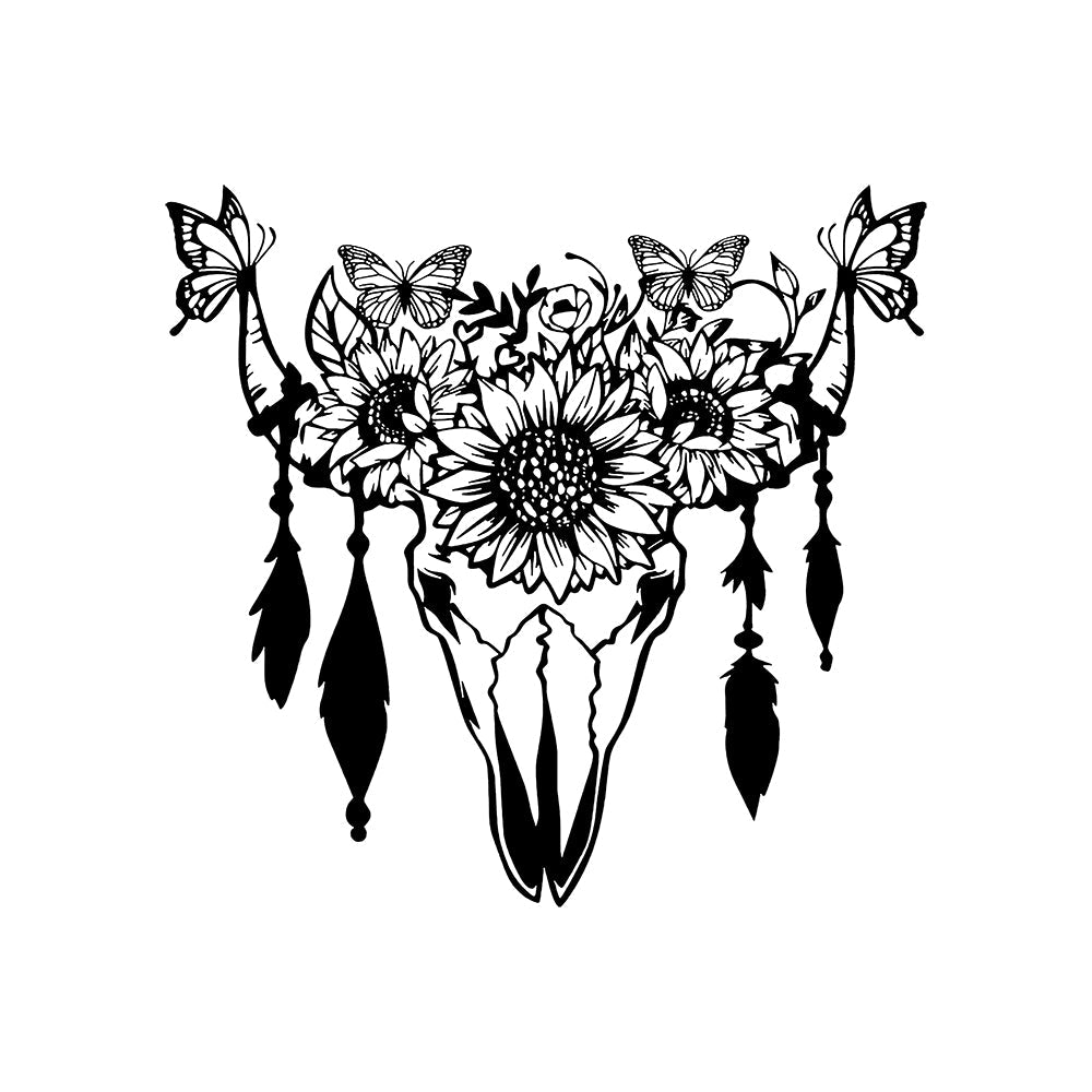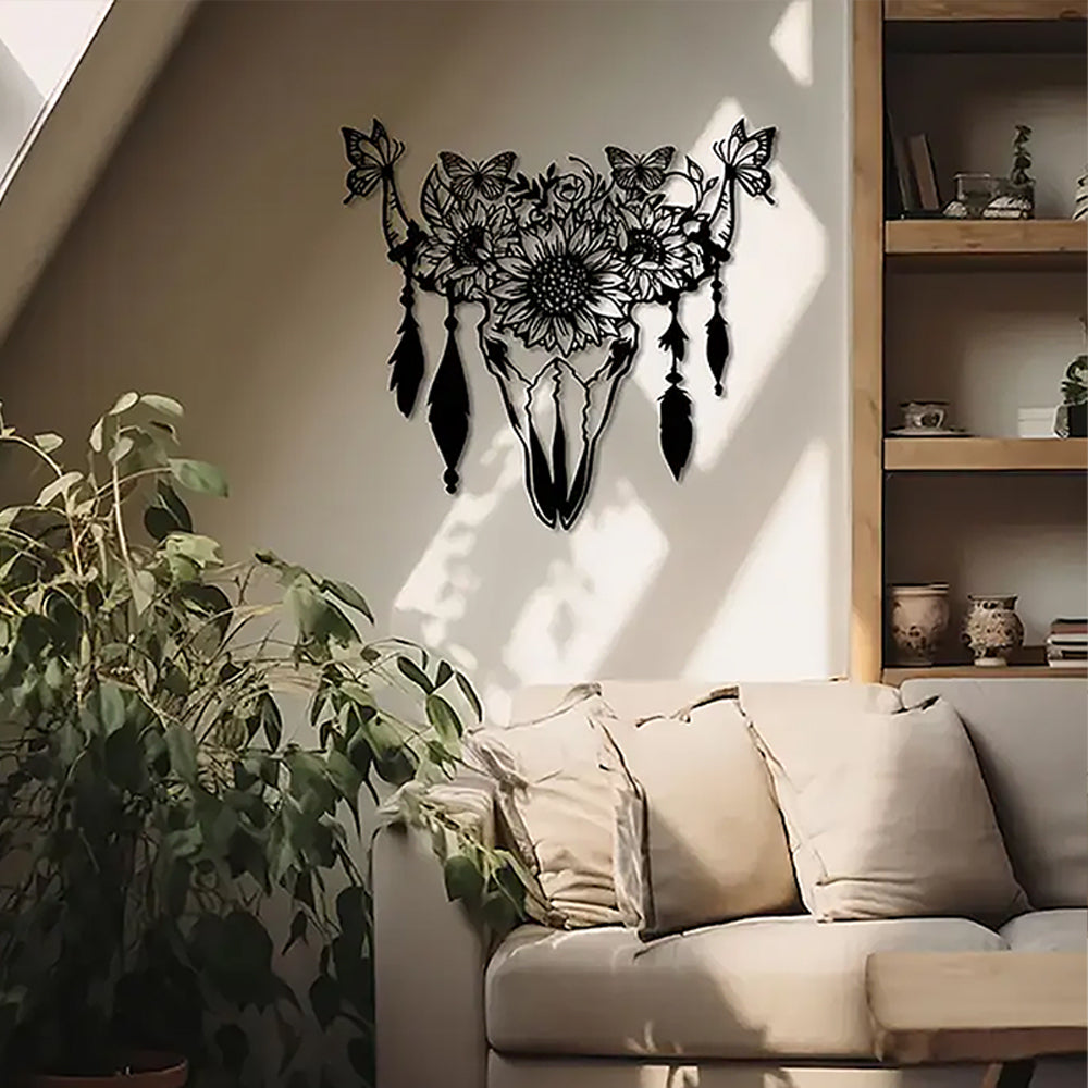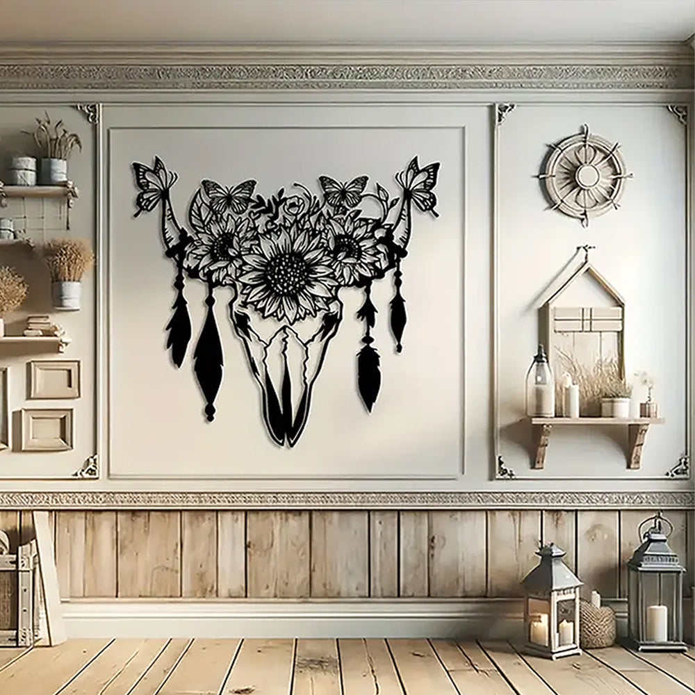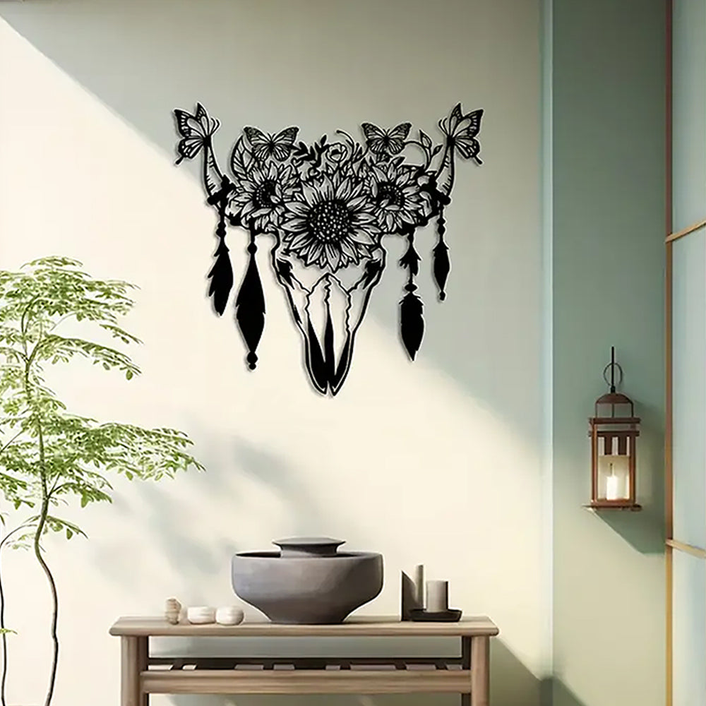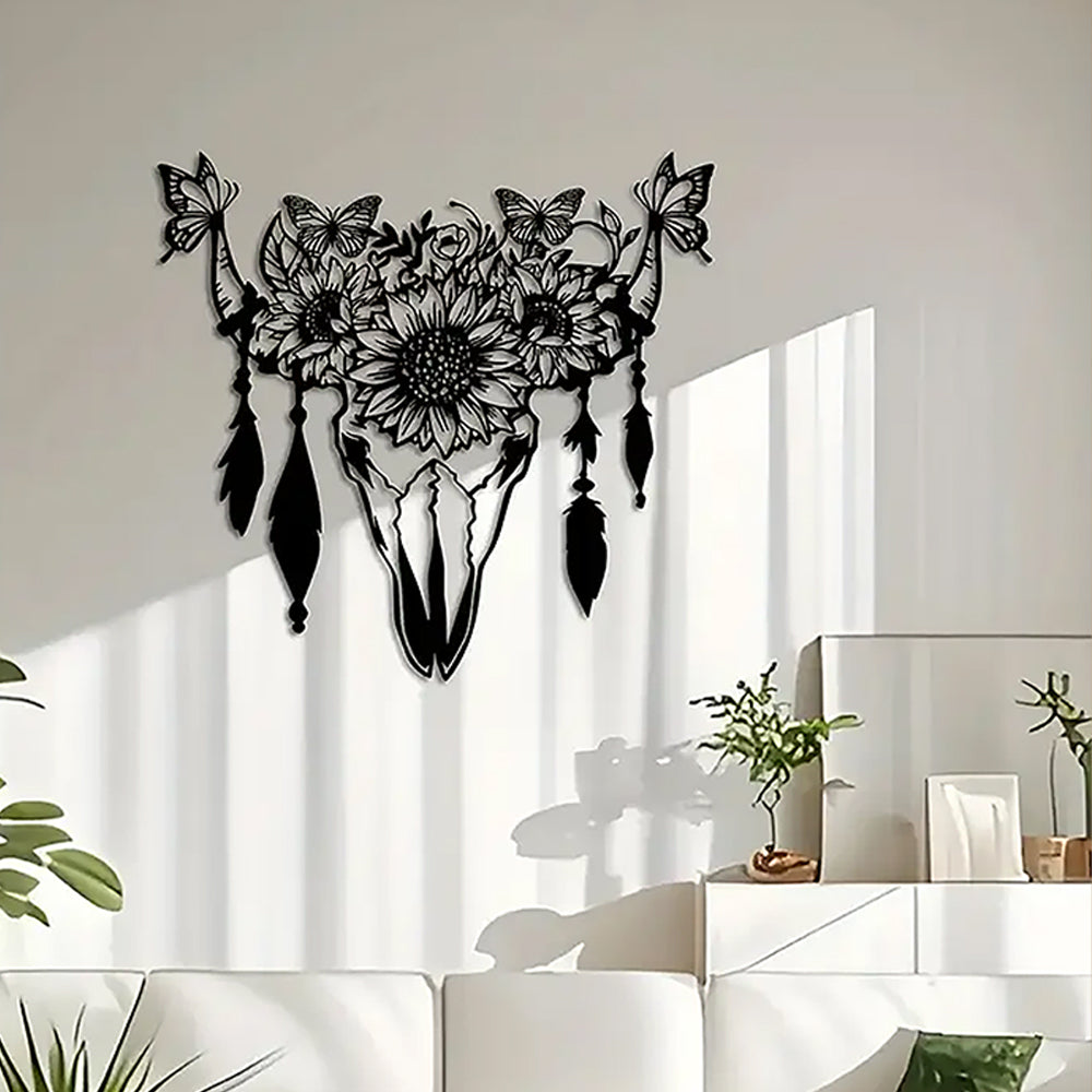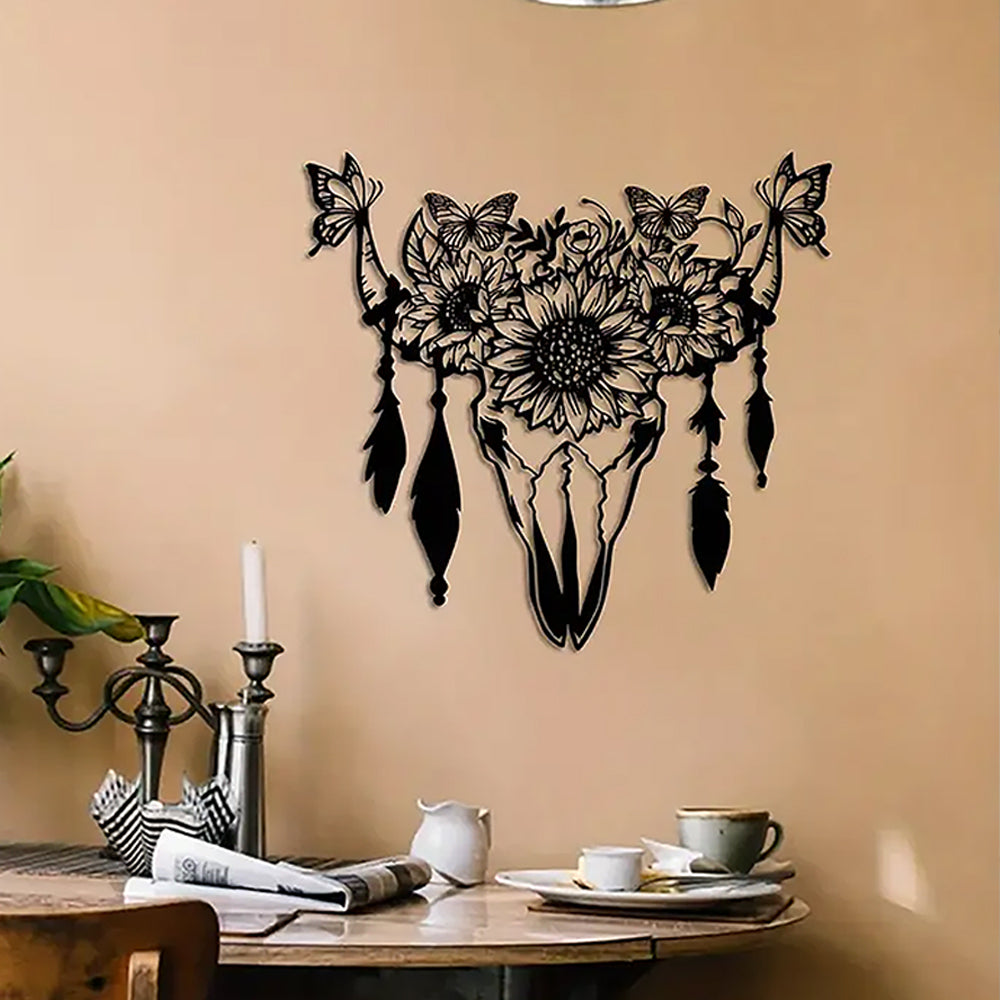 Butterfly, Sunflower & Cow Skull Sign Metal Wall Art Decoration