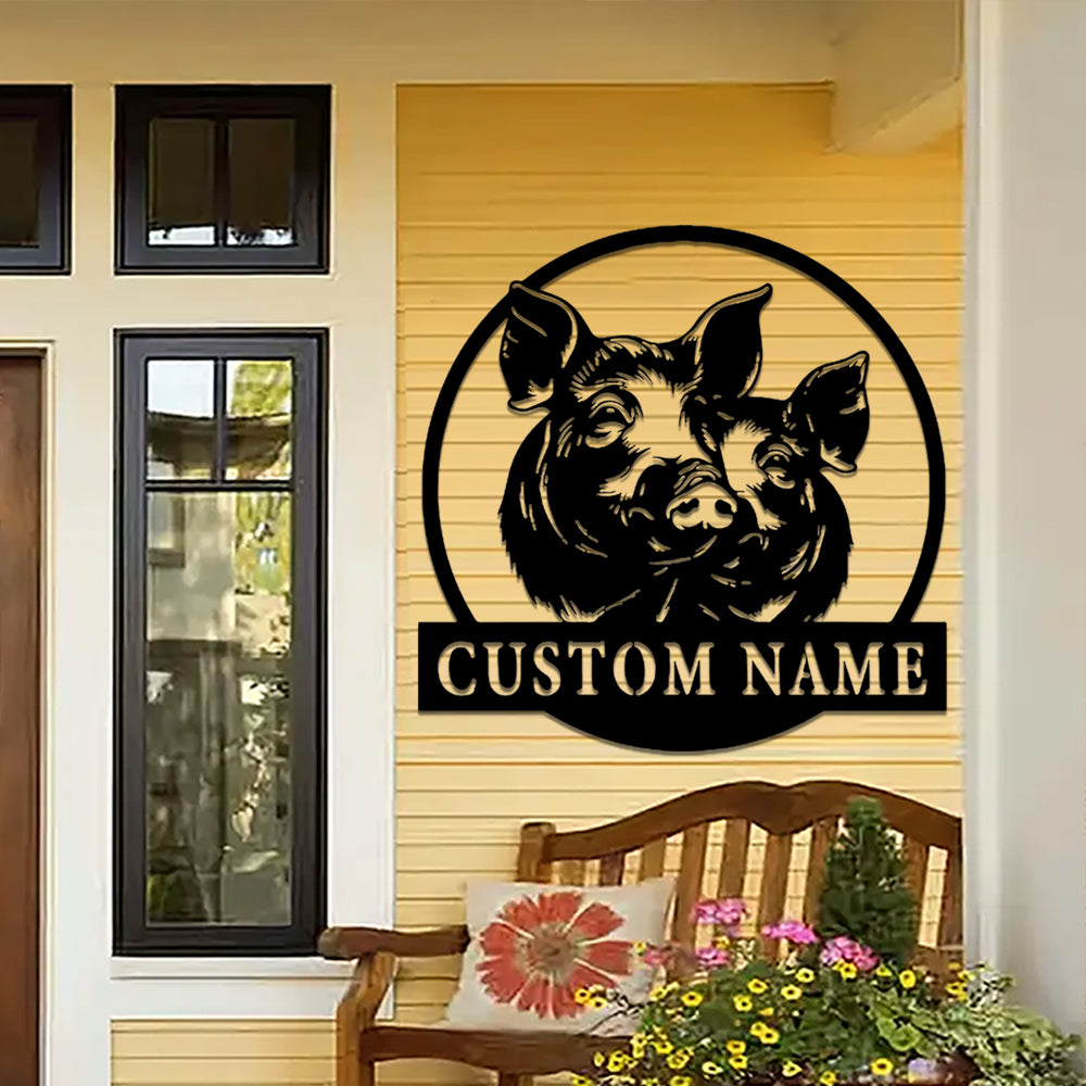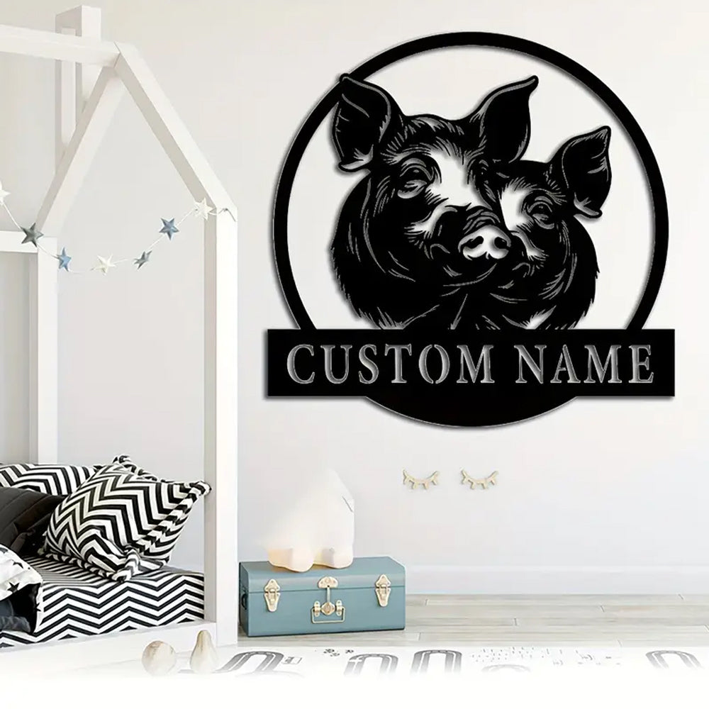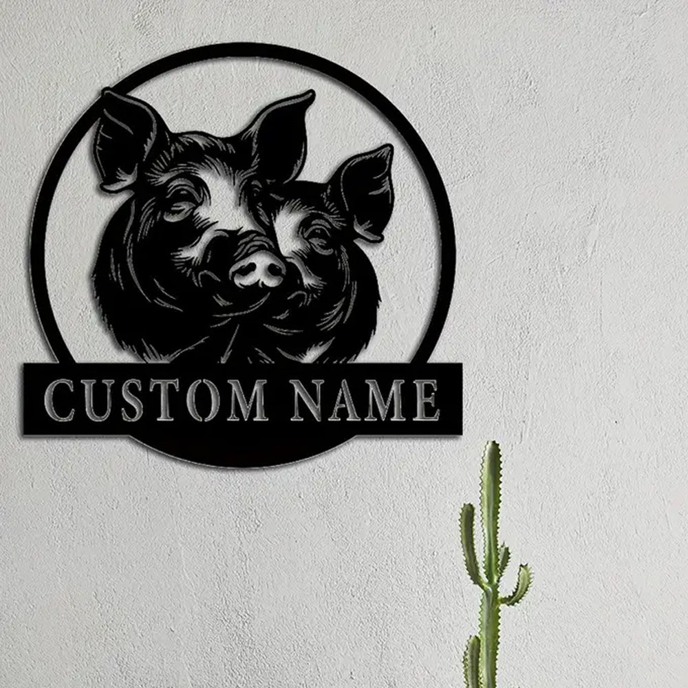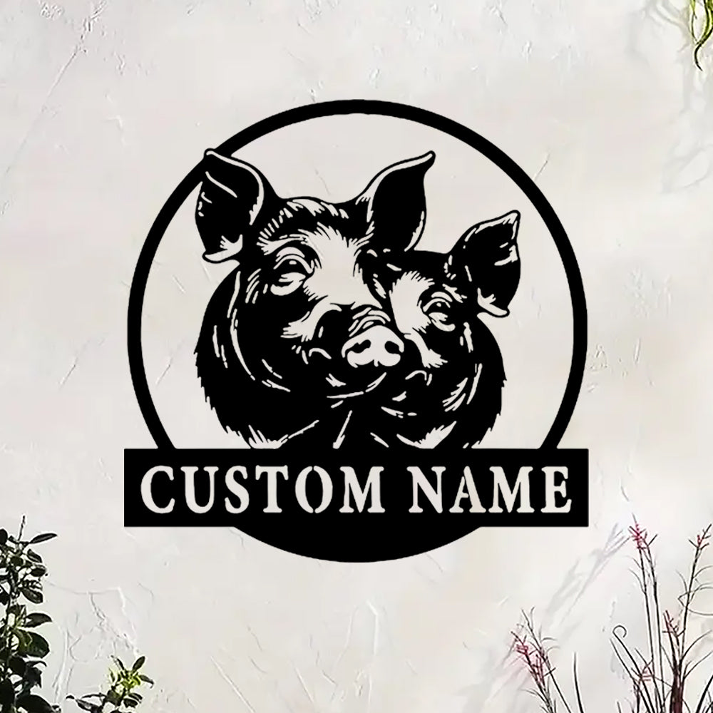 Customizable Rustic Pig Silhouette Sign Metal Wall Art Decoration