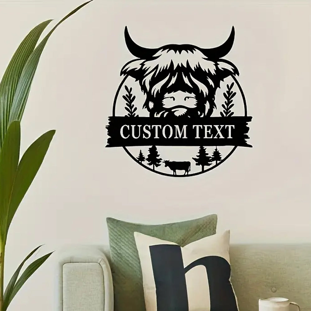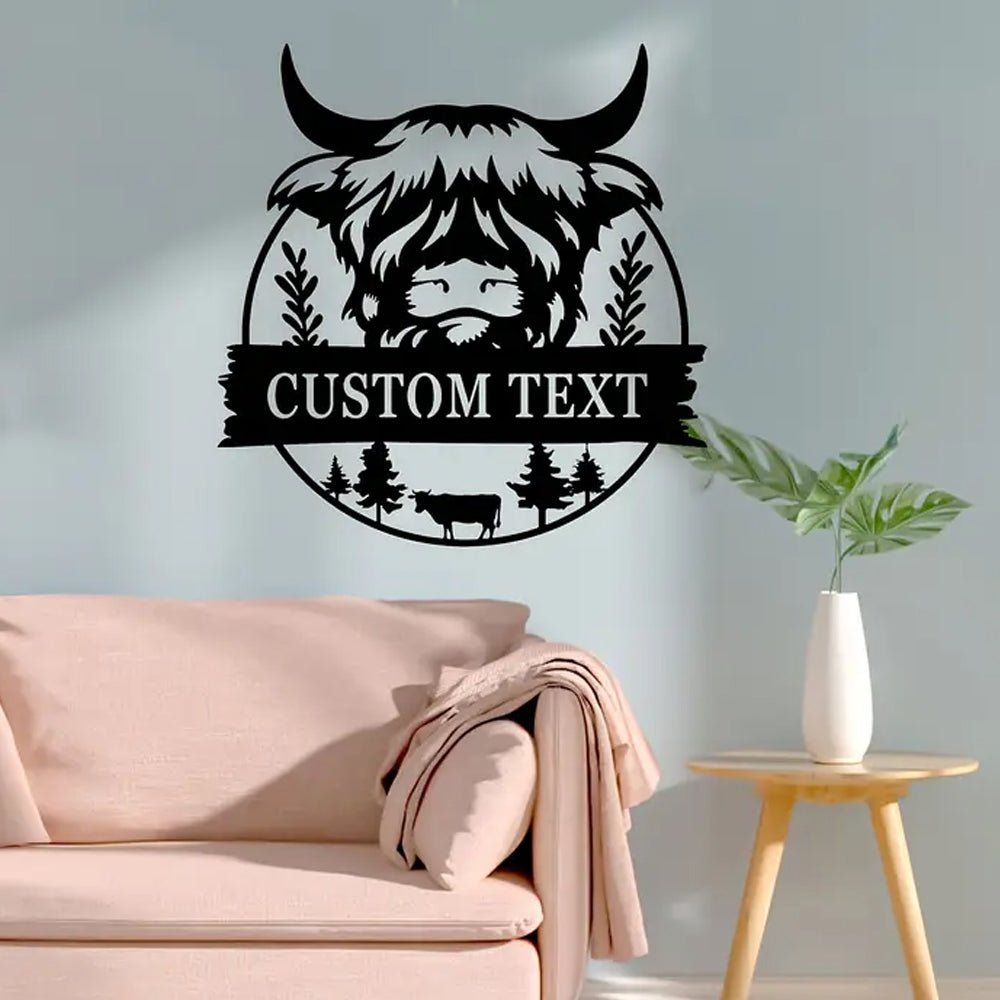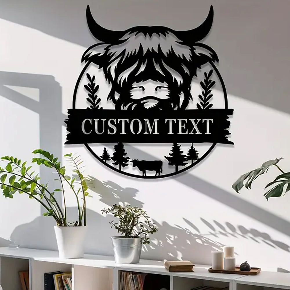Customized Personalized Scottish Highland Cow Metal Wall Art Decoration