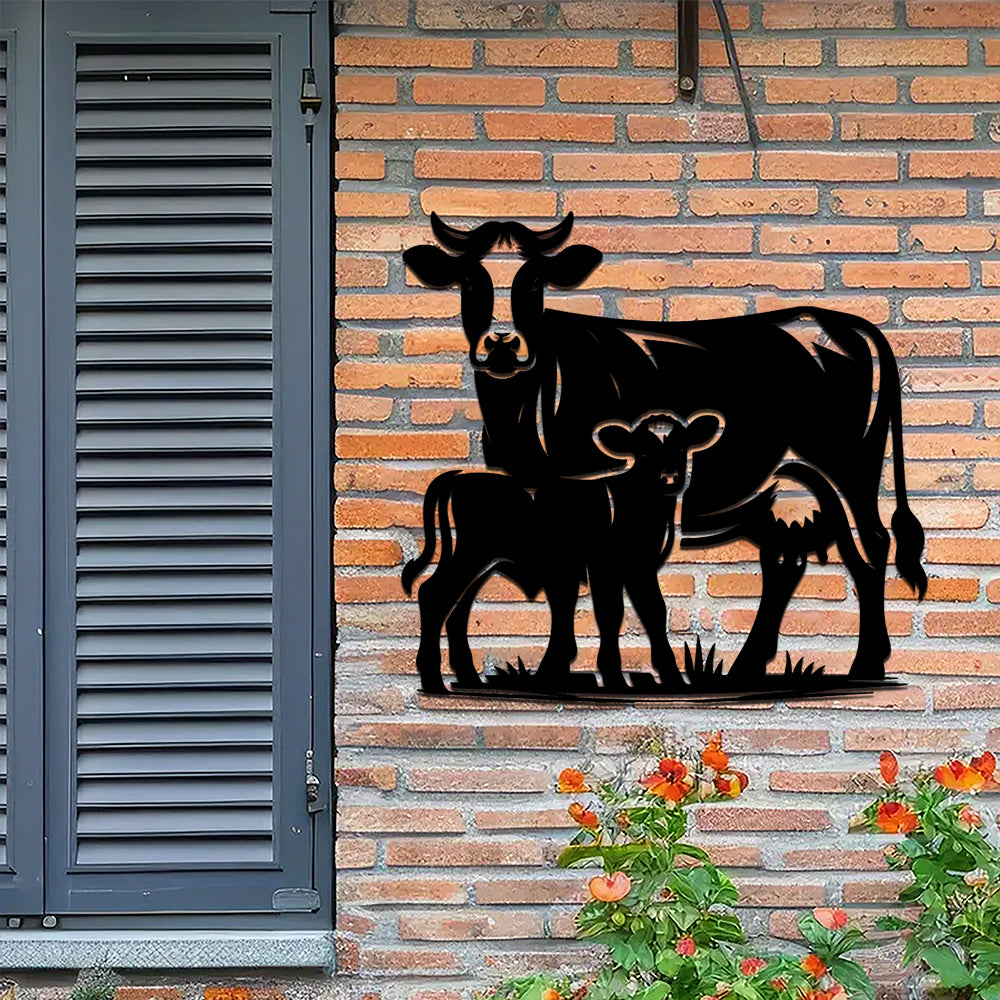 Farmhouse Large Cow and Calf Silhouette Sign Metal Wall Art Decoration