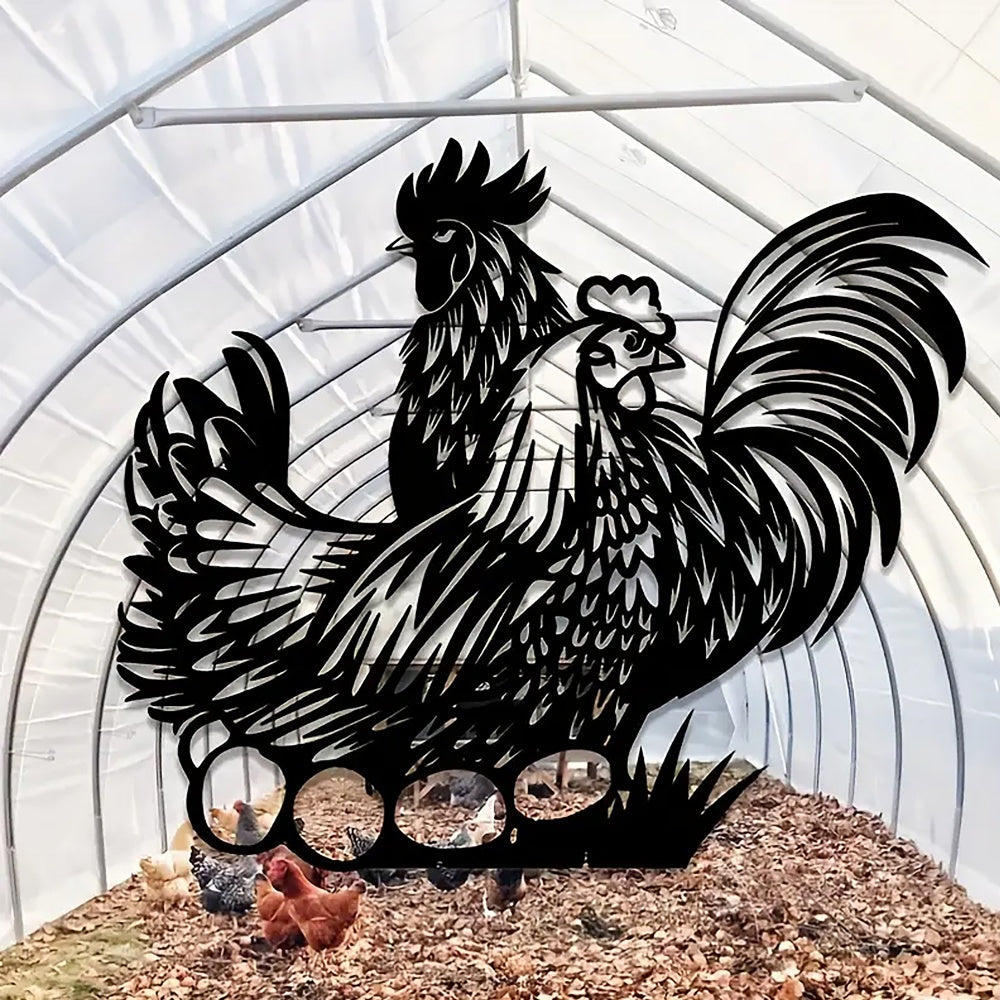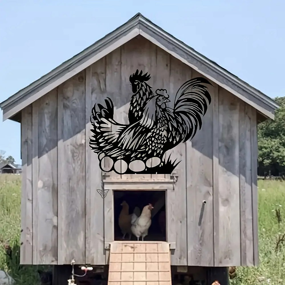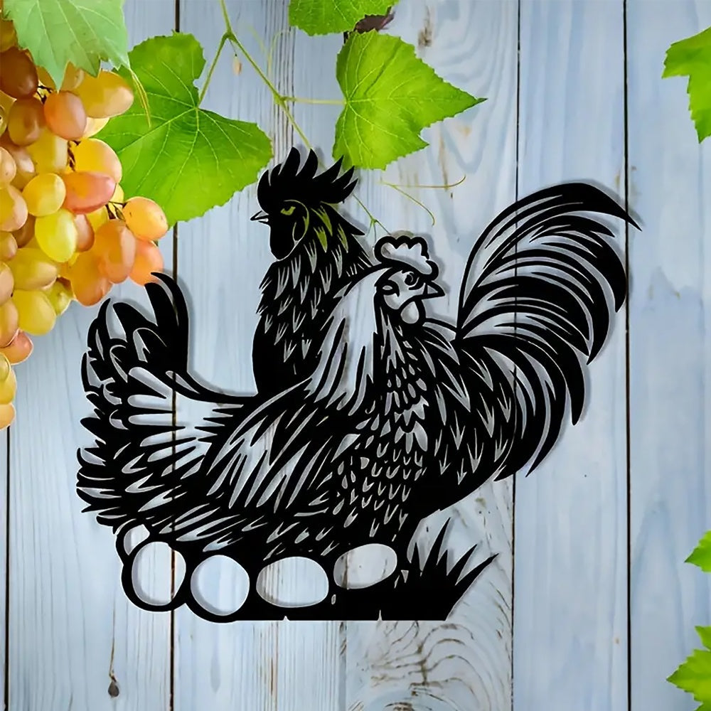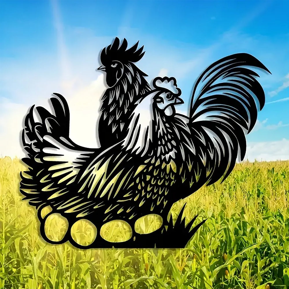 Farmhouse Rooster & Hen Sign Metal Wall Art Decoration