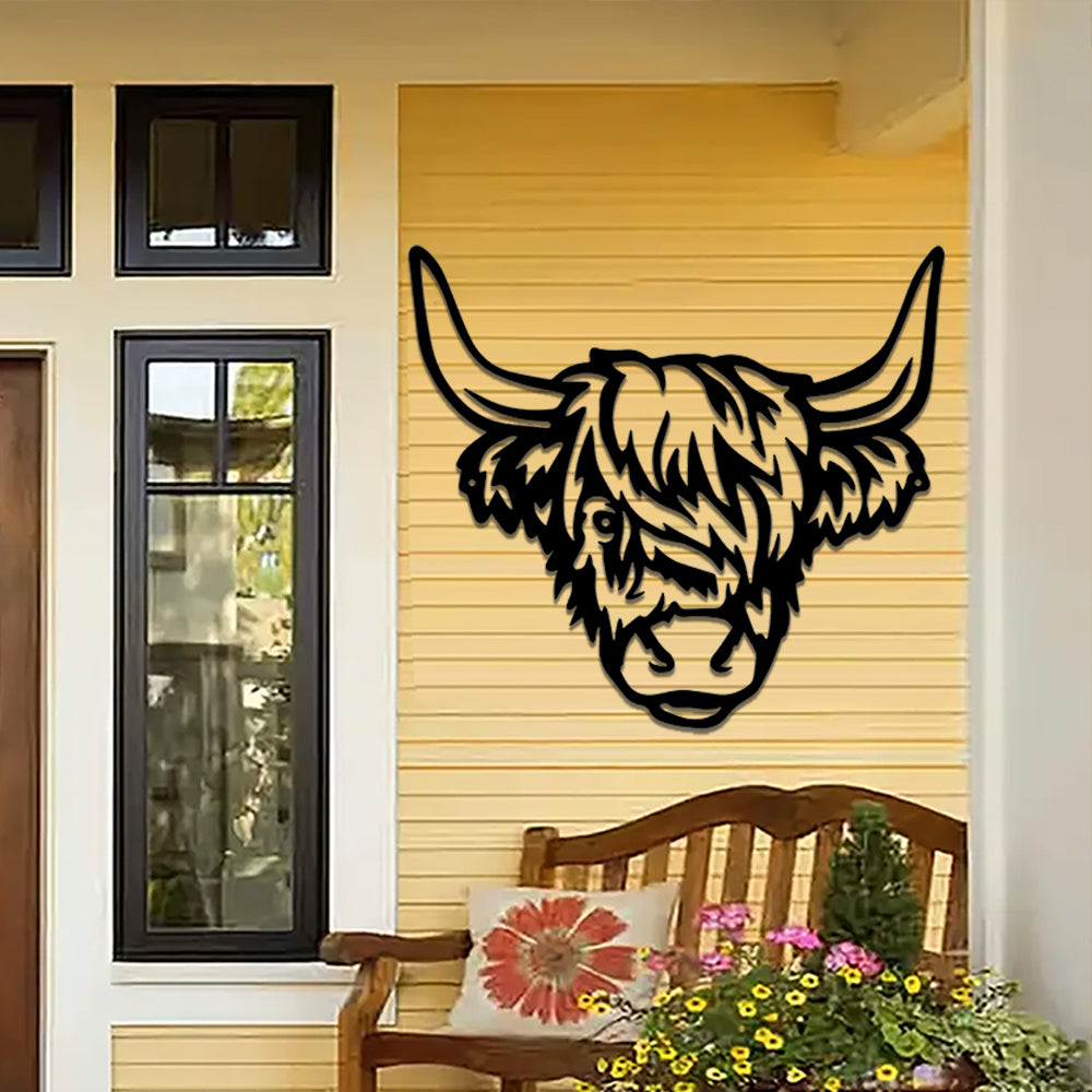Rustic Cow Head Sign Metal Wall Art Decoration