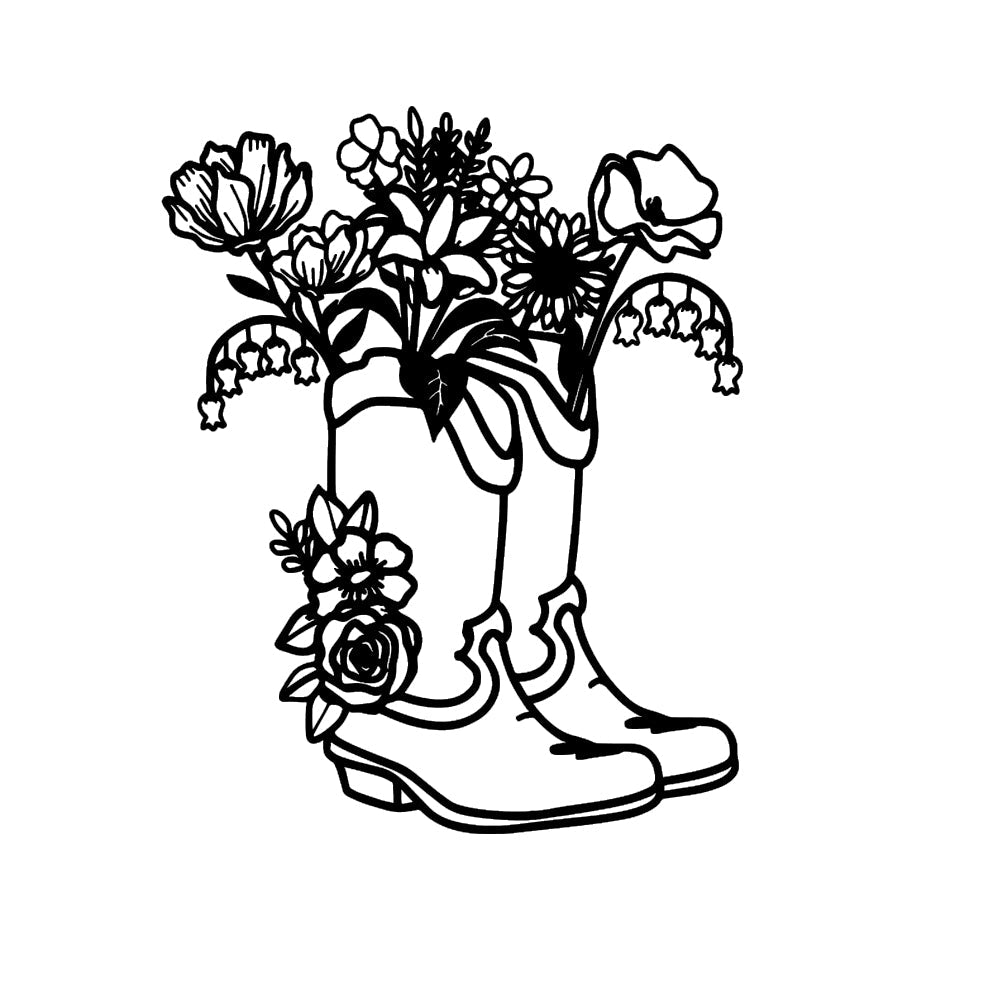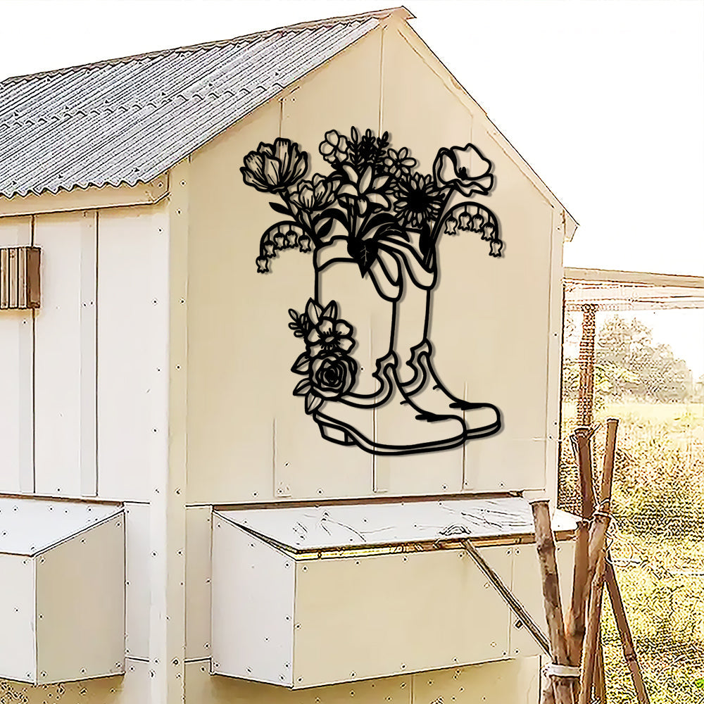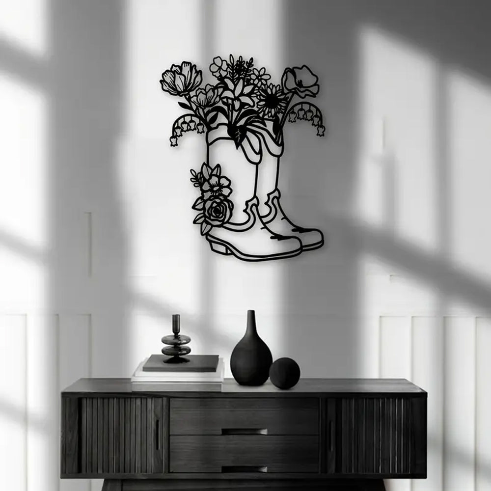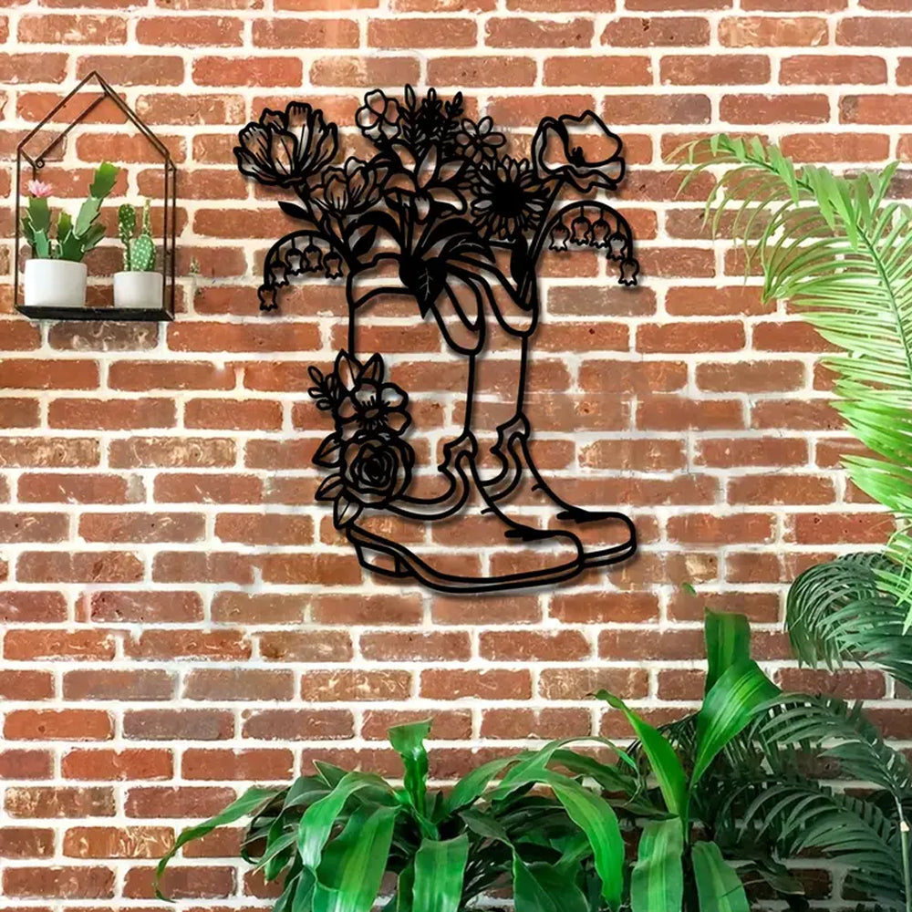 Women's Cowboy Boots Flowers Sign Metal Wall Art Decoration