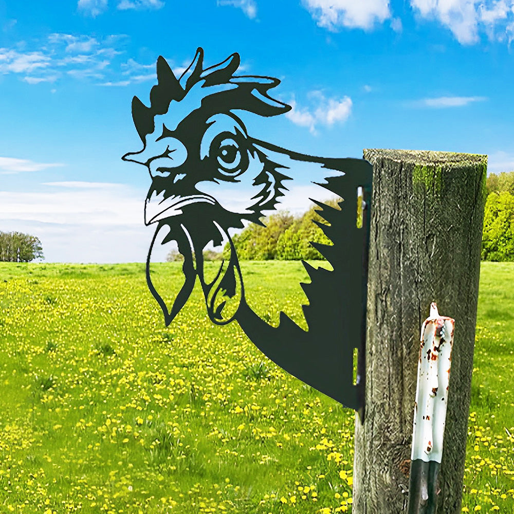 Chicken Farm Peeping Animal Outdoor Metal Garden Art