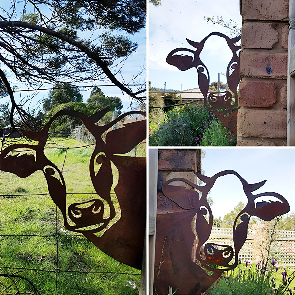 Cow Farm Peeping Animal Outdoor Metal Garden Art