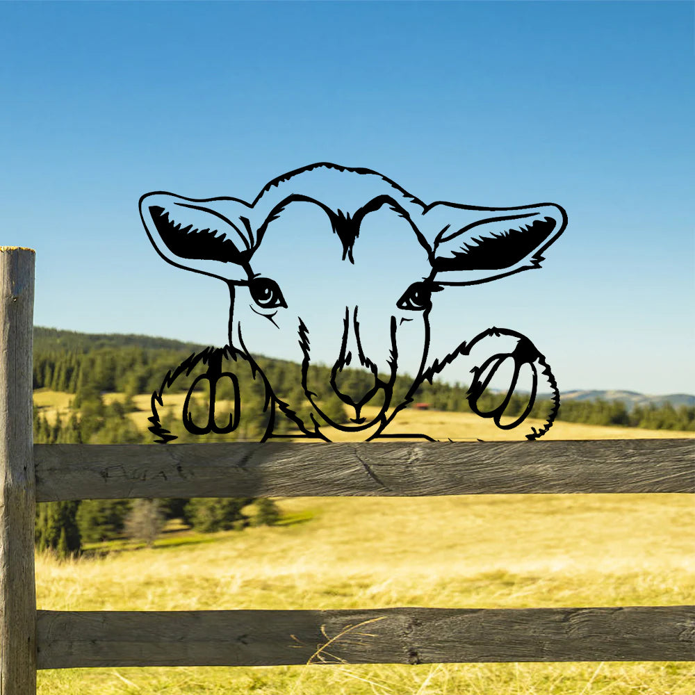 Calf Farm Peeping Animal Outdoor Metal Garden Art
