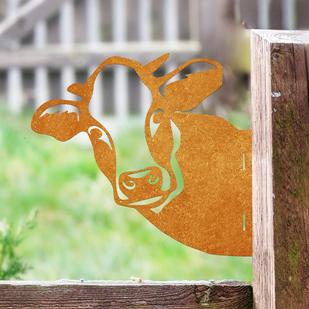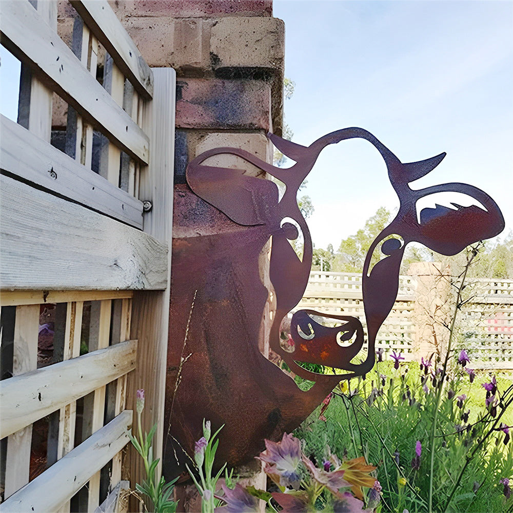 Cow Farm Peeping Animal Outdoor Metal Garden Art
