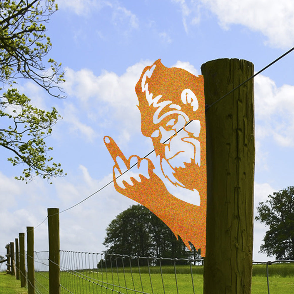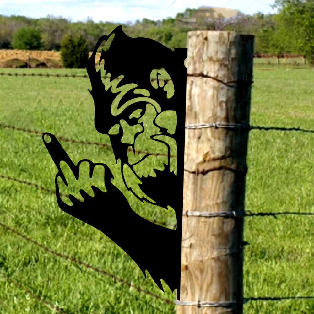 Funny Bigfoot Flipping Off Metal Sign - Peeking Animal Yard Art Decor