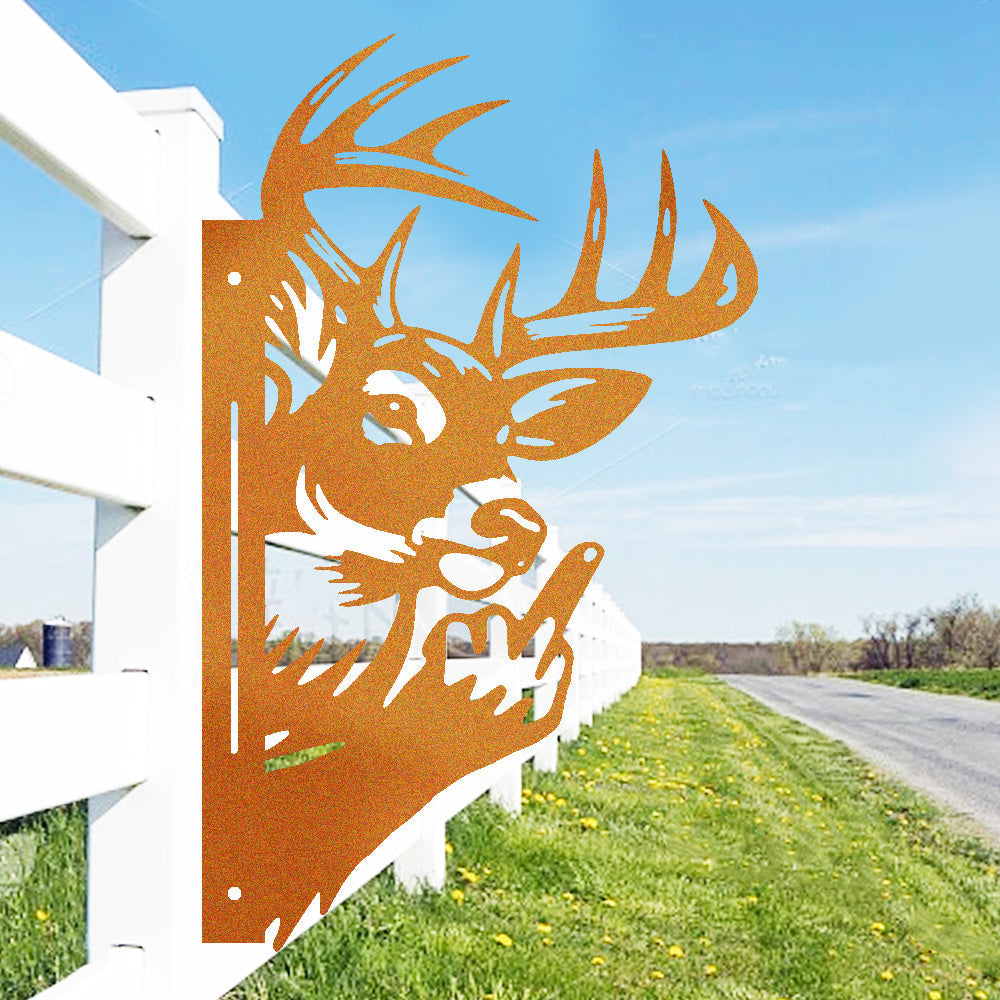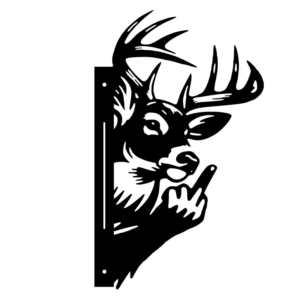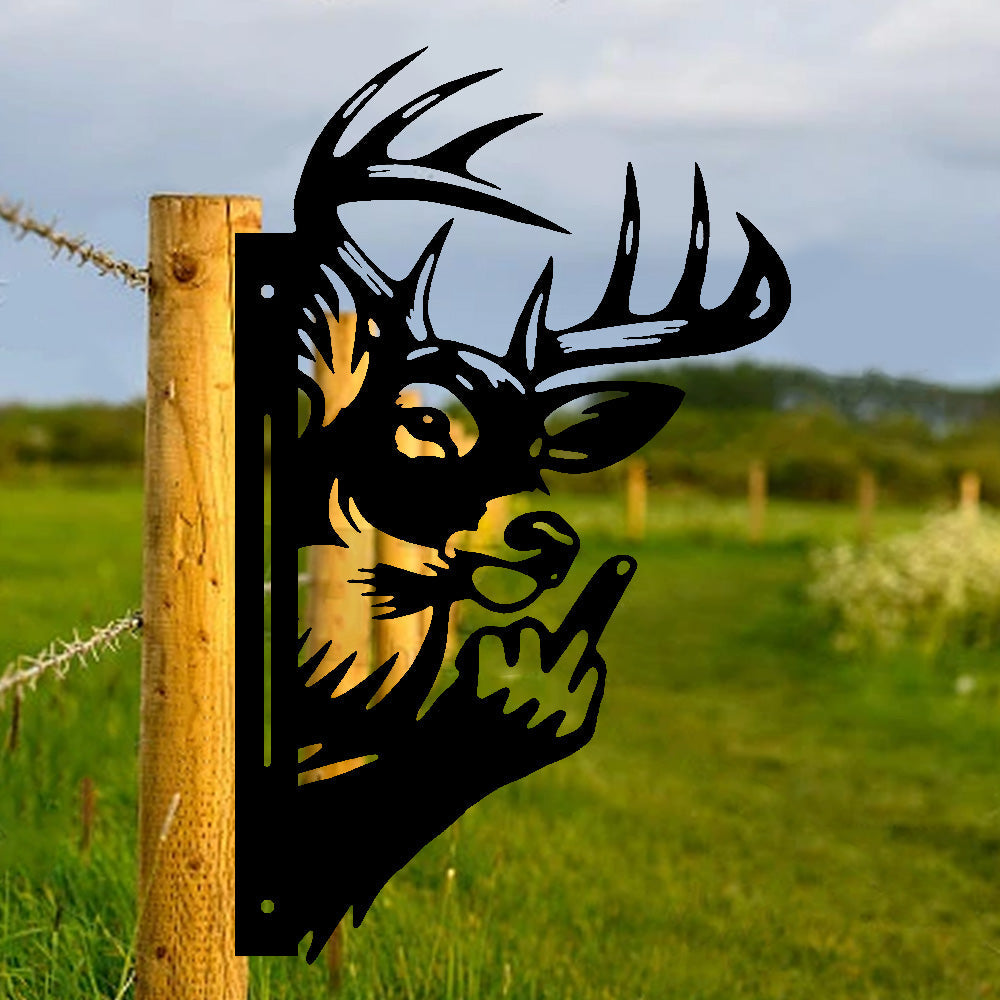 Funny Elk Flipping Off Metal Sign - Peeking Animal Yard Art Decor